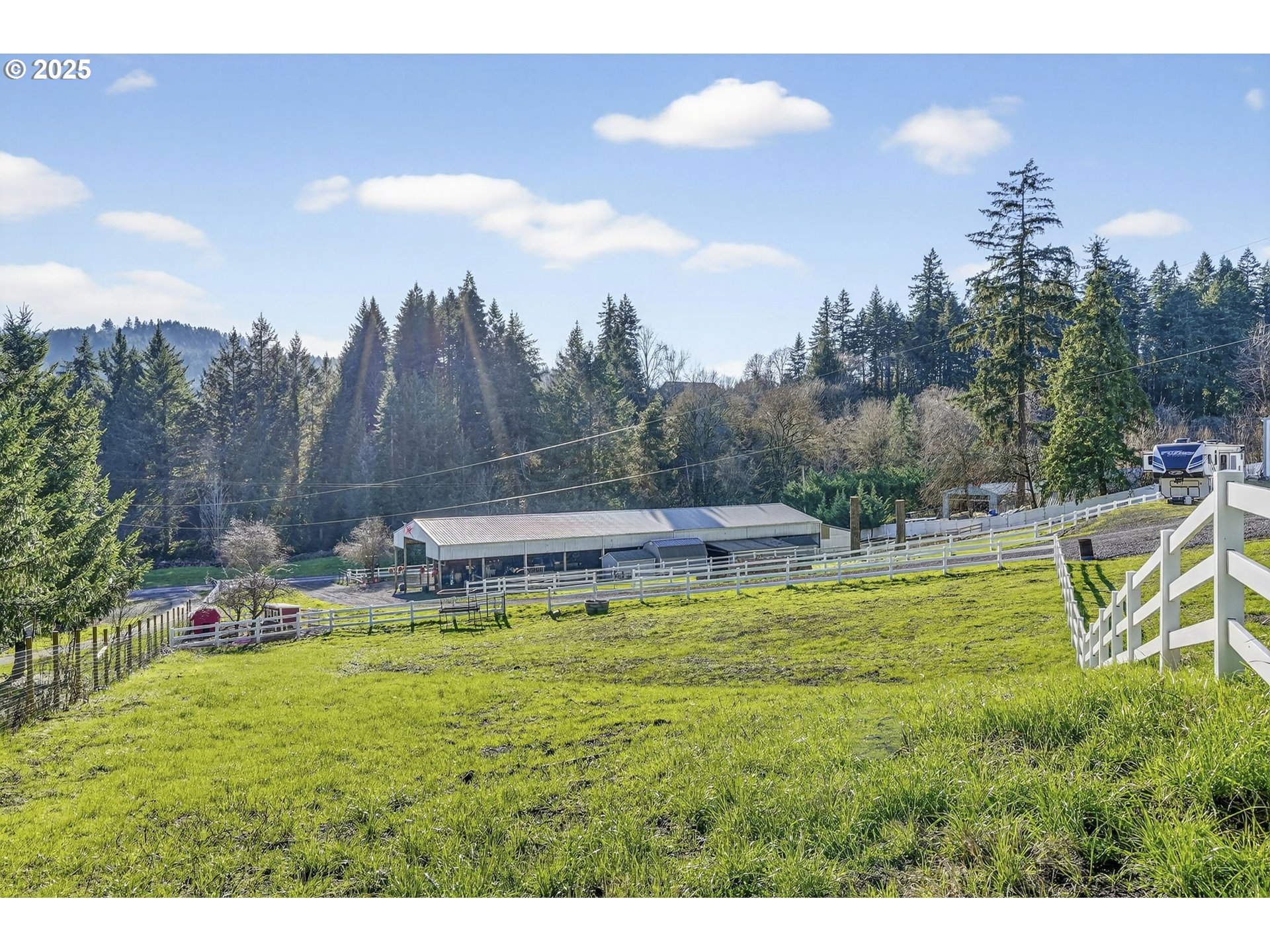 Perfect blend of privacy, space, and location! Experience sweeping territorial views of Parrett Mountain from this exceptional 4.86-acre turnkey horse and farm property, conveniently located just minutes from both Sherwood and Newberg. The 4-bedroom, 3 bathroom home offers 2,469 square feet of living space, including a 550 sq ft permitted ADU with a private exterior entrance. Ideal for multi-generational living, guests, or rental income.The home features a newly remodeled kitchen with quartz countertops, stainless steel appliances, and a stylish tile backsplash. The open floor plan features fresh interior and exterior paint and high-end luxury vinyl plank flooring throughout. The spacious living room includes a cozy pellet stove and a sliding door that opens to a generous deck overlooking the picturesque property. The primary suite boasts a walk-in closet, dual sink vanity, tile walk-in shower, and relaxing soaker tub. The lower level ADU offers a studio style layout with a kitchenette, full size refrigerator, and a large full bathroom. The true centerpiece of the property is the impressive 120’ x 40’ covered riding arena, complete with four stalls, a tack room, 220V power, and outdoor turnouts. A true animal lover’s dream! Additional features include a fully fenced perimeter with cross-fencing for livestock, ample parking for vehicles and equipment, and a Generac 22K whole home generator. This is a rare opportunity to own a unique, versatile property that perfectly blends rural tranquility with modern convenience. Don’t miss it!