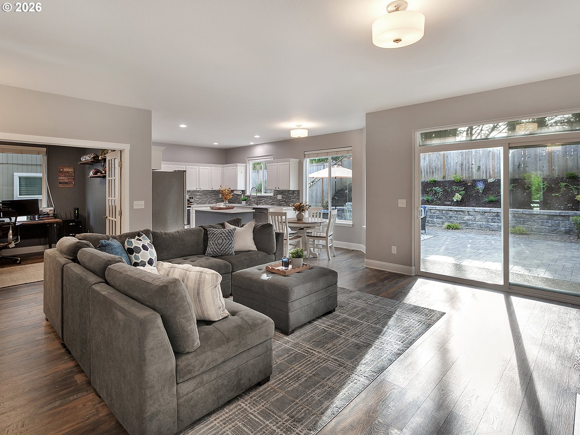 This is the one buyers have been waiting for. Backing directly to Ridges Elementary and a nearby park, the location offers a rare combination of convenience and privacy in a highly sought-after area known for its excellent schools. Inside, the layout is both functional and flexible. A main-level office provides the perfect work-from-home setup, while spacious living areas create a comfortable flow for everyday living. Upstairs offers four full bedrooms or a bonus room option, along with a versatile loft space ideal for a second living area, playroom, or media space. The heart of the home is the updated kitchen, opening seamlessly to the family room with built-ins and a gas fireplace, creating a warm and inviting space to gather. Major updates have already been completed, including roof, HVAC system, updated flooring on the main level, new exterior paint, and brand-new carpet upstairs, giving the home a fresh, move-in ready feel. The upper bathrooms remain original, offering a great opportunity to personalize and add future value over time. Step outside to a beautifully designed backyard featuring a custom paver patio, perfect for relaxing evenings or entertaining guests. Pre-inspected with repairs completed, this home offers confidence and peace of mind from day one. A rare opportunity to own a well-cared-for, updated home in an exceptional location.