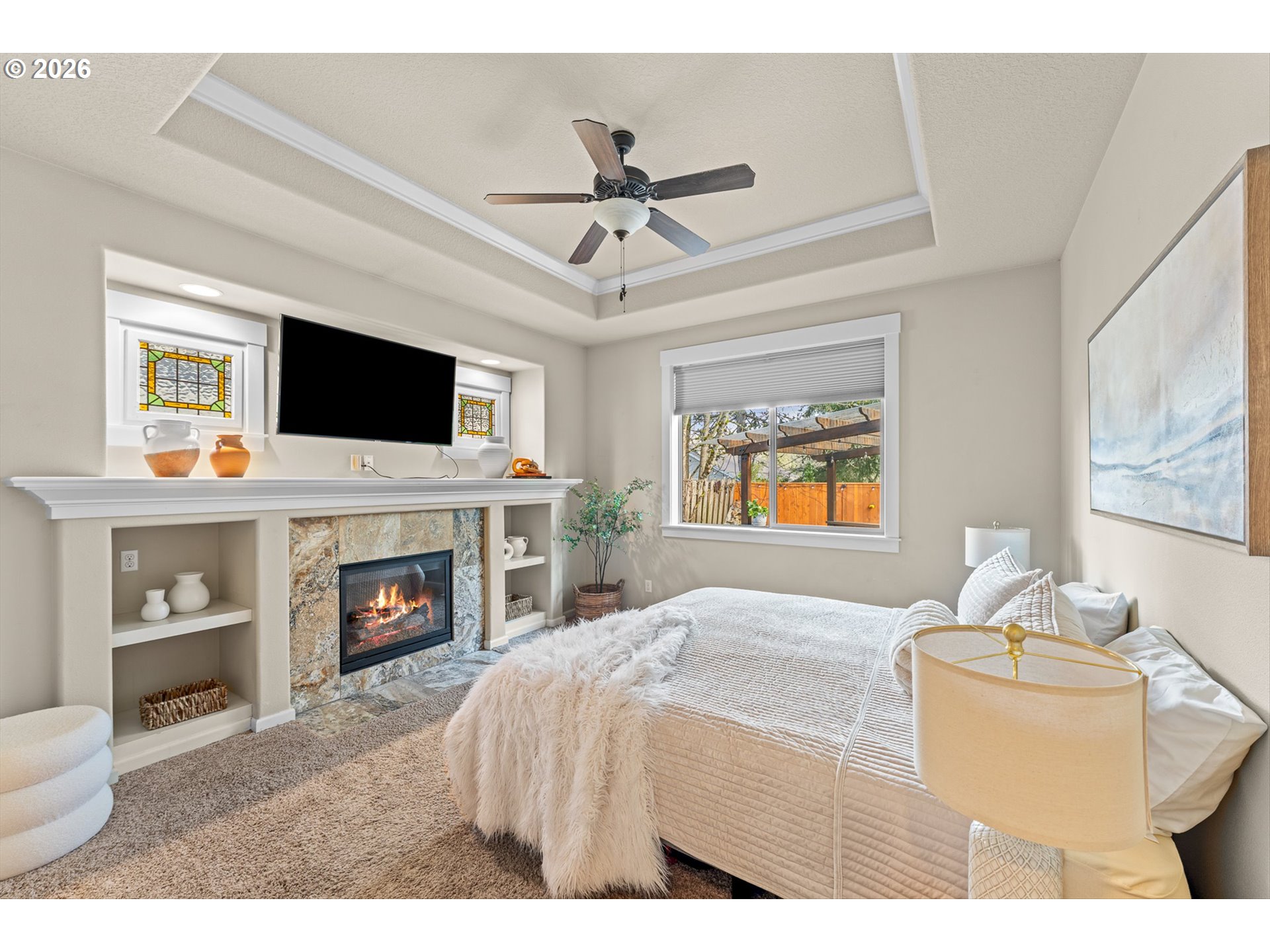 BuiltinFeatures, CeilingFan, Coved, Fireplace