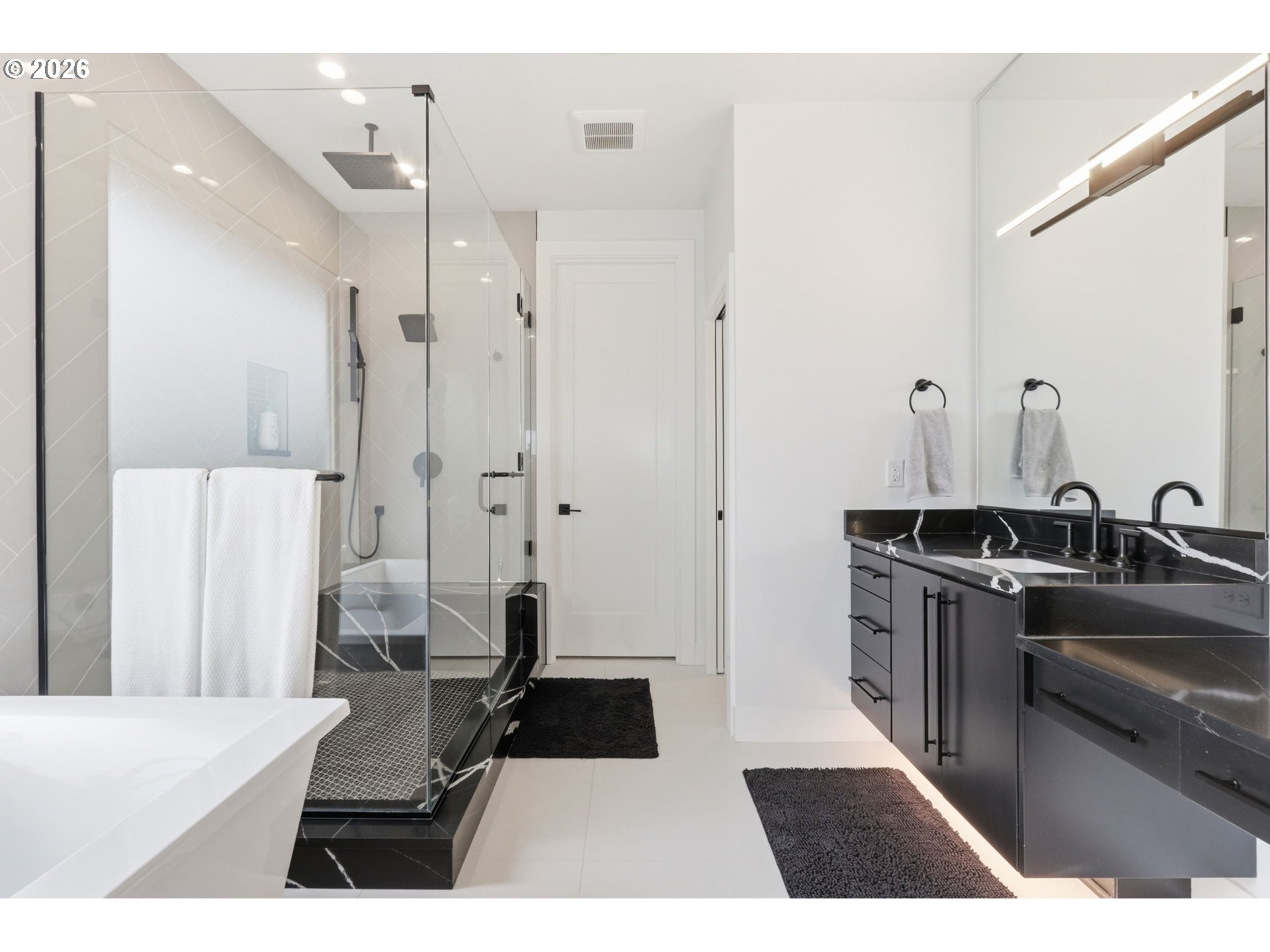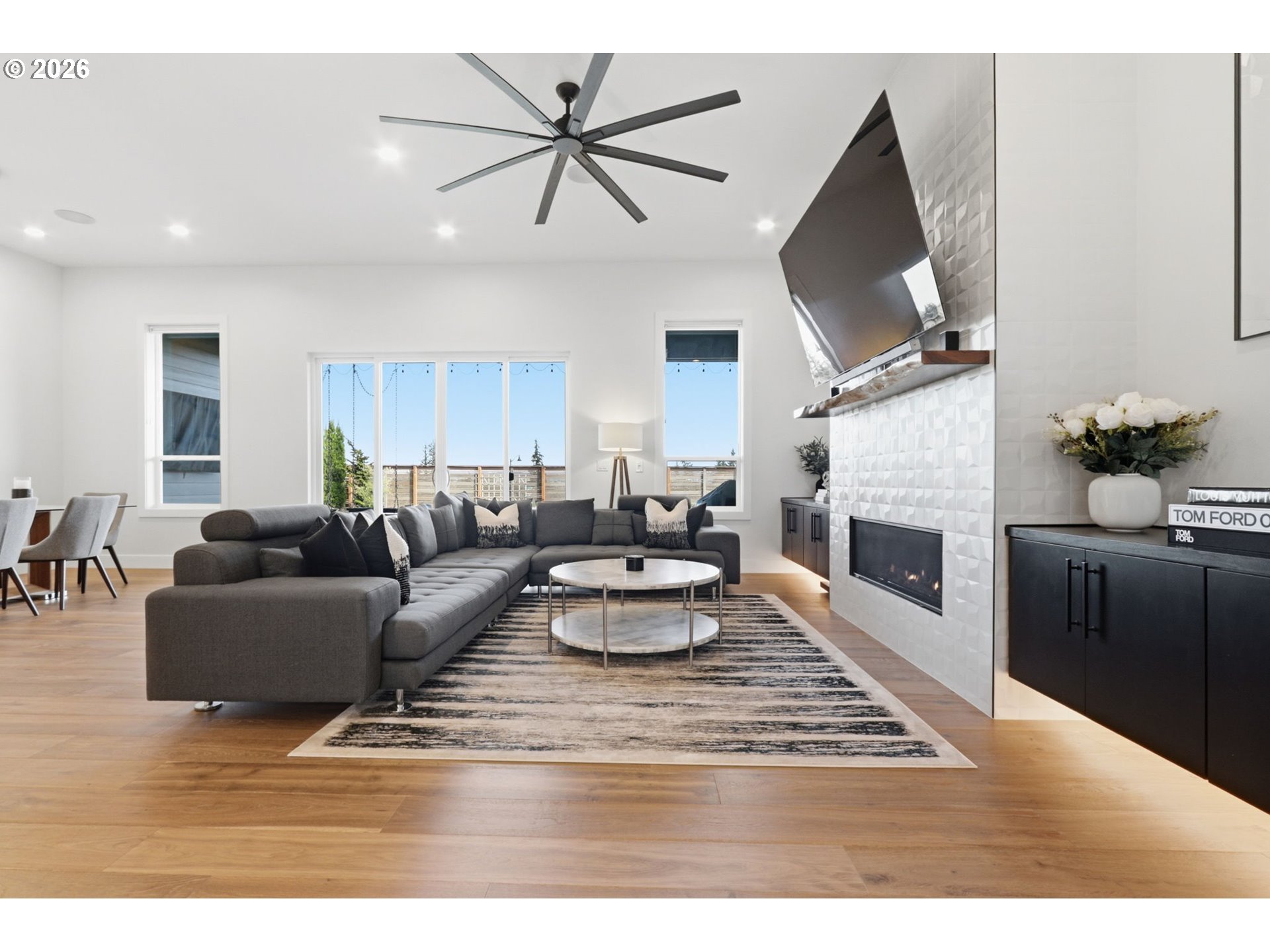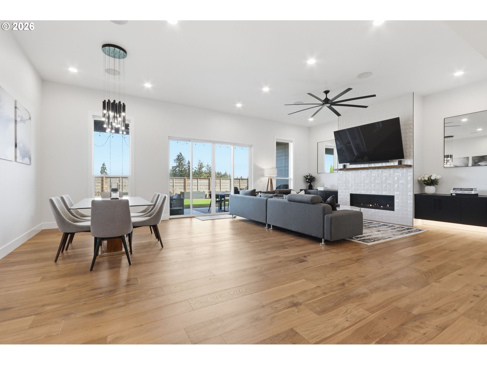 Nestled in the prestigious community of Sherwood, Oregon, this exquisite "BUILDERS OWN" single-level Northwest Contemporary home masterfully blends Pacific Northwest beauty with sophisticated modern living. At 2,924 square feet, this thoughtfully designed residence delivers spacious single-story living and seamless indoor-outdoor connection. Upon entering, soaring expansive ceilings and a wide-open floor plan create an immediate sense of light, volume, and effortless flow—ideal for both relaxed family living and elegant entertaining. Every essential space is thoughtfully positioned on one level for unparalleled convenience and accessibility. The well-zoned layout features the luxurious primary suite on the east wing with its own dedicated HVAC zone for ultimate personalized comfort. On the west side, two generously sized guest bedrooms share a convenient Jack-and-Jill bathroom. Completing the four bedrooms is a unique casita-style suite with private entrance, offering endless possibilities as a home office, gym, in-law quarters, college student suite, etc. The gourmet kitchen serves as the heart of the home, with an oversized waterfall island, walk-in pantry, and double ovens. Live edge wood slabs and abundant light bring the Northwest serenity indoors. Outside, the rear yard is an entertainer’s dream. A large covered patio is divided into distinct zones—one for al fresco dining and the other wired for a comfortable sectional and television. Custom swings add a whimsical touch, while the entire yard is finished with pristine synthetic lawn for year-round beauty and minimal maintenance. A built-in fire pit on the far east side invites warm evenings roasting marshmallows around the fire. Dedicated firewood storage and a garden shed are included with the home. This Single-level Northwest Contemporary home in Sherwood offers luxury, open layout, flexible casita, dedicated HVAC, and spectacular outdoor spaces. Contact me today to schedule a showing!