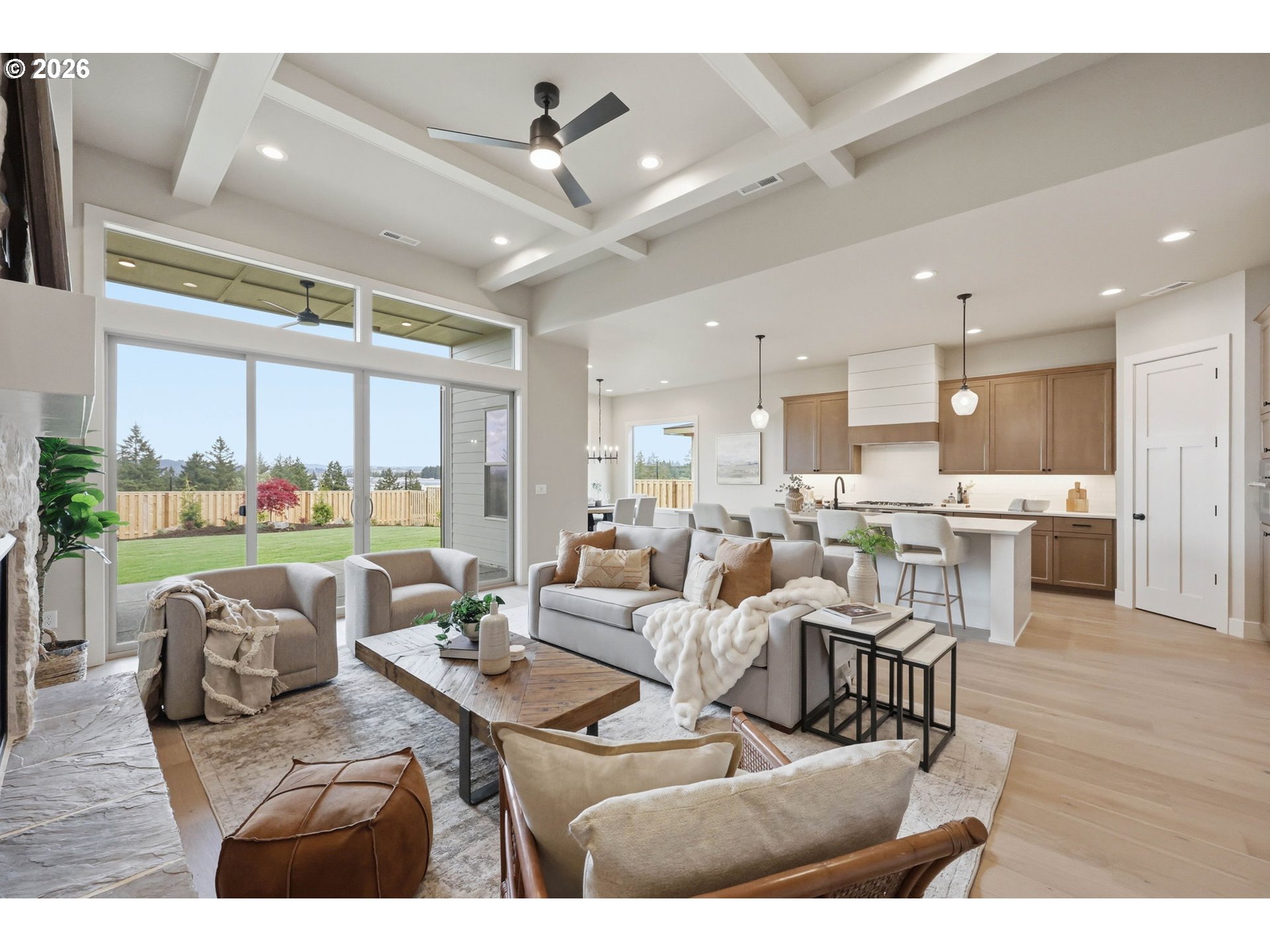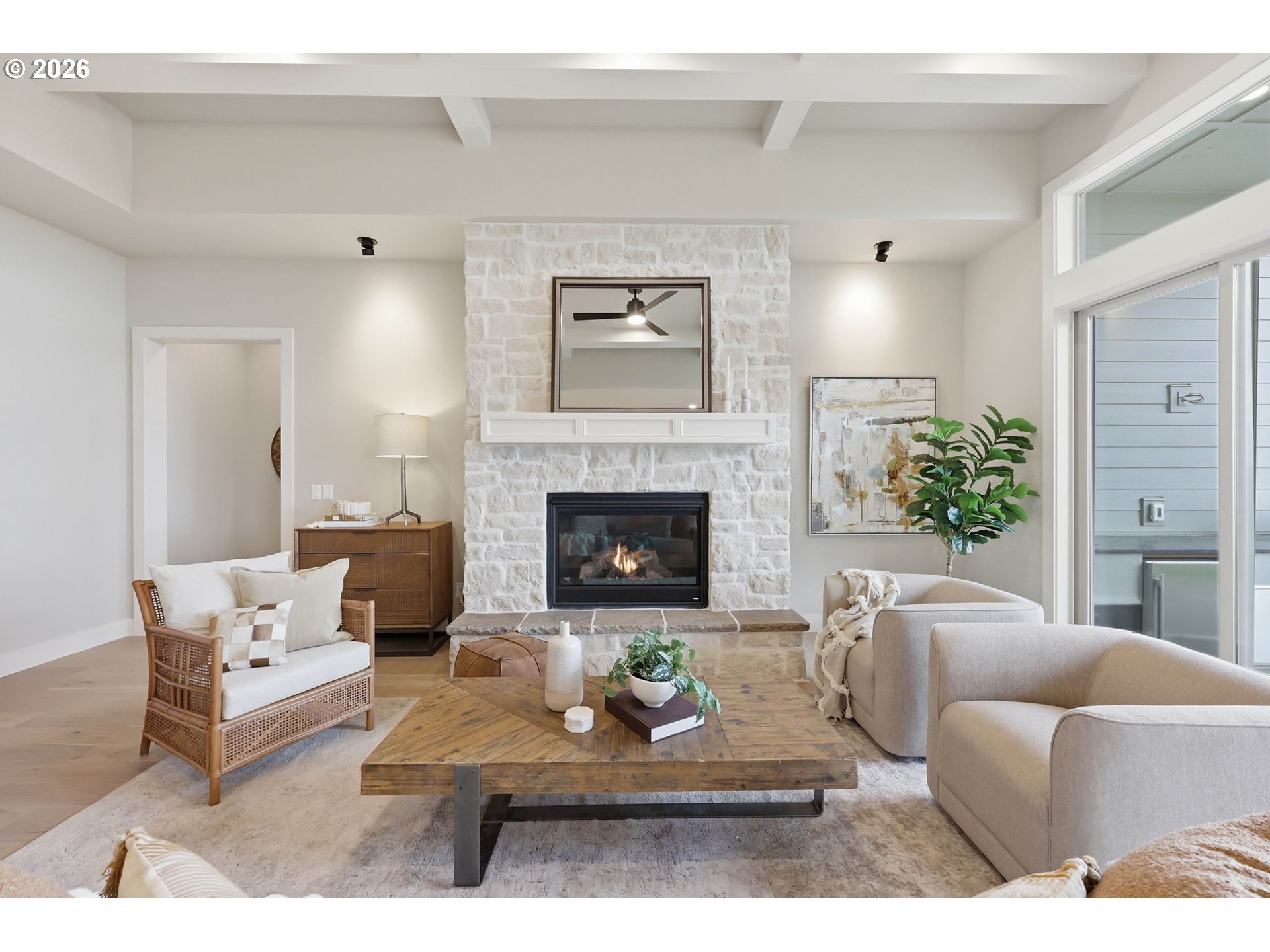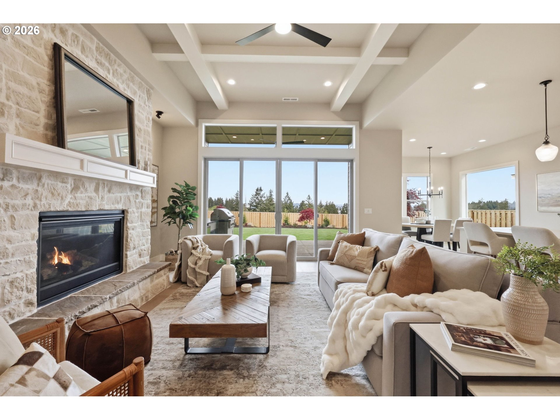 BeamedCeilings, CeilingFan, Fireplace, Patio