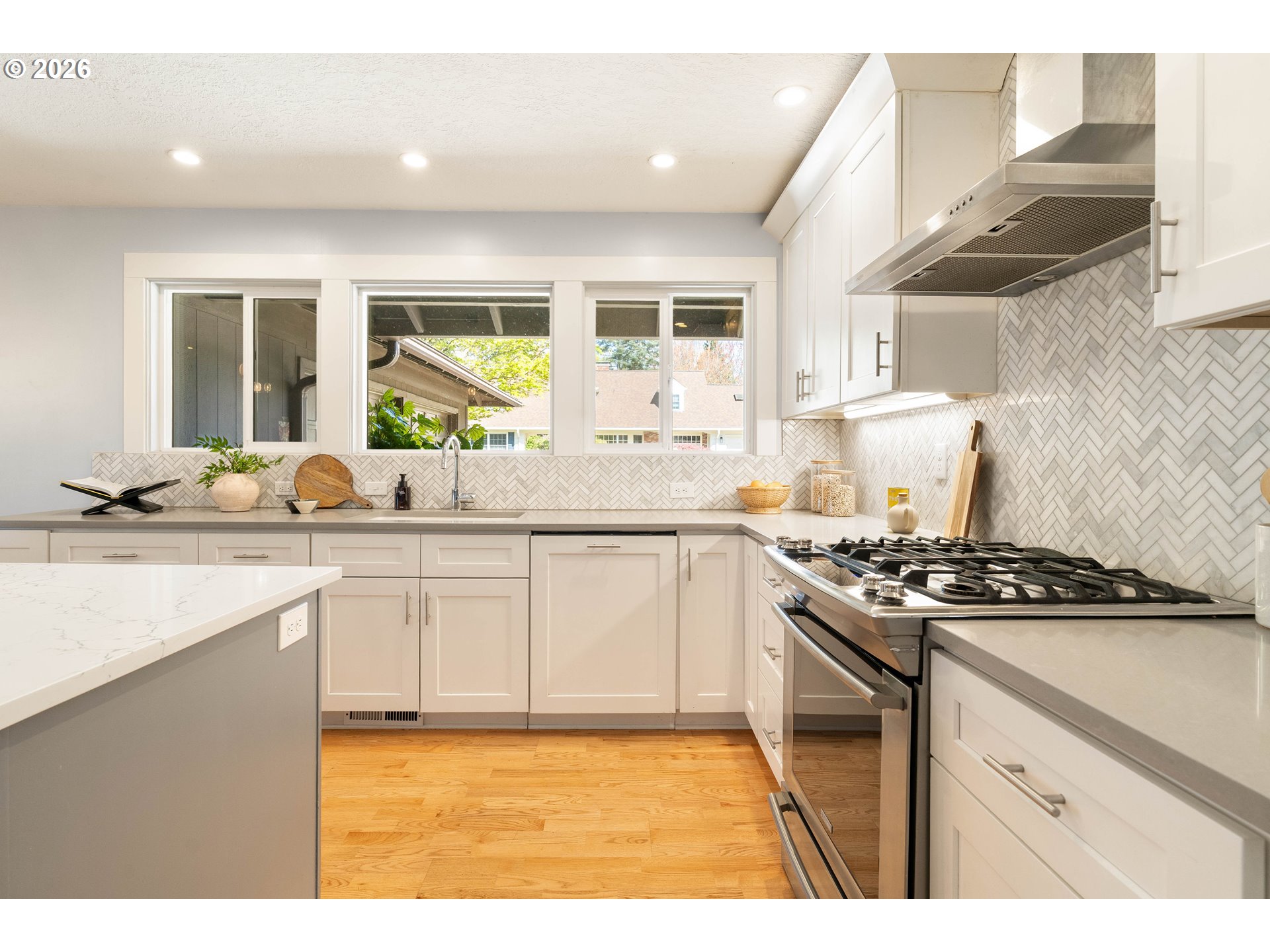 Fabulous mid-century home in coveted West Slope! From the circular driveway that invites you in, everything about this home is open and airy, inviting and built for entertaining! The foyer welcomes you inside to the spacious main floor with almost 2000 sq ft on one level. Three bedrooms and two full baths - which includes primary suite - all on the main floor plus a tastefully updated kitchen with marble topped kitchen island and enough seating for 6 -plus loads of storage and cabinets and full pantry. The kitchen also has a gas fireplace and separate eating area with slider leading out to covered patio. Open and bright living room and formal dining room blend seamlessly to the outdoors with another full slider leading to patio and features big picture windows overlooking the landscaped backyard. There is a fully outfitted laundry room off the kitchen with built-ins, washer and dryer, and a half bath plus access to the two car attached garage. The lower level with high ceilings and fireplace also has plenty of space for hanging out and has many windows bringing in the natural light and expanding the living space. There is also tons of storage with built-ins and two bonus rooms plus half bath and exterior entry that could easily be finished out to create additional living space or separate living quarters. And the oversized lot with newly landscaped yard and mature trees create lovely views from every vantage point! Nestled on a beautiful street in the quiet pocket of West Slope, this home also has the bonus of Washington County taxes!