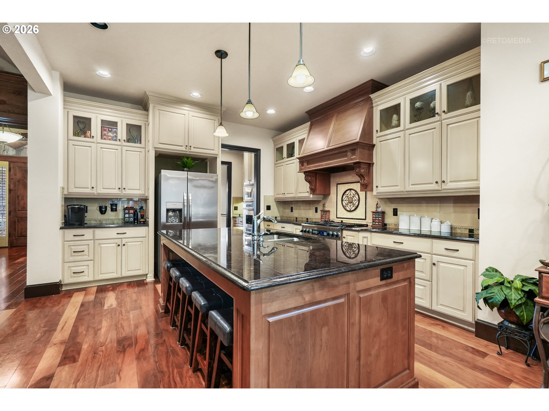 Set within the highly sought-after Sherwood View Estates, this custom-built home offers a refined take on one-level living in one of Sherwood’s most established neighborhoods. Known for its enduring quality, generous homesites, and close proximity to Old Town Sherwood, this location continues to attract those seeking both convenience and a sense of retreat. Thoughtfully designed and built with lasting craftsmanship, the home spans over 3,200 square feet on one level, creating a seamless flow that supports both everyday living and effortless entertaining. Rich millwork, vaulted ceilings, and expansive windows bring warmth and natural light into the main living spaces, while carefully curated finishes reflect a level of quality that stands apart. At the heart of the home, the spacious kitchen features a large gathering island, double ovens, ample storage, a nook and a butler’s pass-through, connecting the living areas seamlessly. The vaulted great room, anchored by a fireplace and custom built-ins, offers an inviting place to gather, while the formal dining room is well-suited for hosting. The primary suite provides a peaceful setting with its own fireplace, patio access, and a well-appointed ensuite with soaking tub, walk-in shower, and dual vanities. Two additional bedrooms, a dedicated office, a generous utility space and a three-car garage offer flexibility for a variety of lifestyles. Outside, the vaulted covered patio and built-in BBQ create an effortless extension of daily living, surrounded by established landscaping that offers privacy and a calm connection to the outdoors. Located just minutes from restaurants, shops, and community events in downtown Sherwood, this home presents a rare opportunity to experience elevated one-level living in a location that continues to stand the test of time.