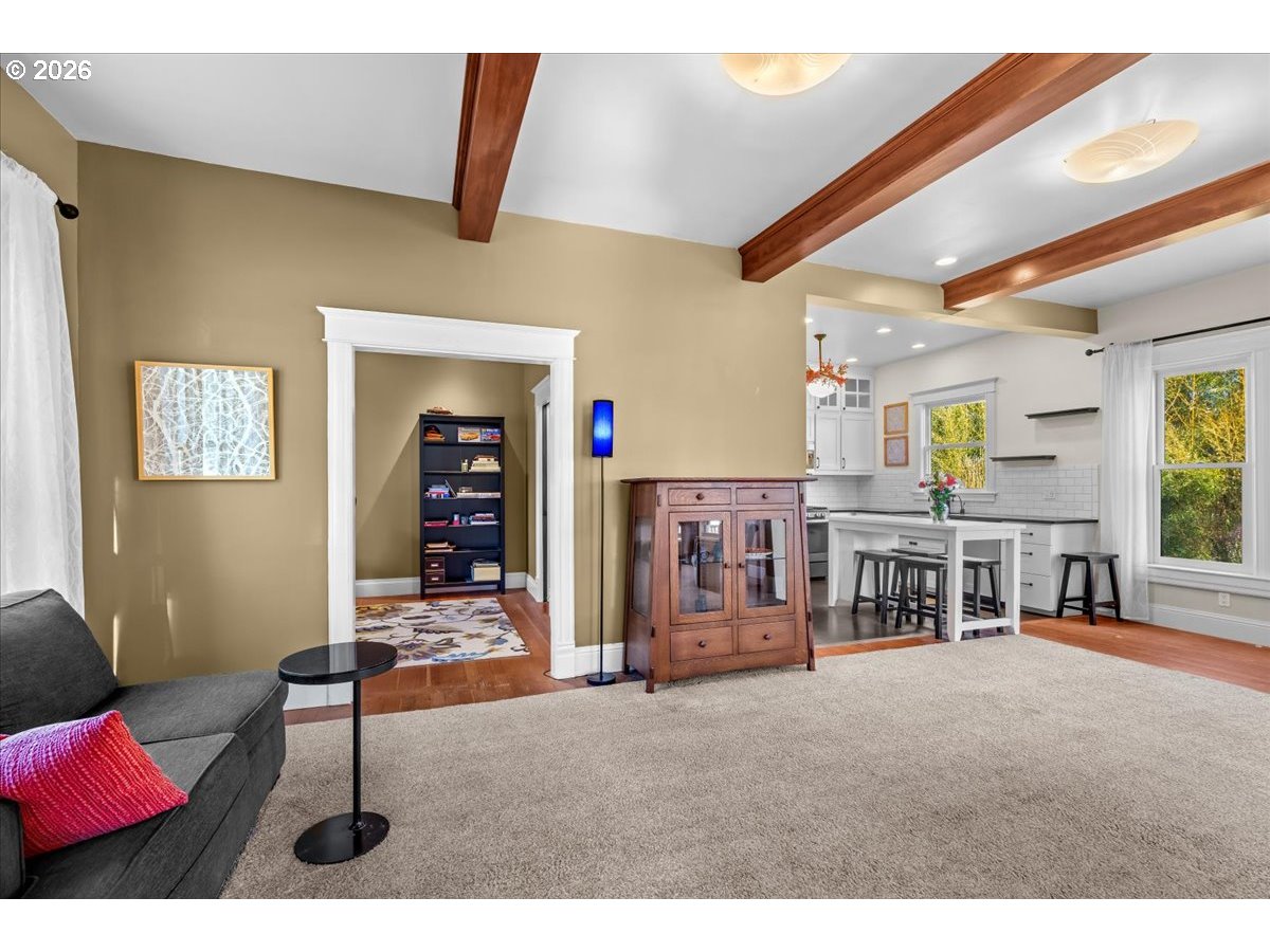 BeamedCeilings, HardwoodFloors, LivingRoomDiningRoomCombo