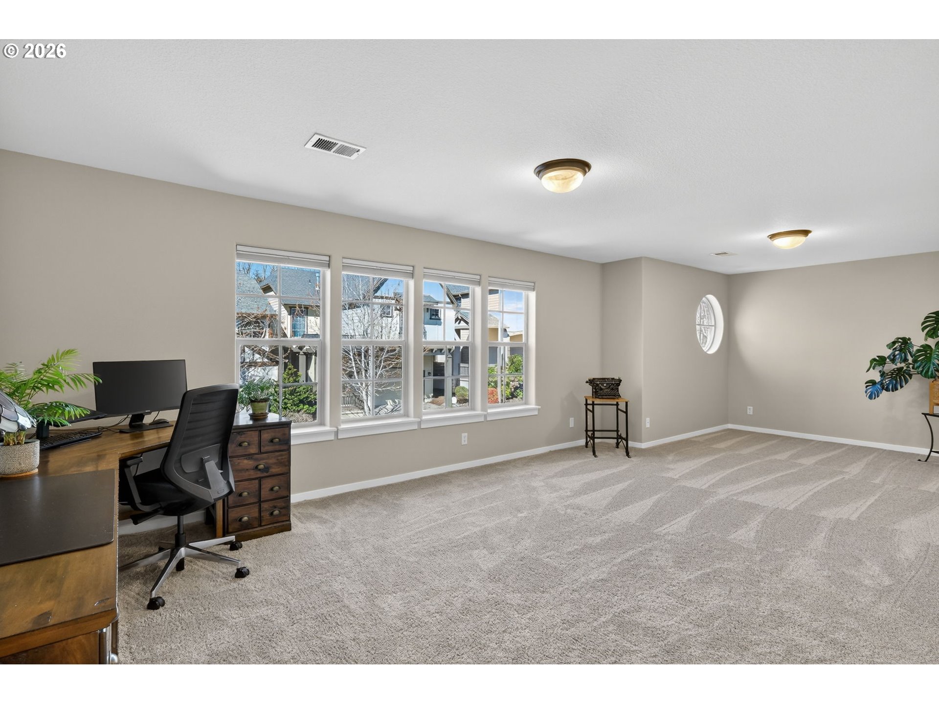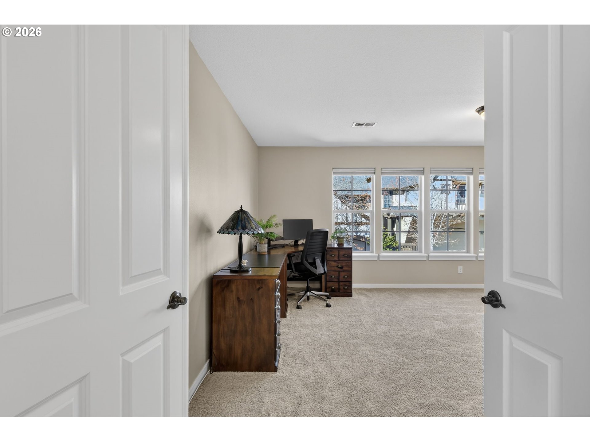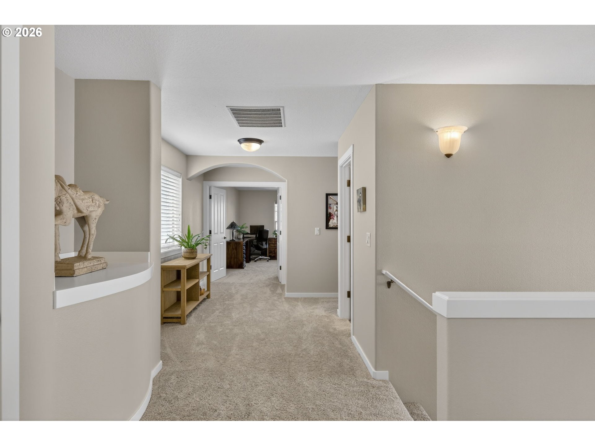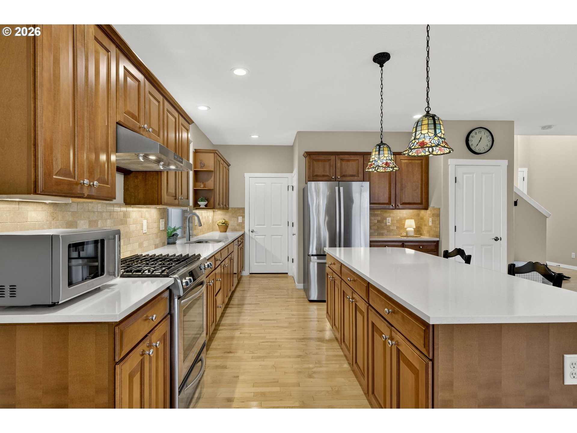 *OPEN SAT 4/11 & SUN 4/12 2-4PM!* Beautifully updated Bonny Slope home on a corner lot with soaring ceilings and versatile living spaces. A covered, arched entry with stone accents opens to hardwood floors throughout the main level, highlighted by high ceilings, a powder room, and coat closet. The large, open living room features a corner fireplace with tile surround, and the incredible kitchen offers quartz counters, tile backsplash, stainless steel appliances, pantry, and a large eat-in entertainer’s island with easy access to the 2-car garage. The dining room opens to a partially covered composite deck overlooking greenspace and a turfed, fenced side yard. Upstairs, the fully carpeted level (new carpet 2025) features a versatile landing perfect for an office or cozy reading nook. The primary suite has French doors, ceiling fan, greenspace views, and an updated spa-like ensuite with dual sinks, tile counters, luxury vinyl flooring, a tiled walk-in shower, water closet with pocket door, and walk-in closet. Two additional bedrooms share a full hall bathroom with tub/shower combo, luxury vinyl floors, and tile counters, while an oversized fourth bedroom with French doors and a large walk-in closet offers flexibility as a bedroom, bonus, or media room. Convenient upper-level laundry has luxury vinyl floors. Recent updates include a new Presidential roof and gutters (2021), Bosch dishwasher (2025), sliding door (2021), sprinkler system (2024), composite deck (2020), and re-screened windows (2022). Enjoy a 2-car garage, corner lot, and fully fenced turfed side yard, just minutes from a community park, Bonny Slope Elementary, and Lost Park, with easy highway access.