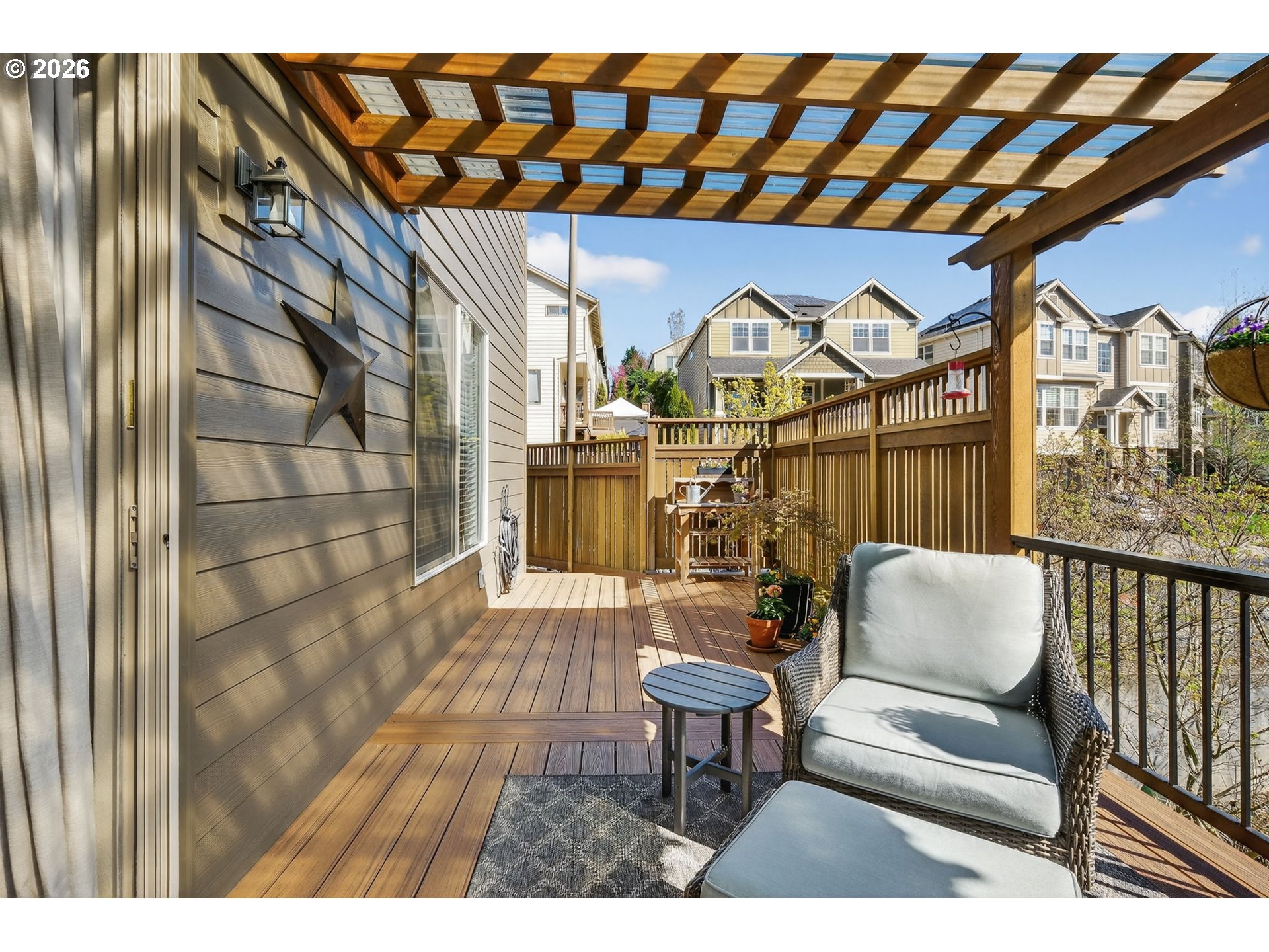 CoveredDeck, Deck, Fenced, Patio, Porch, Sprinkler, Yard