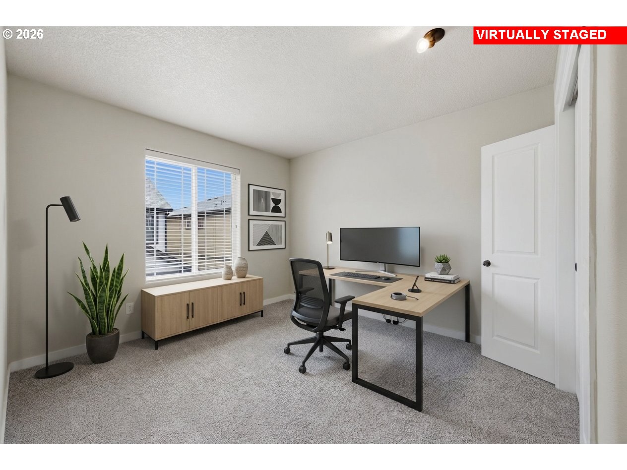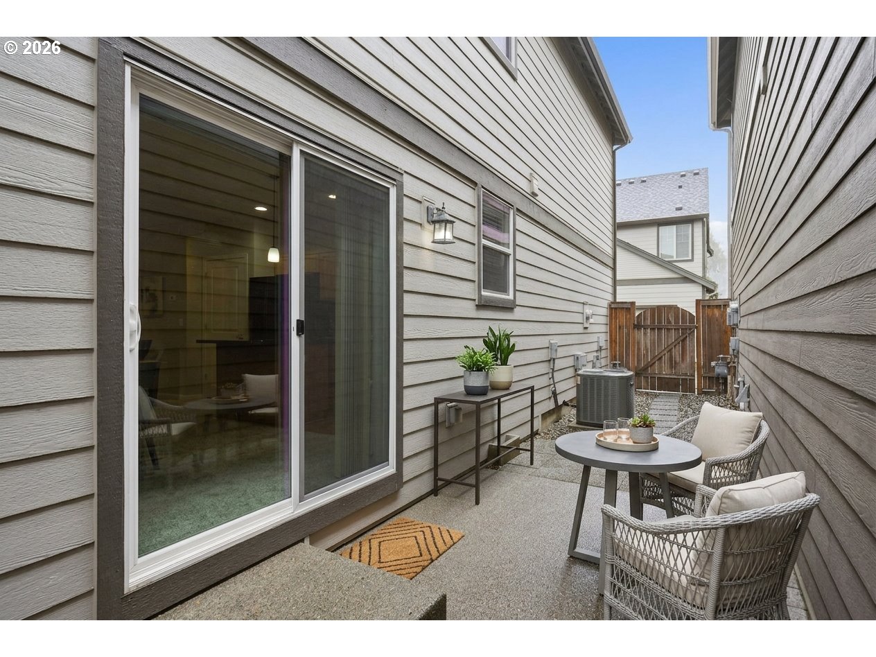 This amazing home has been beautifully updated featuring plush new carpet throughout and fresh interior paint. A spacious open floor plan on the main is perfect for entertaining and everyday living. Boast high-ceilings, beautiful hardwood floors and a gas fireplace. The kitchen is expansive with slab granite counters, shaker style cabinets, tile backsplash accents, SS appliances and an oversized eat bar island. The upstairs hallway allows a cozy reading nook area or small desk setup. A generous size primary suite includes a private bathroom with dual sinks, shower stall and a walk-in closet. Three additional bedrooms provide flexibility for family, guests, home office, or hobbies. The upstairs laundry room is both ideal and convenient, the washer and dryer are included. Nestled in a charming and quiet neighborhood surrounded by tree-lined sidewalks, you can enjoy daily peaceful walks. The HOA maintains the front yard landscaping, equaling easy, low-maintenance living for you. Ideally located close to Nike, Intel, parks, schools, shopping, dining and the Quatama station max line. This home combines both comfort and convenience. Included is a 1 year home warranty. See why this is the perfect place to call home!