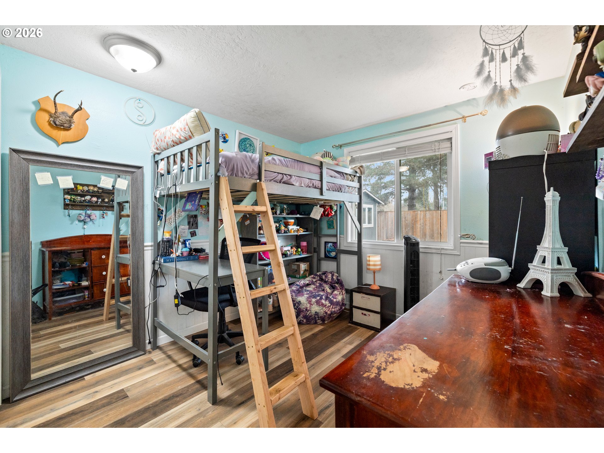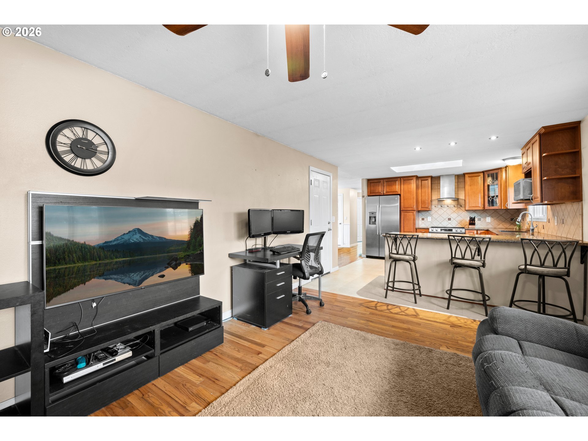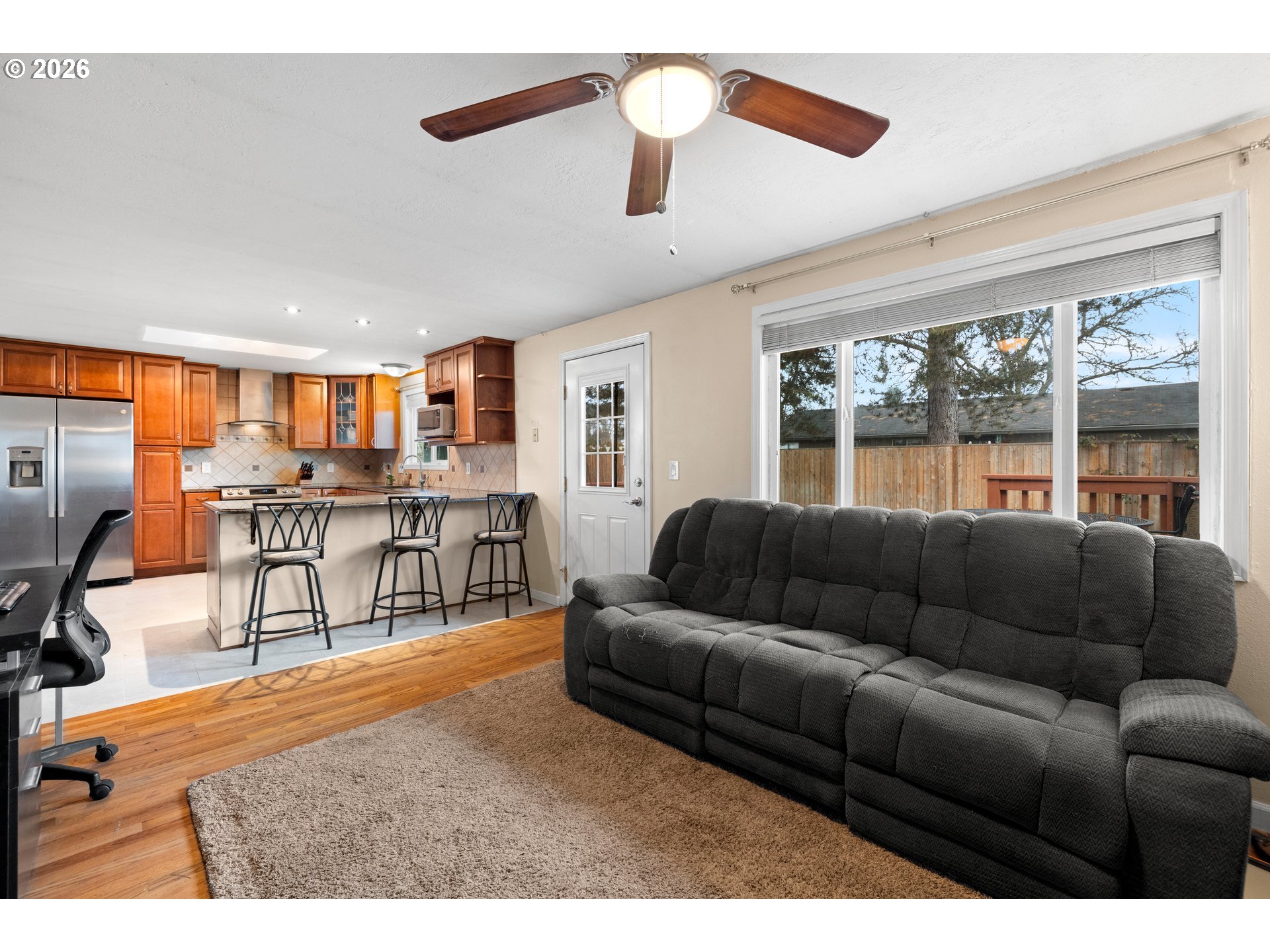 Charming single level home with three bedrooms and one bathroom, located on a generous 0.16 acre corner lot tucked away on a quiet cul-de-sac street. Hardwood floors welcome you into a formal dining area or flexible living space. The open kitchen showcases wood cabinets, granite countertops, stainless steel appliances, breakfast bar for three and newly installed tile flooring. The living room is warmed by a wood-burning fireplace insert. Enjoy outdoor living in the fenced backyard with a spacious deck, garden shed, and covered wood storage.Open house 3/14 1p-3p and 3/15 1p-3p [Home Energy Score = 4. HES Report at https://rpt.greenbuildingregistry.com/hes/OR10243910]