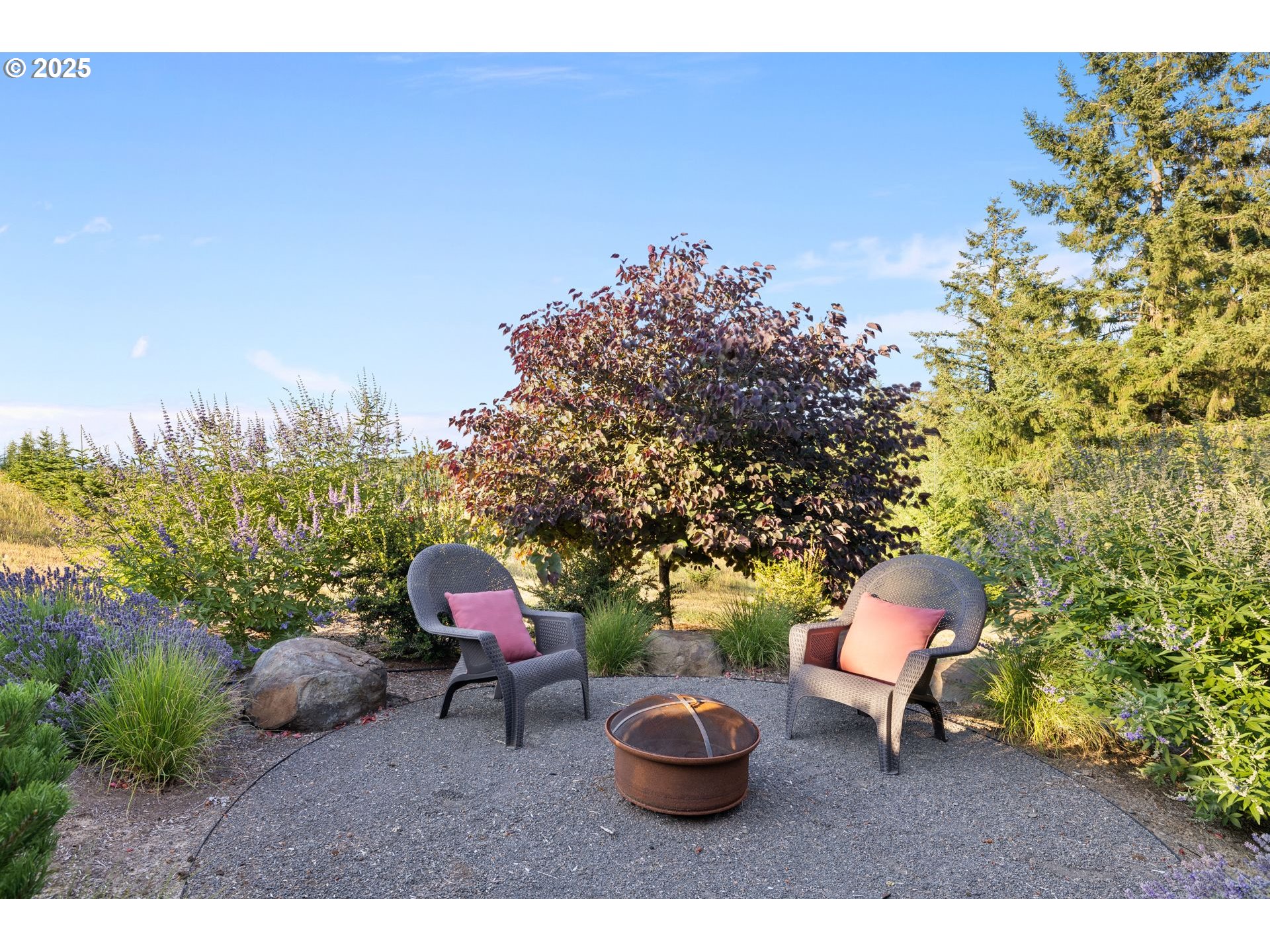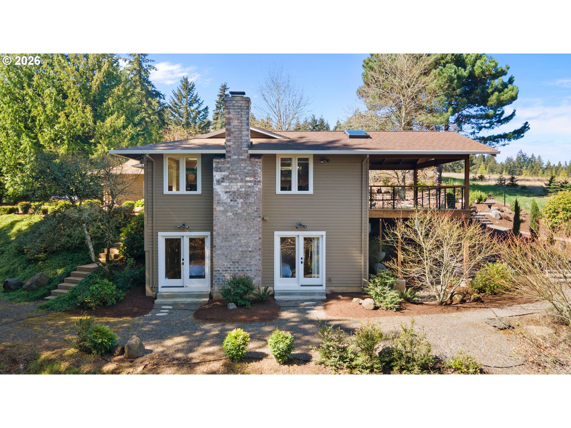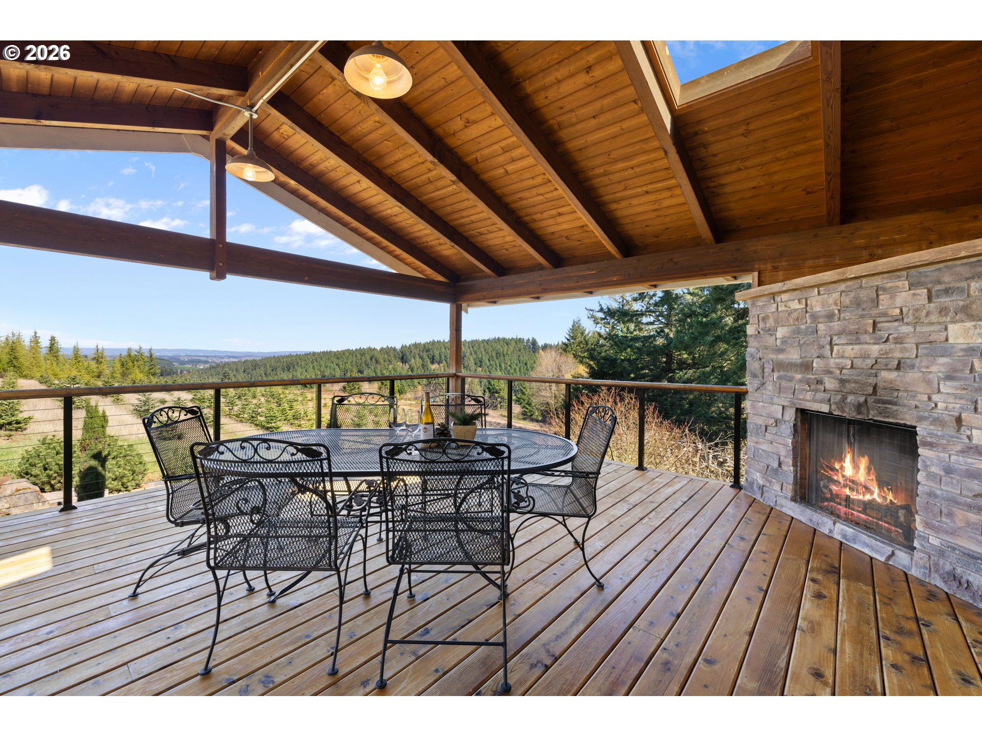An easy commute to a tranquil setting that looks and feels like a state park. Breathtaking Tualatin Valley views and privacy combined with an elegantly designed open concept home. Surrounded by nature including marketable timber and a seasonal stream, yet minutes to amenities including top wineries. This fabulous view property is in West Chehalem Mtn area, about 6 miles to Scholls & 13 miles to Hillsboro. This meticulously constructed retreat offers a seamless flow between spaces, making it perfect for intimate gatherings with friends & family. The bright & airy main level is enhanced by 8 skylights providing natural light year-round. Whether you’re cozying up by the wood-burning fireplace in the living room, enjoying movie night in the theater room or savoring a glass of wine on the outdoor deck, you’ll find plenty of inviting spaces to relax. Enter the front door to windows showcasing the view & nature! Gourmet Chef’s kitchen w/ high end stainless appliances; beautiful main level ensuite primary bedroom w/ skylight lit walk-in closet. Lower-level Media room w/ wet bar & temperature-controlled wine cellar. Incredible outdoor vaulted covered deck with an easy use gas fireplace. The 5.34 acres includes a 3-stall horse barn with an enclosed workshop, and a short hike through the woods to a fun bunkhouse! Organic garden with deer fence and so much more! For full amenities see Features Sheet and Video.