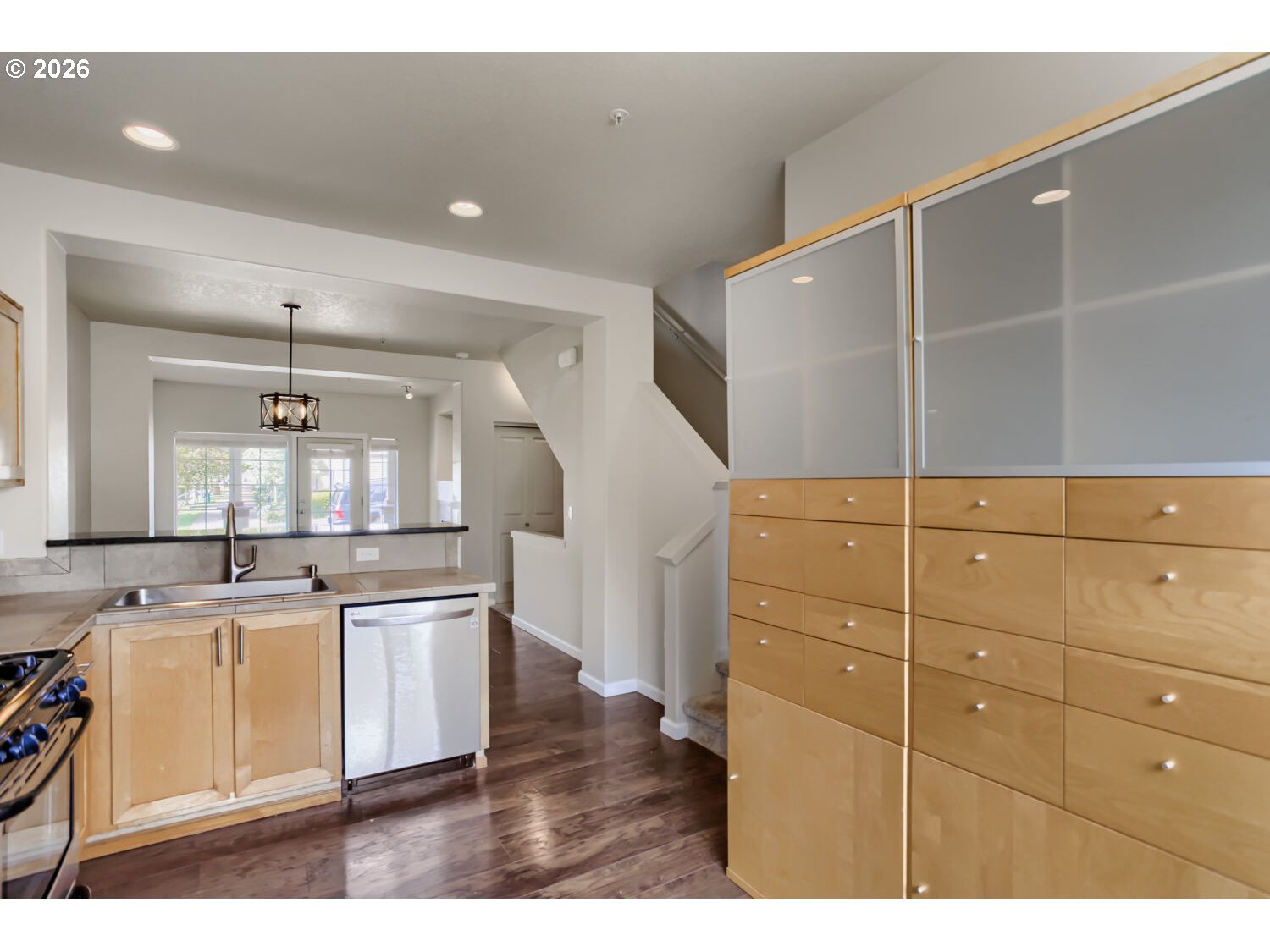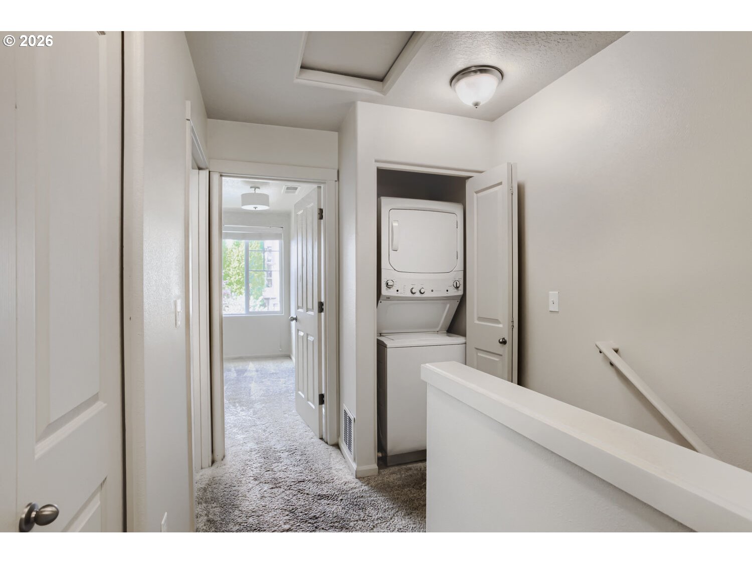 Experience easy living in this pristine townhome in the Cedars at Timberland, one of NW Portland’s most convenient and desirable communities. Just steps from Market of Choice, dining, shopping, parks, and miles of scenic trails, this home offers the perfect blend of comfort and accessibility. The interior features a bright kitchen with light cabinetry, stainless steel appliances, and a gas range, opening to a warm and inviting living space with a cozy gas fireplace. Thoughtful updates include fresh interior paint (2026), updated exterior paint (2026), updated exterior windows (2025), new luxury carpet (2023), newer LG appliances (2021), and washer/dryer (2019). Upstairs, you’ll find two well-appointed bedrooms and two full bathrooms. Enjoy year-round comfort with central A/C and the convenience of all appliances included. A spacious tandem two-car garage adds exceptional storage. In addition, you'll find ample street and guest parking. Meticulously maintained and truly turnkey.