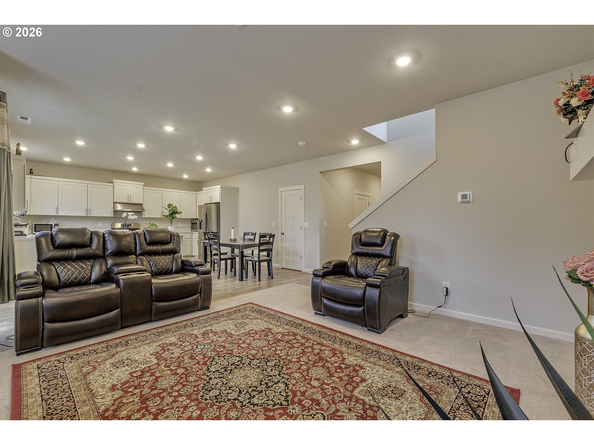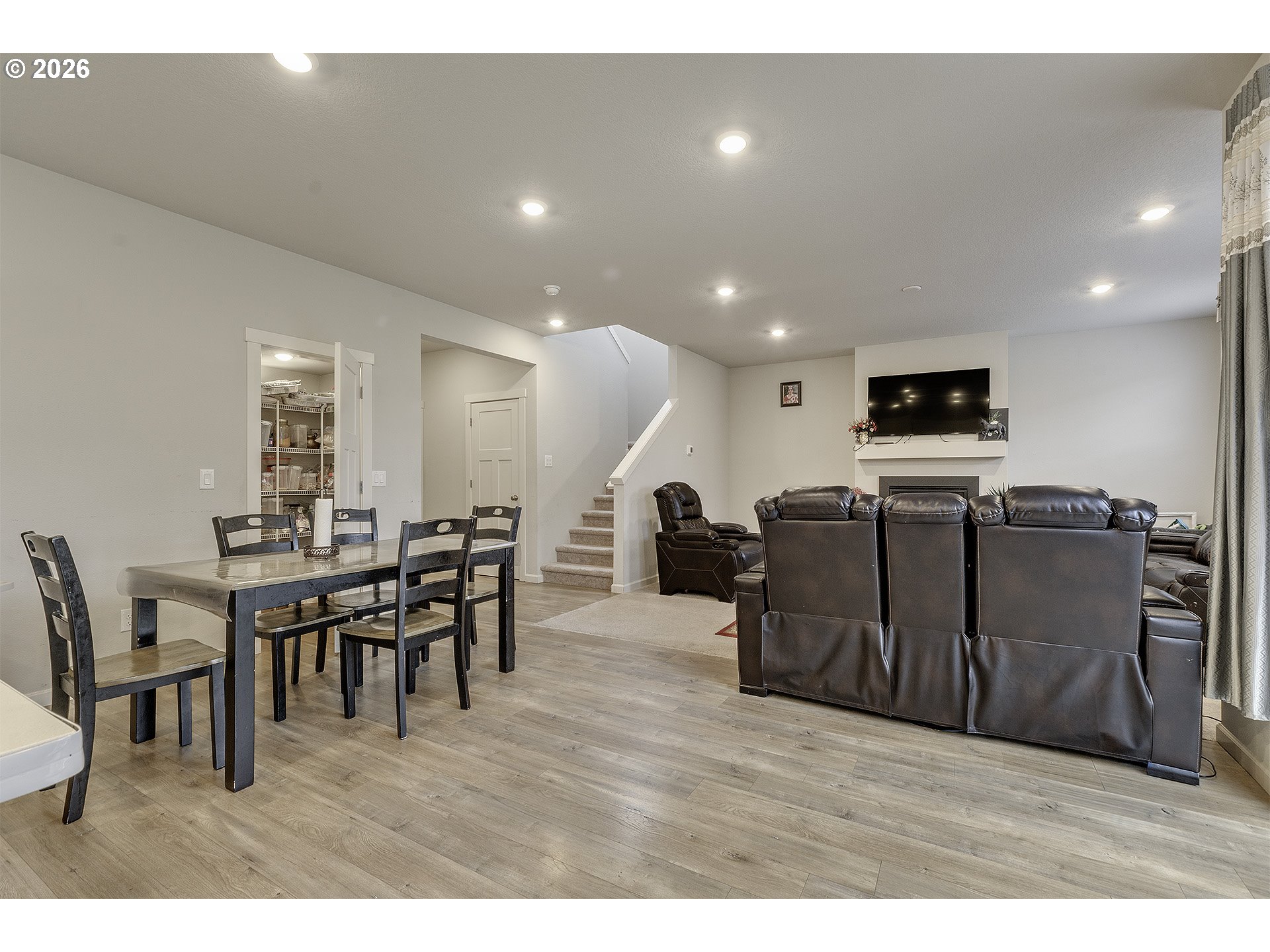 This two-story home in North Plains offers a clean, functional layout designed for everyday living and easy entertaining. The front entry opens into a bright, open-concept main level where the modern kitchen flows seamlessly into the dining area and spacious Great Room—perfect for hosting or relaxing. Large windows bring in natural light, while access to the backyard creates an ideal indoor-outdoor connection.Upstairs, you’ll find three comfortable bedrooms, including a private owner’s suite featuring a full bathroom and generous closet space. A versatile bonus area adds flexibility for a home office, media space, or playroom—whatever fits your lifestyle.This home combines small-town charm with convenient access to nearby amenities, parks, and commuter routes, making it a smart choice for those seeking both comfort and practicality.