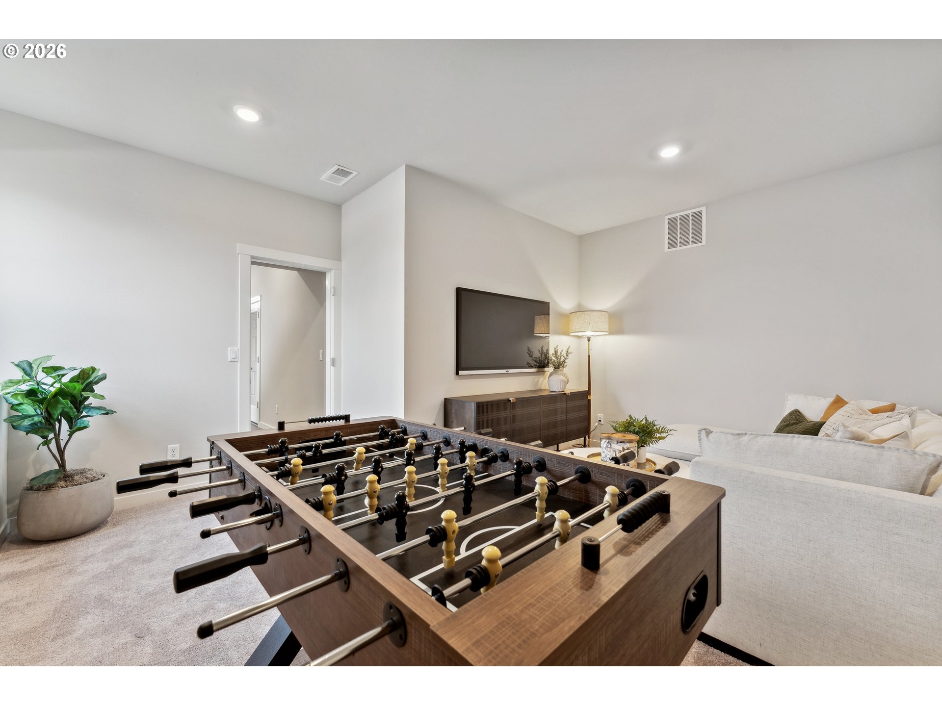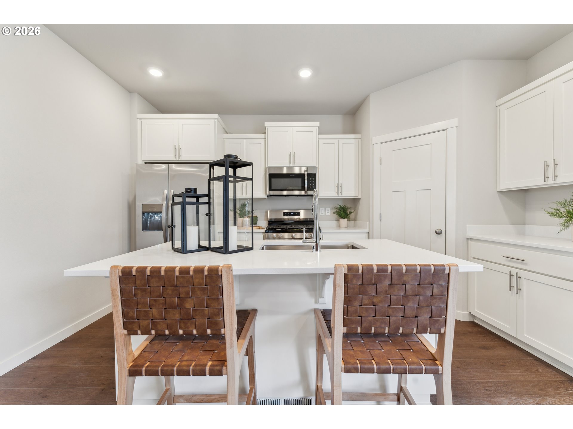 Rare opportunity to own a never-lived-in Hazel model by Lennar in the highly sought-after Parkview Terrace community in Forest Grove! This 3 bed, 2.5 bath, 2,263 sq ft three-story home offers a versatile, modern layout with designer upgrades throughout. The first level features a flexible bonus room—perfect for a media space, home office, or guest retreat. The main level showcases an open-concept great room, dining area, and kitchen with seamless access to the patio, plus a private den tucked away for added functionality.The kitchen is beautifully appointed with quartz countertops, shaker-style cabinetry with crown molding, stainless steel appliances including a gas range and refrigerator, undermount sink, Moen pull-down faucet, and LED recessed lighting.Upstairs, you’ll find all three bedrooms, including a spacious owner’s suite featuring a walk-in closet, dual sinks, quartz vanity, and a well-appointed ensuite bath.Step outside to enjoy the large, fully fenced and usable backyard with patio—ideal for entertaining, pets, or everyday outdoor living.Additional features include washer & dryer, luxury vinyl tile flooring in baths and laundry, designer exterior color scheme, and a 2-car garage (conversion to be completed prior to closing). Model home furniture is negotiable.Move-in ready, never occupied, and loaded with upgrades—this is a rare model home resale opportunity. Appointment required for showings.