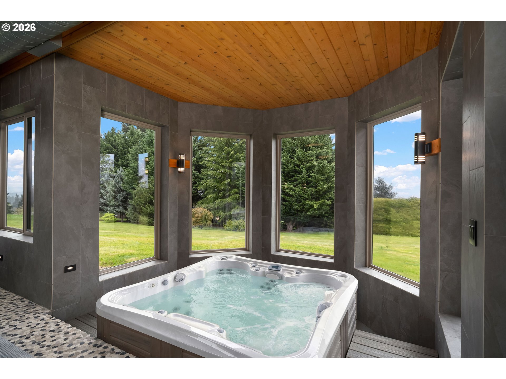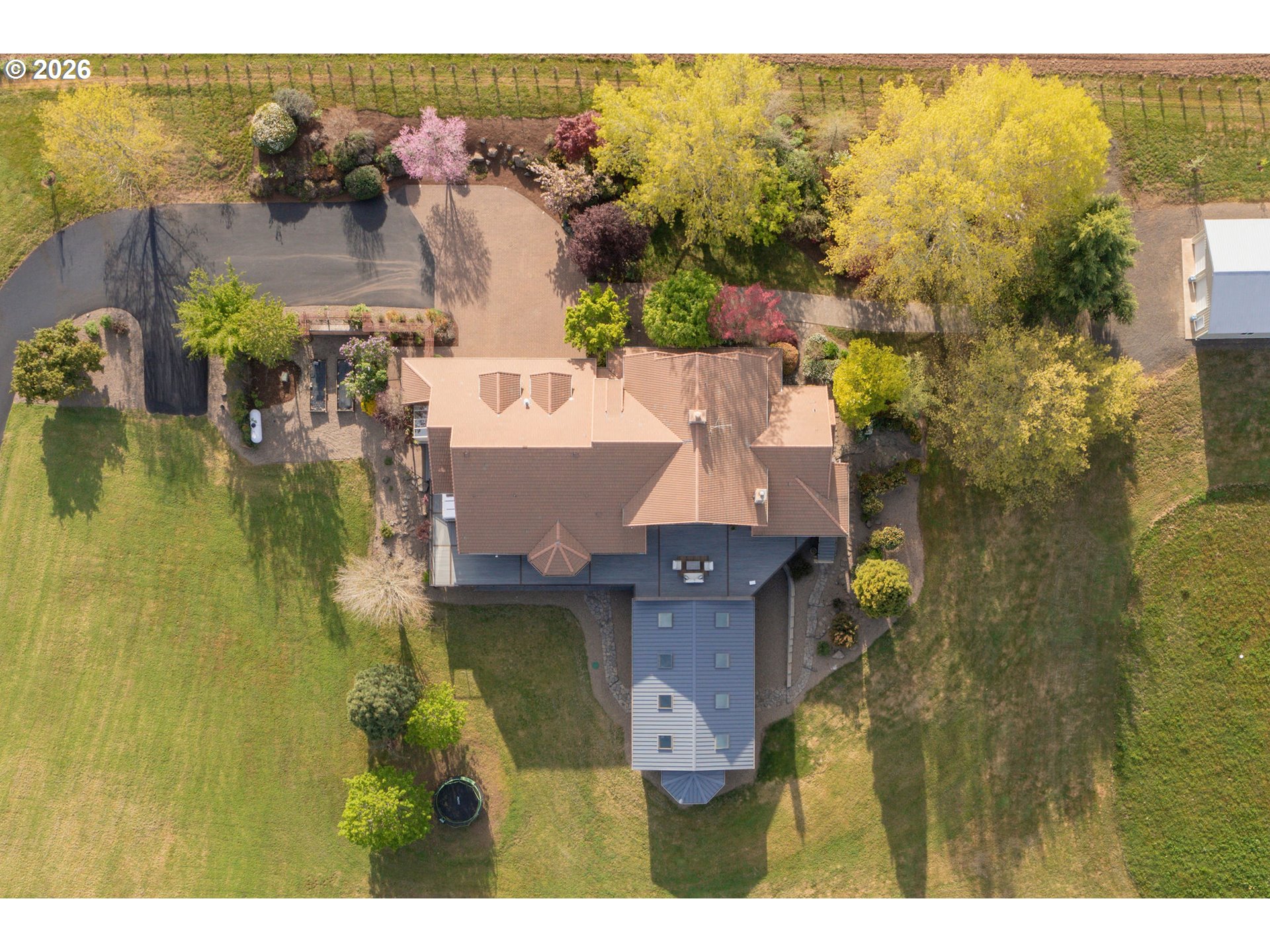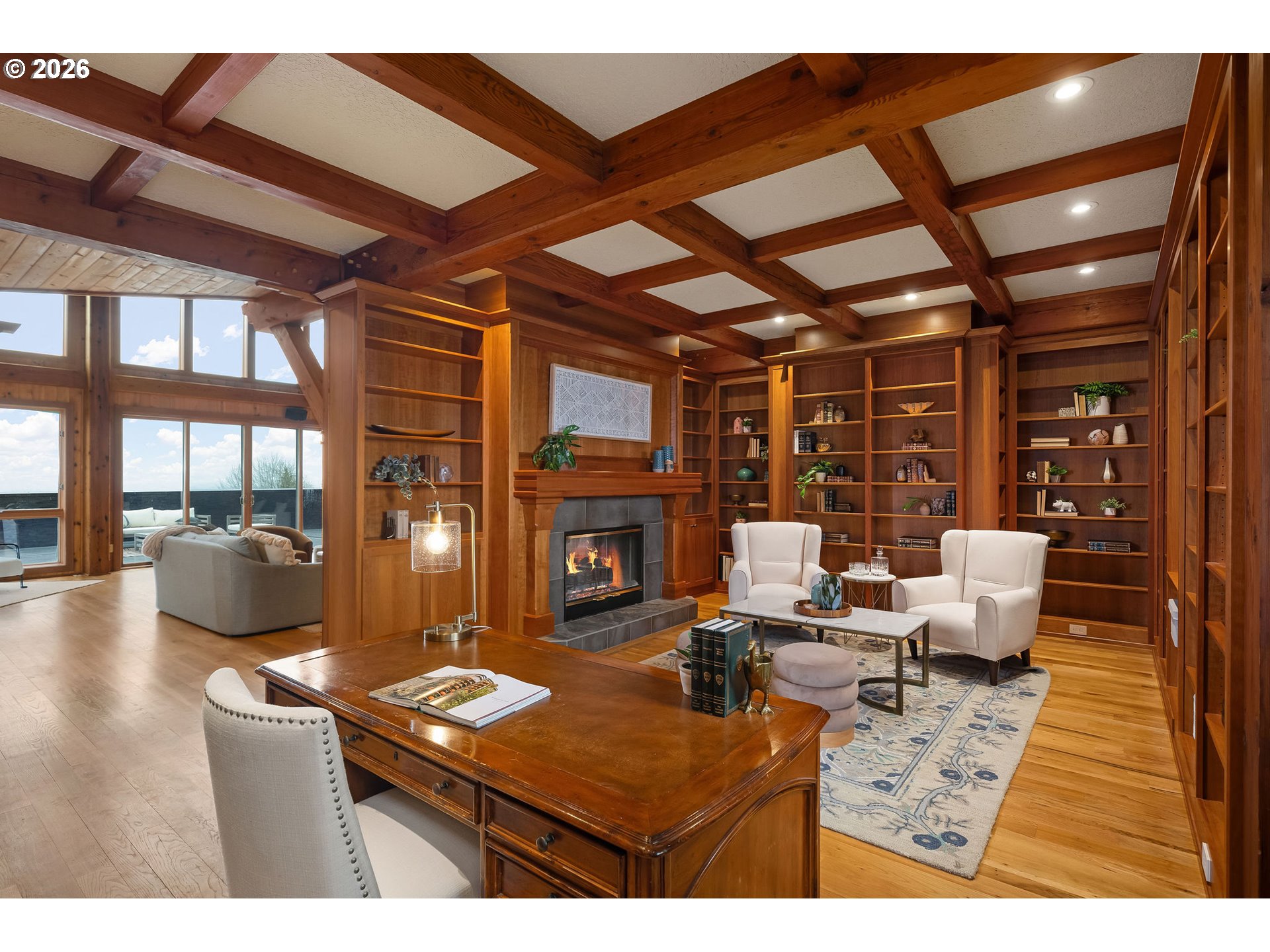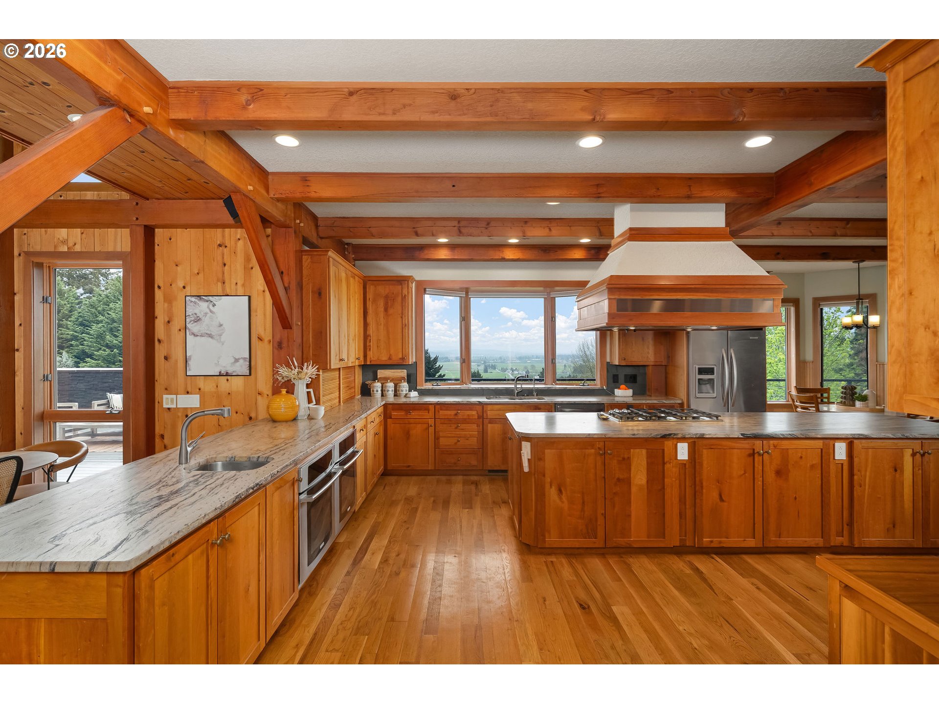 Open THURS, FRI Twilight, Sat & Sun! Rare 10-acre estate offering 12,007 sq ft of exceptional craftsmanship and versatility. This one-of-a-kind timberframe home features 5 bedrooms and 4.5 baths, constructed with stunning reclaimed wood dating back to the 1880s and sourced from the historic Bumble Bee Cannery in Astoria and a mill in Longview. Rich architectural details, exposed beams showing the joinery construction, and five fireplaces create warmth and character throughout. Five peaks visible from property, with Hood views from 24-foot soaring windows in great room, kitchen, dual offices, primary, and deck. St Helens, Rainier, Adams and Jefferson from different vantage points. A custom carved mantle shows all five mountains.Designed for both everyday living and entertaining, the home includes a stunning indoor saltwater pool and hot tub, complete with radiant heat flooring on pool deck, gym, theatre with 12-foot screen, billiards space, and stately library. True chef's kitchen with 12-foot leathered granite slab island and counters, double Electrolux convection ovens, 5 burner gas cooktop with commercial grade hood, and walk-in pantry. A separate upstairs apartment with loft provides ideal guest or multi-generational living. Whole-home generator offers year-round peace of mind. This expansive home with serious lodge resort vibes offers equestrian and winery potential. Volcanic rich soil perfect for Oregon's award-winning pinot noir grapes. Set on 10 rolling acres, the property includes a large barn with equipment, greenhouse, darkroom, and extensive storage throughout. A rare opportunity to own a legacy property that blends history, function, and lifestyle—just minutes from wine country and within reach of Portland.