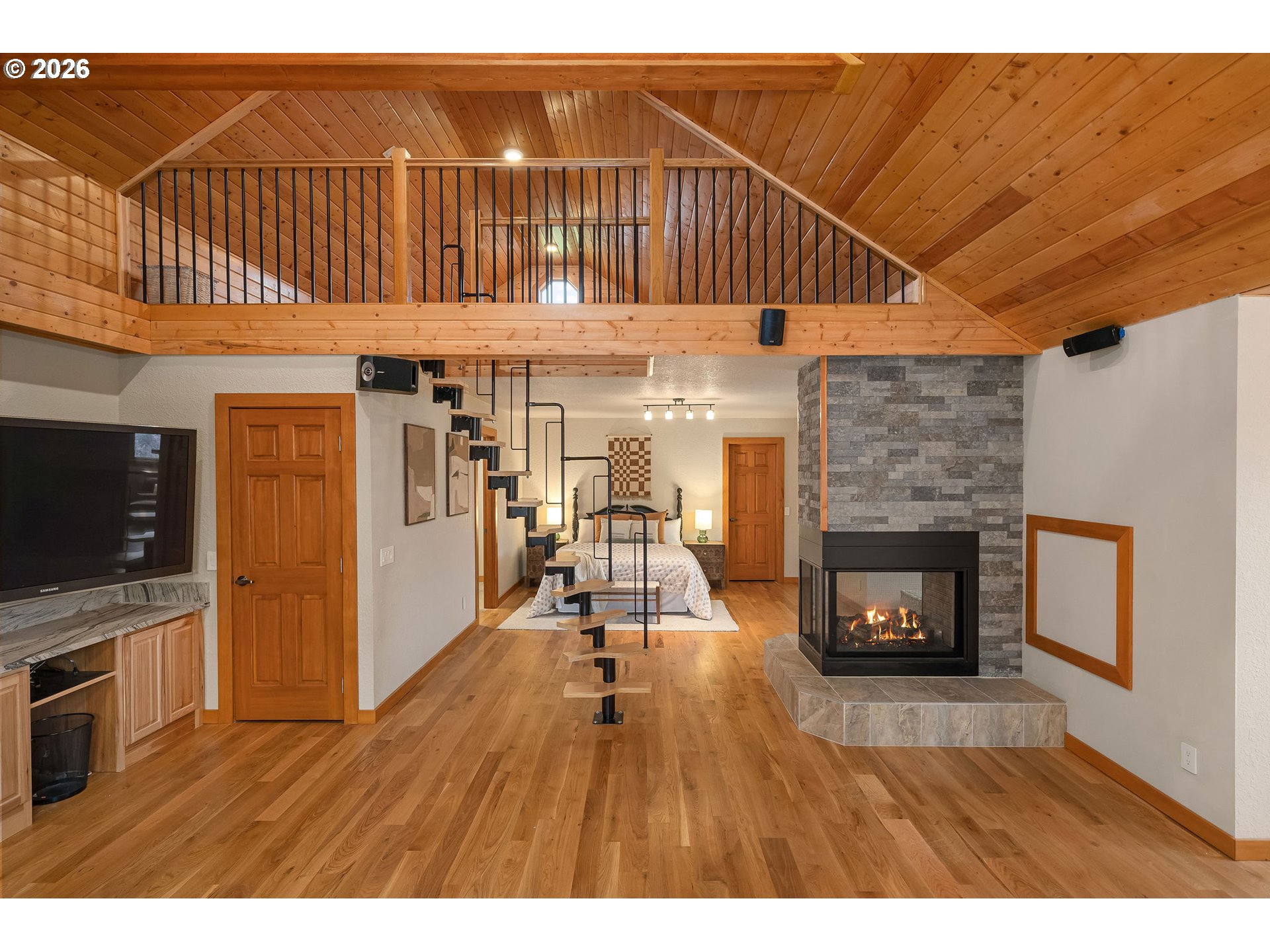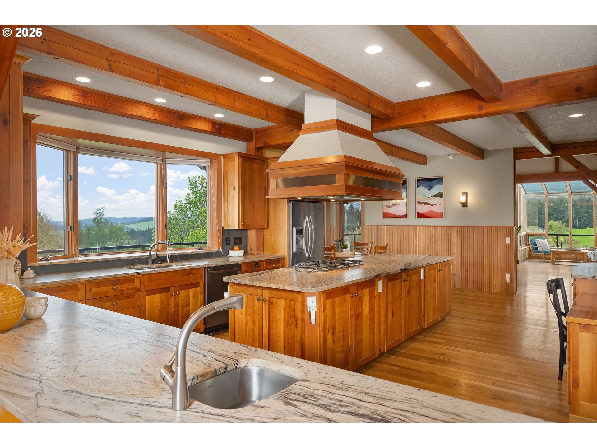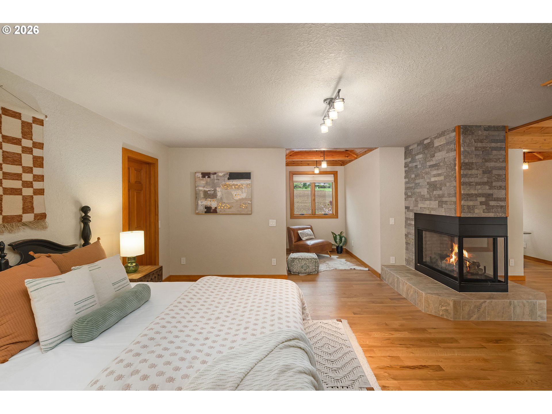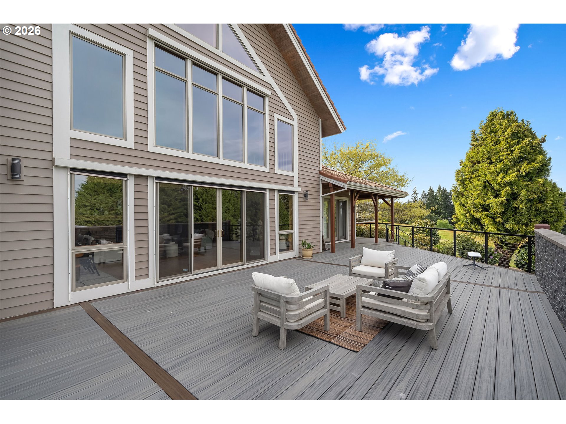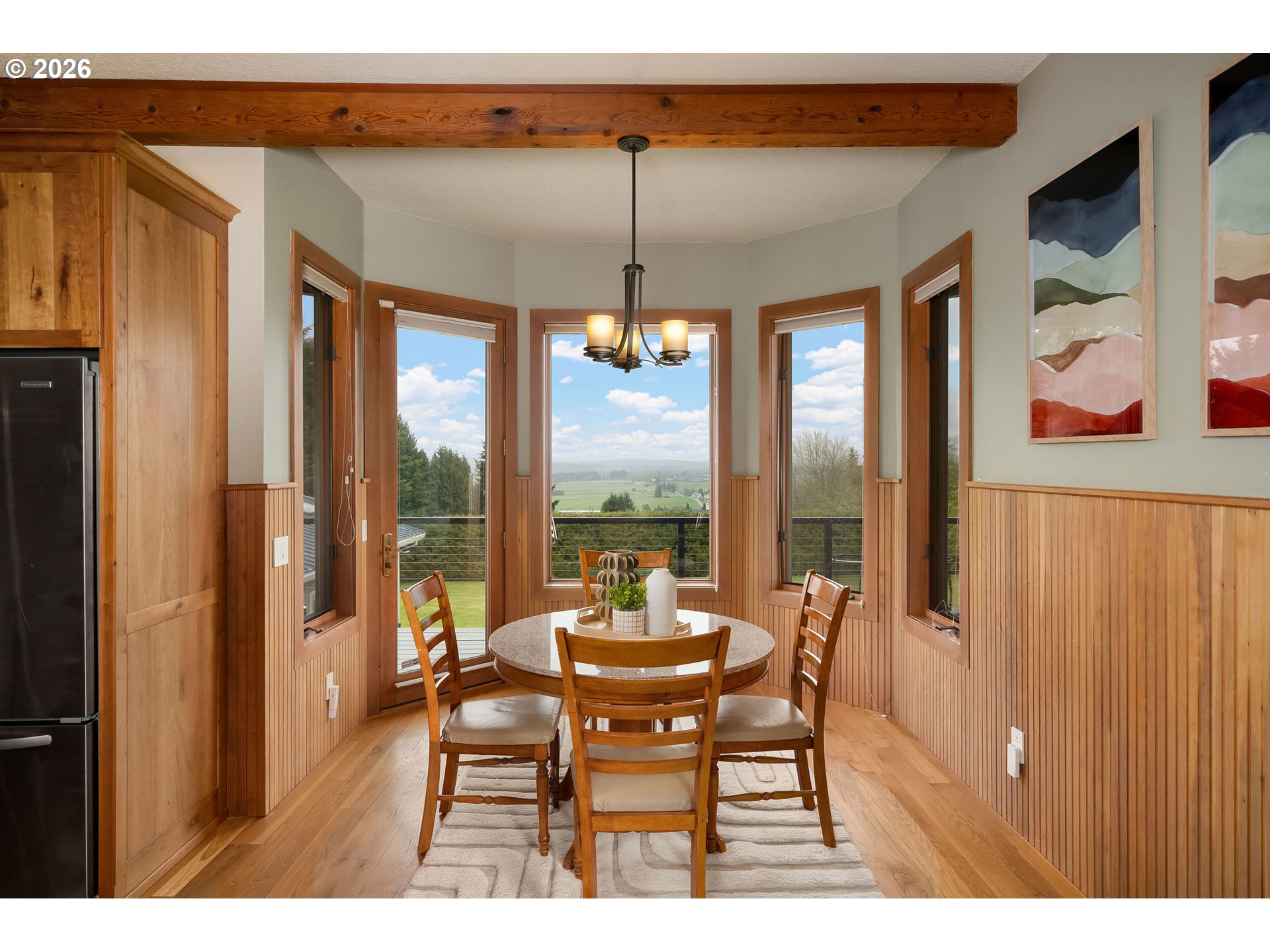 Open THURS, FRI Twilight, Sat & Sun! Rare 10-acre estate offering 12,007 sq ft of exceptional craftsmanship and versatility. This one-of-a-kind timberframe home features 5 bedrooms and 4.5 baths, constructed with stunning reclaimed wood dating back to the 1880s and sourced from the historic Bumble Bee Cannery in Astoria and a mill in Longview. Rich architectural details, exposed beams showing the joinery construction, and five fireplaces create warmth and character throughout. Five peaks visible from property, with Hood views from 24-foot soaring windows in great room, kitchen, dual offices, primary, and deck. St Helens, Rainier, Adams and Jefferson from different vantage points. A custom carved mantle shows all five mountains.Designed for both everyday living and entertaining, the home includes a stunning indoor saltwater pool and hot tub, complete with radiant heat flooring on pool deck, gym, theatre with 12-foot screen, billiards space, and stately library. True chef's kitchen with 12-foot leathered granite slab island and counters, double Electrolux convection ovens, 5 burner gas cooktop with commercial grade hood, and walk-in pantry. A separate upstairs apartment with loft provides ideal guest or multi-generational living. Whole-home generator offers year-round peace of mind. This expansive home with serious lodge resort vibes offers equestrian and winery potential. Volcanic rich soil perfect for Oregon's award-winning pinot noir grapes. Set on 10 rolling acres, the property includes a large barn with equipment, greenhouse, darkroom, and extensive storage throughout. A rare opportunity to own a legacy property that blends history, function, and lifestyle—just minutes from wine country and within reach of Portland.