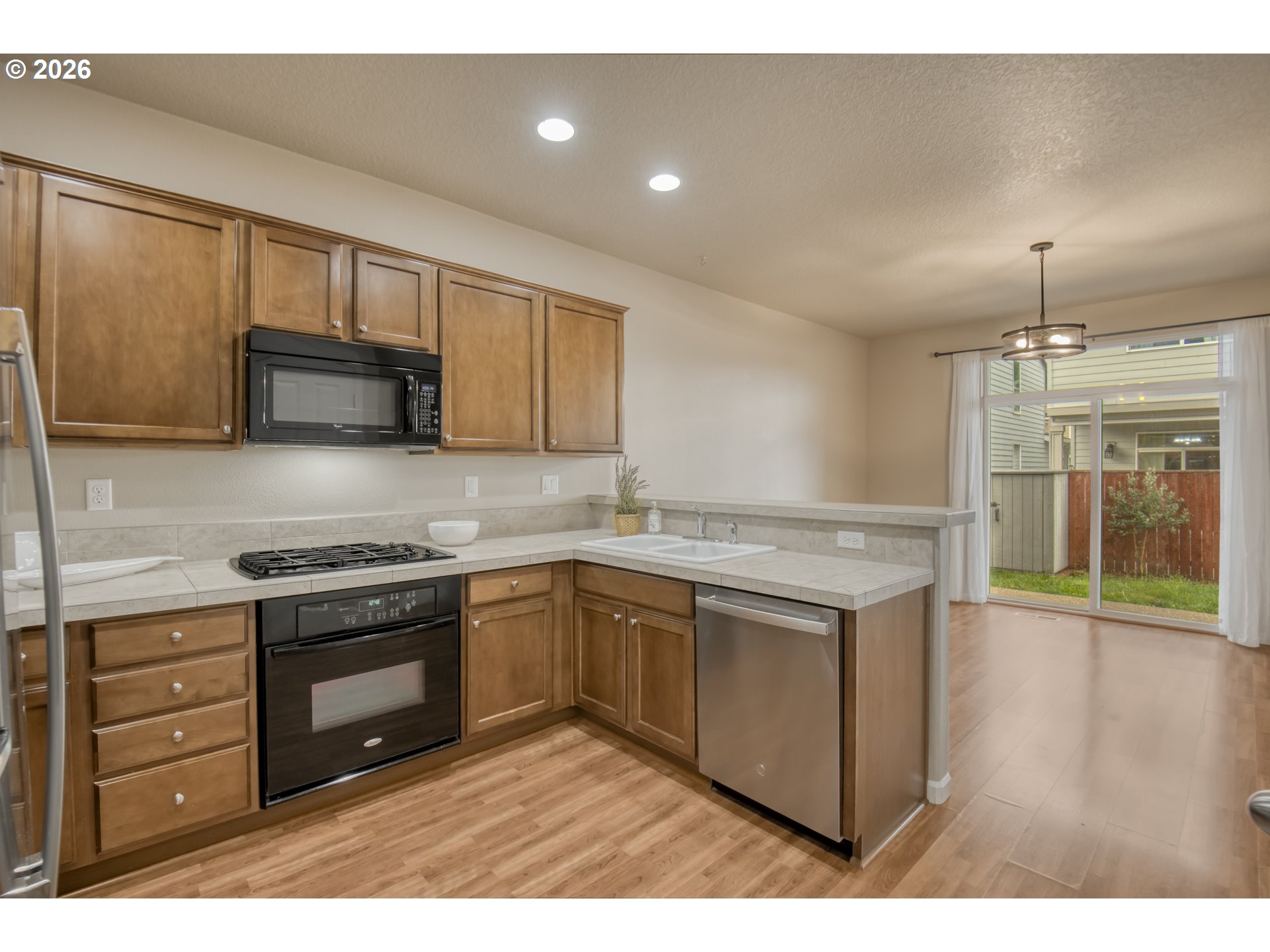 Step into a welcoming home with an open floor plan and a vaulted entry that fills the space with light and a sense of warmth. The cozy gas fireplace creates the perfect gathering spot, while beautiful laminate wood floors flow through some of the main living areas. The spacious kitchen is designed for everyday living and entertaining, featuring a pantry, convenient eating bar, and a stainless-steel LG side-by-side refrigerator, along with a gas cooktop, electric range, and built-in microwave.Just off the dining area, a covered patio invites you to enjoy morning coffee or relaxed evenings outdoors while overlooking the fenced backyard with a handy storage shed. Upstairs, the comfortable primary suite offers a ceiling fan, double-sink vanity, and a generous walk-in closet for added convenience.A versatile loft area provides the perfect space for a playroom, home office, or media room—whatever fits your lifestyle. The laundry room includes built-in cabinetry and shelving for extra storage, and the adjoining two-car garage features a utility sink for added functionality. Guests will appreciate the plentiful street parking, and the home also offers air conditioning and carpet on the main and upper level, making it move-in ready and easy to enjoy from day one.The neighborhood adds even more to love, with everyday conveniences just minutes away. Nearby schools, Fred Meyer for shopping and fuel, 24 Hour Fitness, local restaurants, a movie theatre, and several golf courses make it easy to enjoy both daily errands and leisure time close to home. The location also offers a simple commute to major employers including Nike, Intel, and Mentor Graphics, making this home an ideal balance of comfort, convenience, and lifestyle.