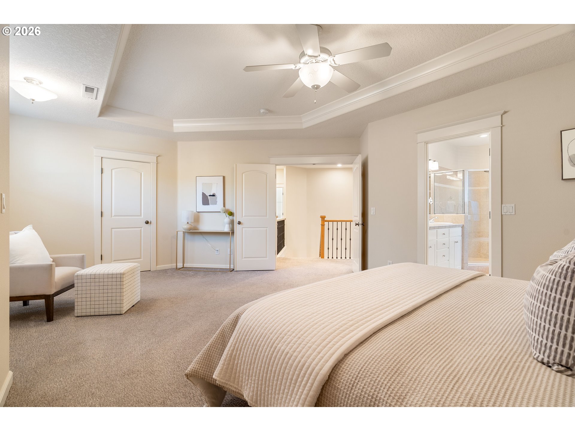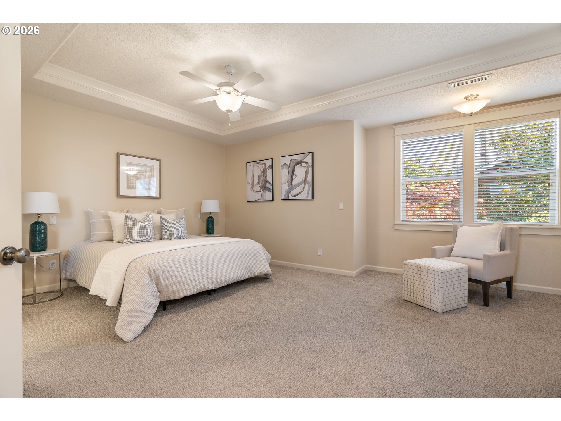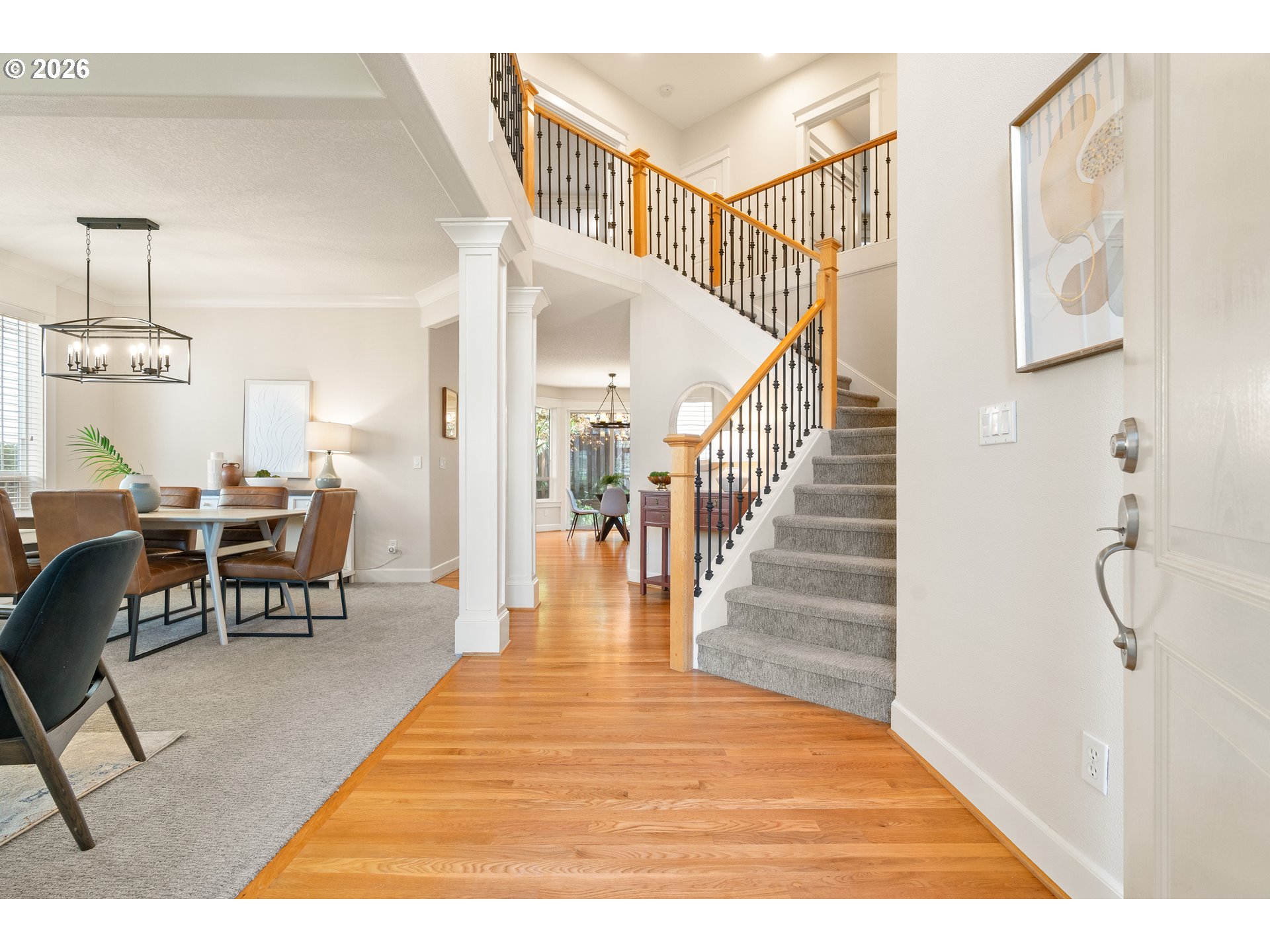 Welcome to elevated living in Bonny Slope, one of Portland’s most coveted and picturesque neighborhoods. This beautifully maintained, move-in ready home offers a refined blend of comfort, functionality, and timeless style, featuring 4 spacious bedrooms, a thoughtfully designed office, and expansive living areas tailored for both relaxed daily living and entertaining. A dramatic two-story entry and sweeping open staircase create a striking first impression, while soaring ceilings and expansive windows soak the home in warm, natural light. The inviting great room, perfectly positioned to overlook the backyard, serves as the heart of the home. A sliding door seamlessly connects indoor and outdoor living, opening to a meticulously designed, low-maintenance yard complete with year-round turf and a stunning built-in stone fire pit. The kitchen is both stylish and functional, featuring granite countertops, a central gas cooktop island, and abundant storage within beautifully crafted solid wood cabinetry. On the main level, a sophisticated office with custom built-in desk and bookshelves provides an inspiring workspace, complemented by a tastefully renovated powder room and a well-appointed laundry area. Upstairs, French doors open to a serene and spacious primary suite, where elegant tray ceilings add architectural interest. The retreat is complete with a generous walk-in closet and an ensuite featuring dual vanities and a deep soaking tub perfect for unwinding at the end of the day. Three additional bedrooms offer versatility and comfort, including a charming fourth bedroom with custom built-ins and cozy reading nooks. Additional attic storage ensures there’s a place for everything. An oversized three-car garage has been enhanced with added storage. All of this is ideally located just moments from Bonny Slope Park and the beloved Well & Good Coffee House bringing community, recreation, and everyday amenities right to your doorstep.