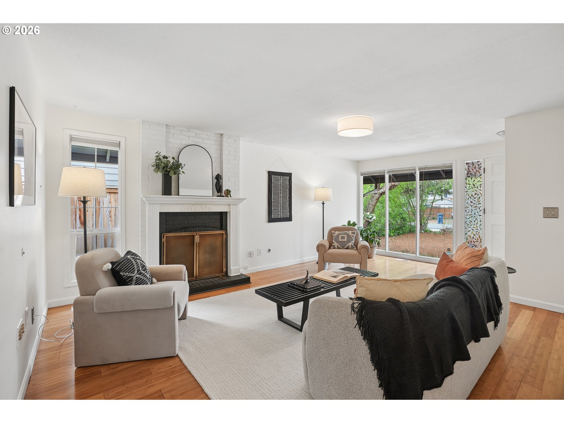 This welcoming updated mid-century-inspired ranch offers comfortable single-level living. The home has been meticulously maintained and upgraded, making it easy for you to move in with confidence. The living room features dramatic floor-to-ceiling windows and a beautifully restored and functioning brick fireplace. The updated bathroom includes modern shower and floor tiling. This home is perfect for indoor-outdoor cooking or just a private escape to your backyard haven. The kitchen leads directly to the large deck with plenty of space for a table and grill to entertain. The deck overlooks a yard that has been lovingly improved with extensive gardening and raised beds. You could easily move in and enjoy, or make your own vision come to light in the oversized yard! The layout is perfect for practical living with 3 bedrooms, any of which would make for an easy office. And enjoy the magical back yard even more with the sliding doors in the primary bedroom. Major improvements include a newer added air conditioning, furnace, washer and dryer and freezer in the garage. Enjoy a new sidewalk, refurbished chimney and more! Ask for the list of updates. A spacious two-car garage that's insulated and drywalled, offers room for storage or projects. Conveniently located a few short minutes from Intel and Reed's Crossing Town Center featuring Market of Choice, gyms, banks, restaurants, coffee, health services and more! Nearby you’ll find food carts, community events, and you’re about 10 minutes from local farms and wineries, with Aloha High School right around the corner. Total SQFT includes garage.