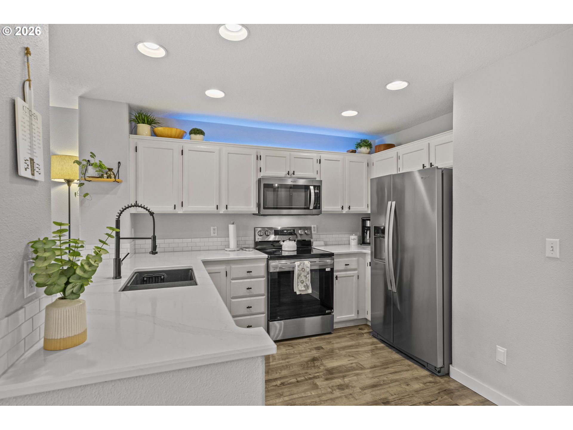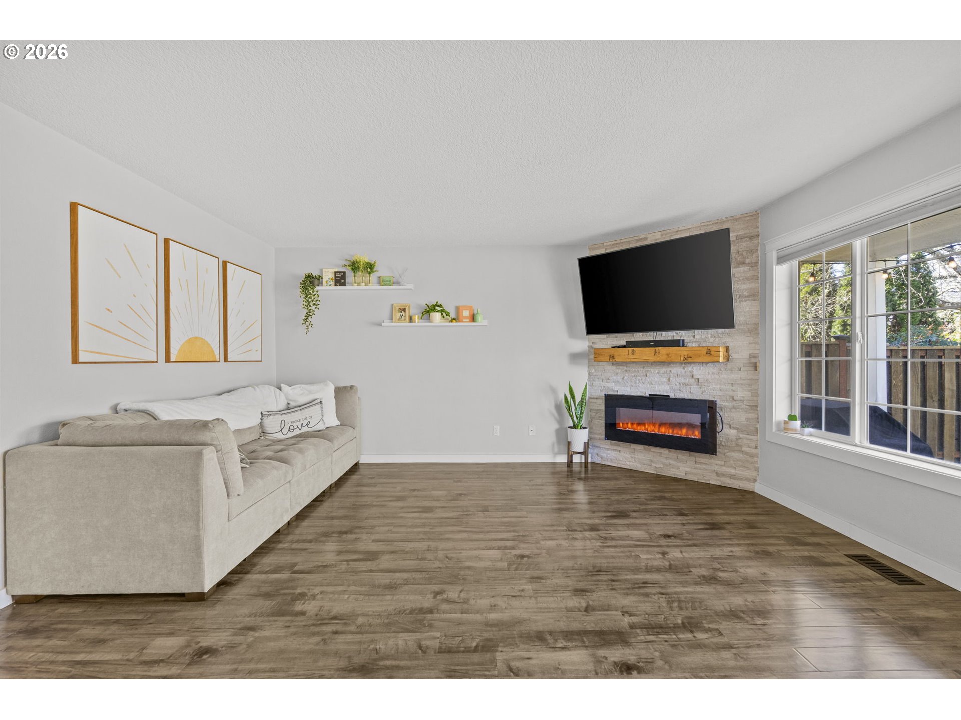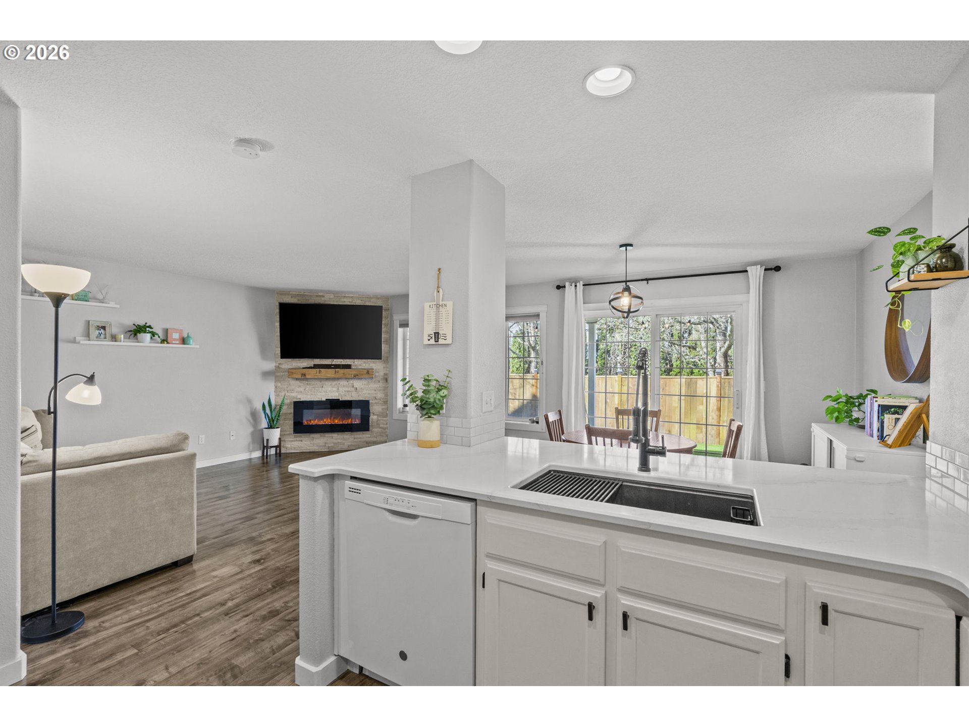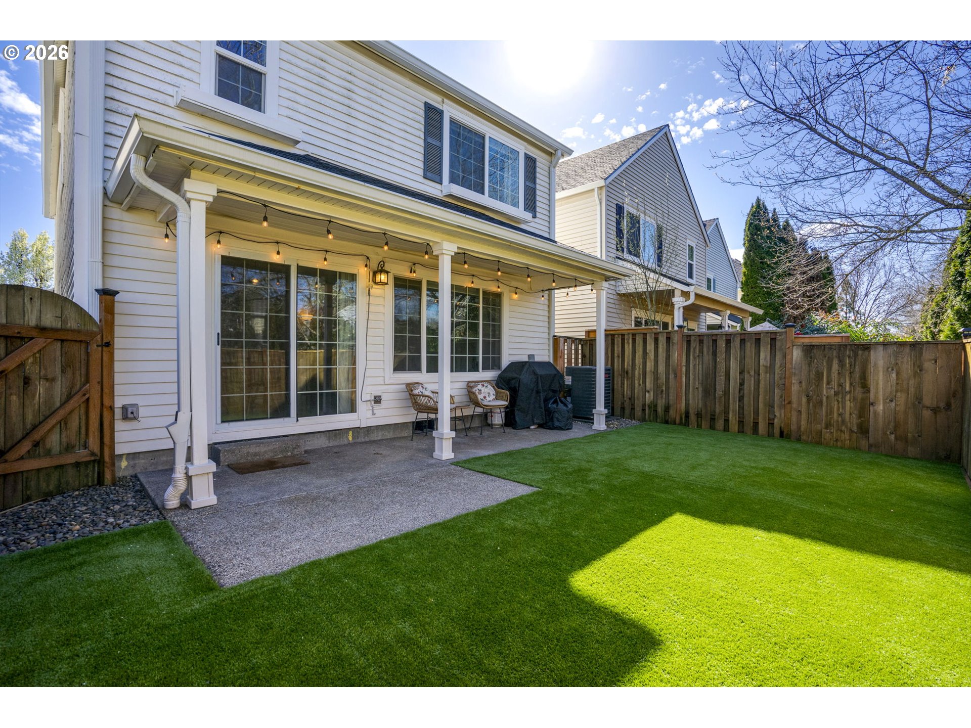 OPEN HOUSE Saturday 4-11-26 11:00am-1:00pm. Wonderful home with SO MANY UPDATES! New ROOF and GUTTERS installed 2023. NEW A/C UNIT and FURNACE installed 2024. Gorgeous kitchen updates include quartz countertops and backsplash, new stove, microwave, undermount sink and faucet. Stainless steel appliances. Quartz eat bar great for conversations during meal prep, and a place for work/homework. Great laminate flooring on main, electric fireplace, and glass sliding door from dining room to backyard. Backyard features covered patio, NEW PRIVACY FENCE, river-rock walkways, and NEW TURF LAWN--looks so good! Perfect for outdoor fun with low maintenance. Upstairs has large primary suite with new ceiling fan, and updates in bathroom. Garage has built-in storage. GREAT LOCATION--park with playground and gazebo just steps from your door. Close to schools, shopping. TOO MUCH TO MENTION! A must see!