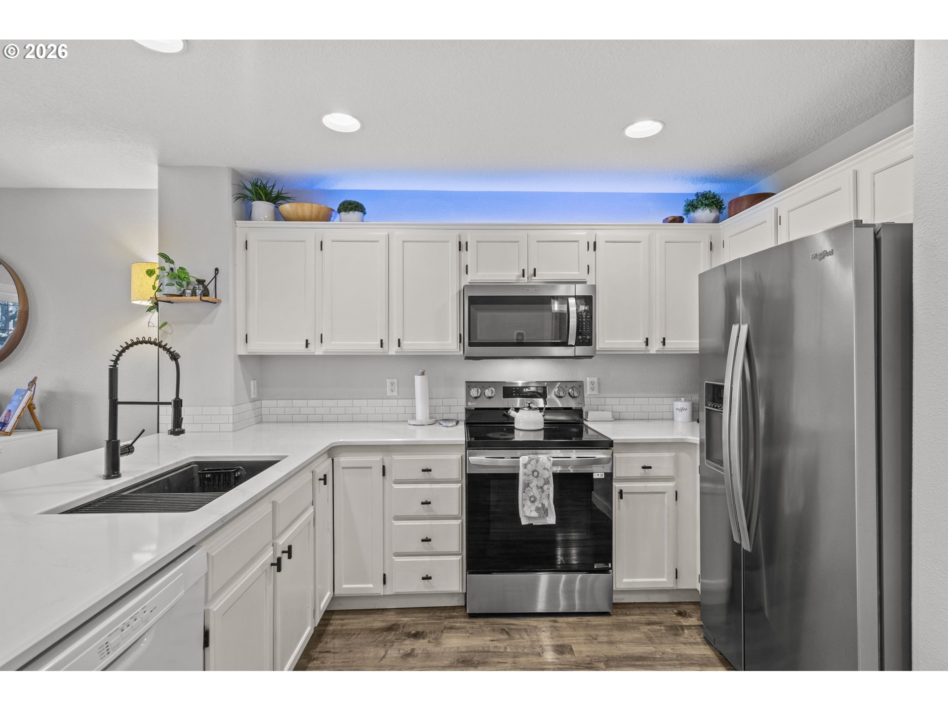 Dishwasher, FreeStandingRange, FreeStandingRefrigerator, Microwave, Quartz, StainlessSteelAppliance