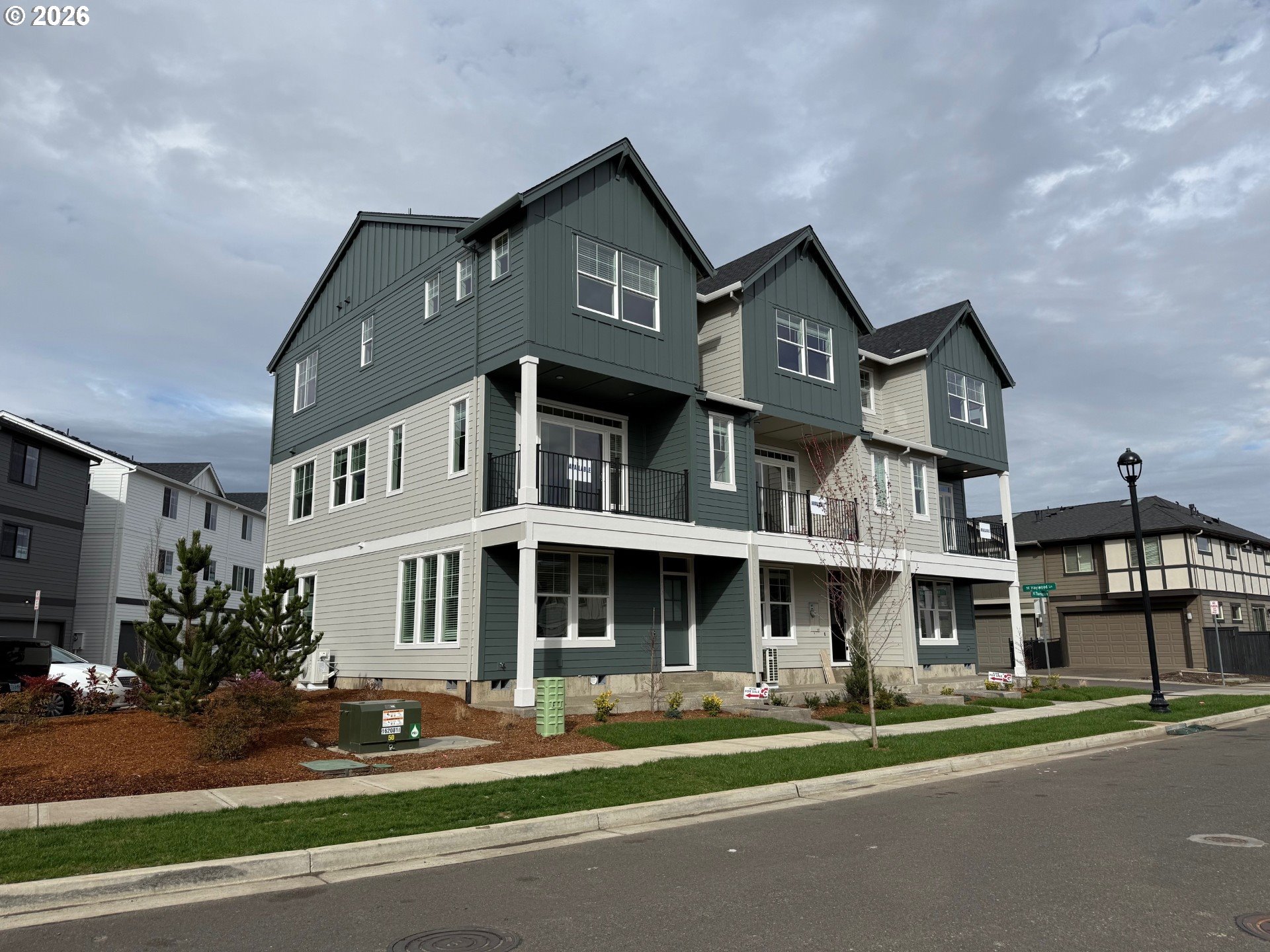 Brand New Luxury Townhome Community, Located in South Hillsboro on a CORNER lot with a FOUR CAR Driveway! The Devon Plan offers 4 bedrooms, 3.5 baths, a large kitchen island + walk-in pantry and 9' ceilings or higher throughout entire home. Actual home Features include white cabinets, grey quartz counters & under-mount sinks in kitchen AND bathrooms, black matte hardware, lighting fixtures and faucets, stainless steel appliances, soft close doors and drawers at all cabinets and wide plank laminate hardwood flooring on entire main level. Stay warm in the winter with electric heat pump that will also keep you cool in the summer! The primary suite has vaulted ceilings, walk-in closet, walk in shower, dual sinks, quartz counters and more. The upstairs loft area is a great flex space for a desk or small couch. The home has a Two car side by side garage with a 50 amp EV outlet & a FOUR CAR Driveway! Covered deck off the great room, plus a bedroom and full bath on the ground level. Pictures are of a same floorplan in model building w/ similar finishes. One of the best locations in the neighborhood! Taxes TBD. Home is MOVE IN READY! Incentives available. Way below current interest rate available with preferred lender-see agent for details. [Home Energy Score = 7. HES Report at https://rpt.greenbuildingregistry.com/hes/OR10226036]