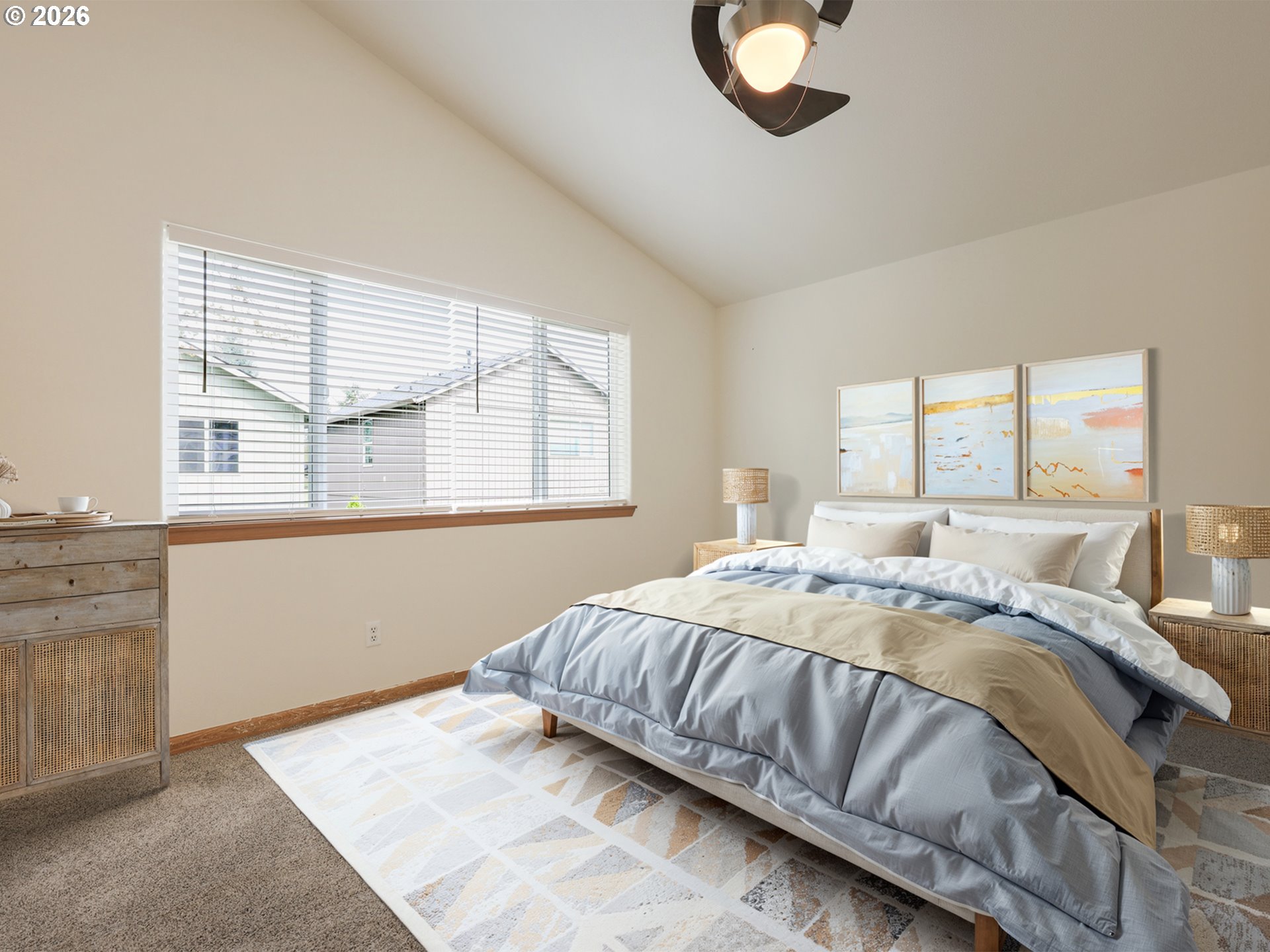 CeilingFan, GarageDoorOpener, LaminateFlooring, TileFloor, VaultedCeiling, WalltoWallCarpet, WasherDryer
