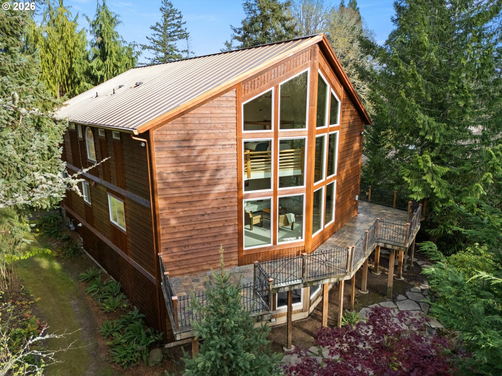 Open House Sunday, 4/26, 1-3PM. This spacious Northwest Contemporary home is located in the desirable Dogwood Park neighborhood and situated on a park-like 2.78-acre lot. This is a rare opportunity to own a custom-built home on the market for the first time. Take in the lush, private landscape through the 24-foot windows, allowing for an abundance of natural light. The home offers lots of unique features, plentiful storage, and details you won’t find anywhere else. The open concept kitchen, complete with all appliances, flows to the dining room, creating an ideal space for gatherings. A woodstove in the living room adds warmth and comfort on cold winter days. Upstairs, the loft-like primary suite features great views, a walk-in closet, soaking tub, shower, and private deck. Four additional bedrooms provide flexibility for guests, office space, or a media room. The main-level laundry room includes storage, a sink, and washer and dryer. Enjoy backyard views from the wraparound deck, perfect for entertaining. The attached three-car garage offers additional storage, while the lower level space could be finished to create additional living space or a workshop. Cedar siding and a metal roof add durability and character. The property features mature landscaping, an impressive water feature, and room for garden. Located near Bethany shops, parks, and schools, with an easy commute to Nike, Intel, and downtown. Potential future development opportunity; buyer to perform due diligence. Appointment only. Listing agent must accompany for all showings.