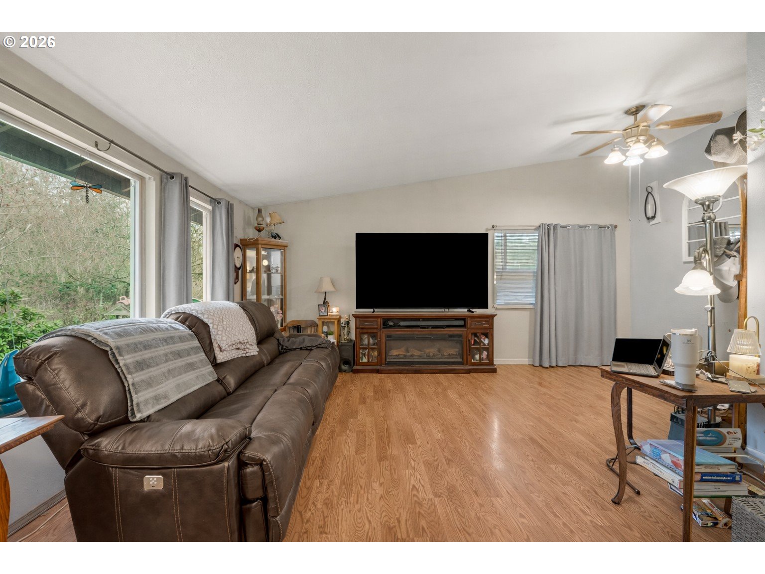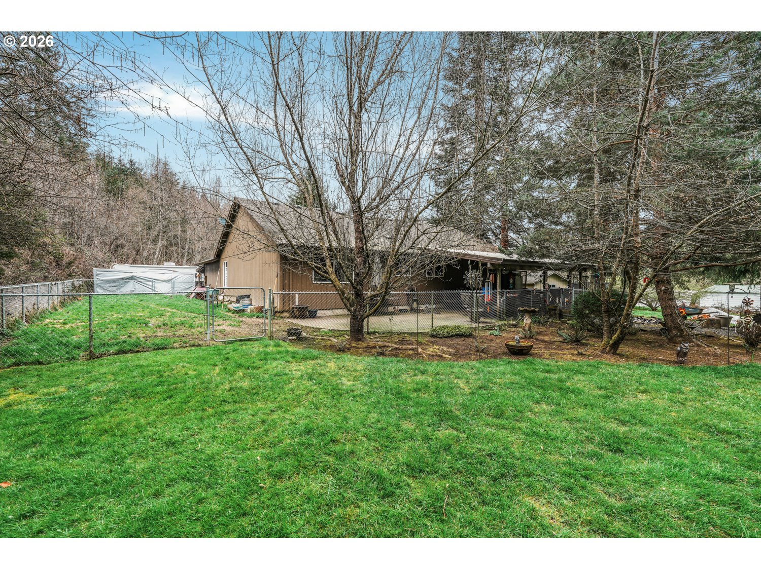 Tucked away at the end of a private driveway, this serene 1.29-acre property offers the perfect blend of privacy and peaceful country living, surrounded by mature trees and outdoor space. Inside, you’ll find a well-designed 3-bedroom, 2-bath home featuring wood floors throughout the main living areas and a bright living room with vaulted ceilings. The kitchen is equipped with stainless steel appliances and generous prep space, ideal for everyday living and entertaining. An adjacent dining/family room opens via sliding doors to a covered patio, creating a seamless indoor-outdoor flow. The primary suite includes a walk-in closet and private bathroom, while two additional bedrooms and a full guest bath provide comfortable accommodations for family, guests or an office space. Step outside to enjoy the fully fenced backyard with a large concrete patio and a separate seating area with a fire pit that's perfect for relaxing or hosting gatherings. With plenty of room for gardening, an older outbuilding at the rear of the property, and space for RV parking, this property offers endless possibilities. Experience the space, privacy, and lifestyle of country living while still enjoying the comforts of home.