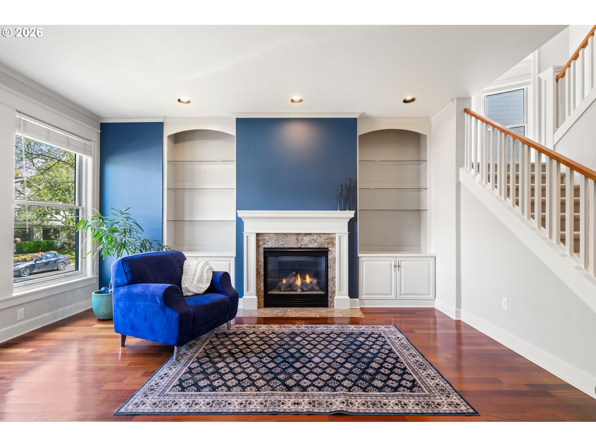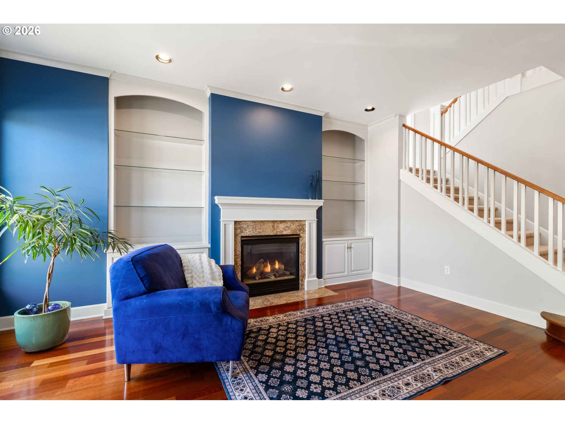 Bookcases, Fireplace, HardwoodFloors