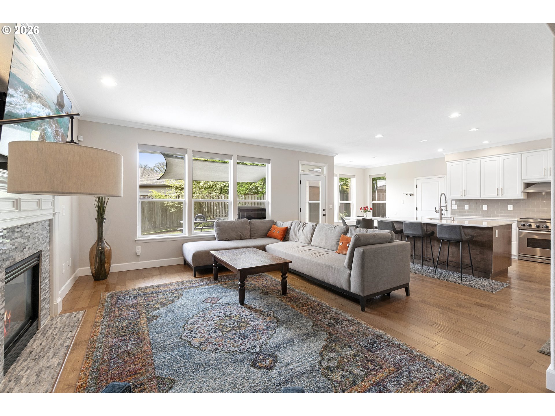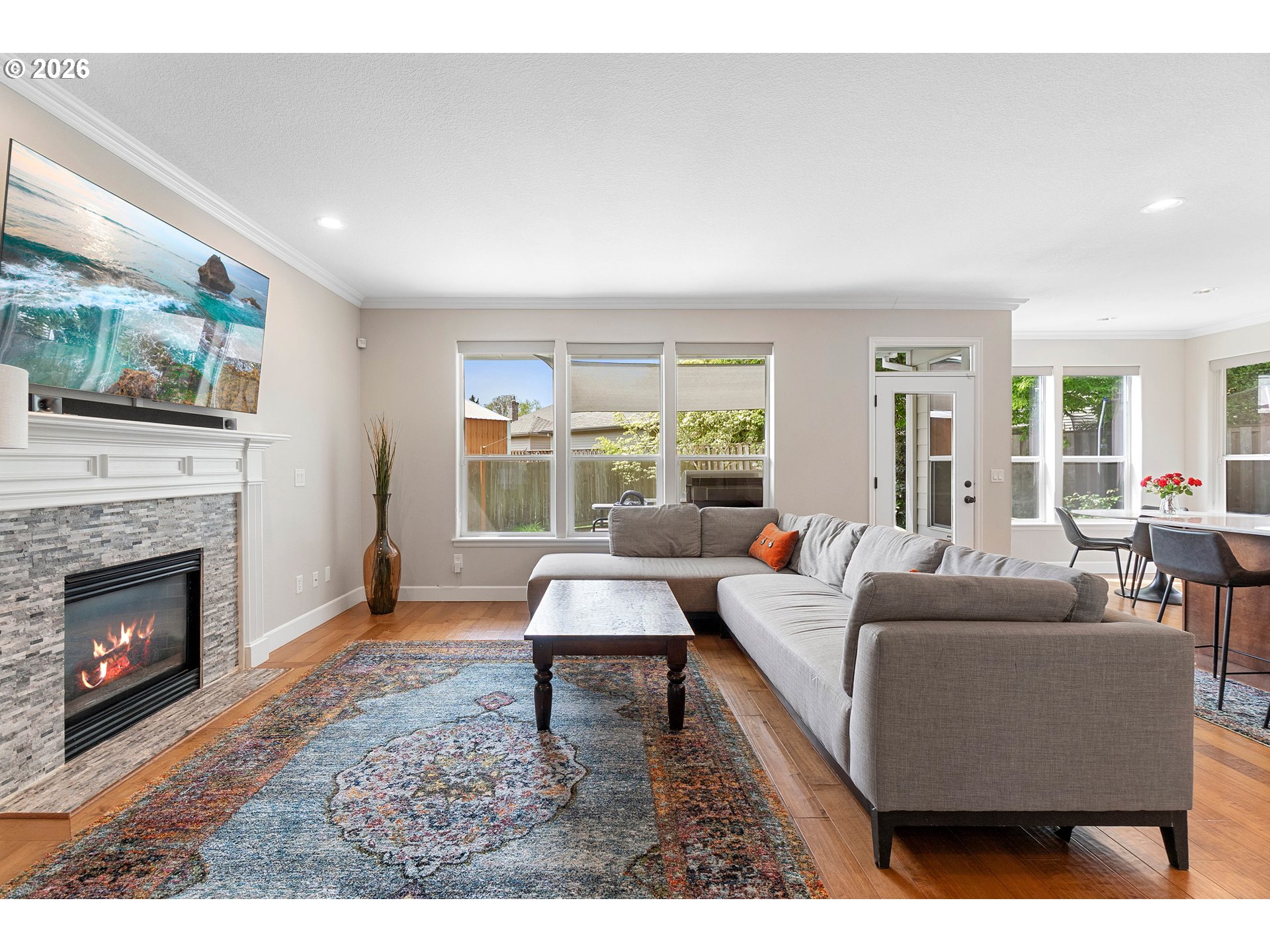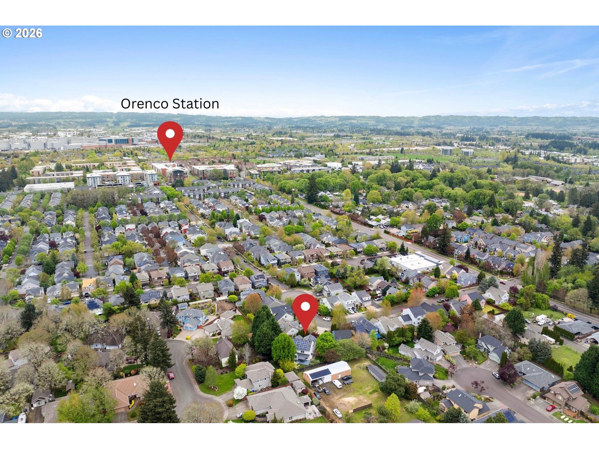 Beautifully maintained home in Orenco Station, set on a spacious and private lot. The gourmet kitchen includes stainless steel appliances, a gas range, quartz countertops, an island, and a breakfast nook. The inviting living room with a gas fireplace flows seamlessly into the dining area with sliding glass doors to the backyard. A versatile office or den on the main level features a Murphy bed and barn doors. Hardwood flooring extends throughout the main floor. Upstairs, the primary suite offers vaulted ceilings, spacious walk-in closet and a private ensuite bath. Three additional bedrooms and a generous bonus room, complete with its own balcony, provide flexible living space. Enjoy the private backyard with a deck, perfect for relaxing or entertaining. Furnace and a/c were updated in 2021, hot water heater in 2024. Paid off solar panels help with the electricity bill! Three car tandem garage. Ideally located near New Seasons, dining, shopping, parks, schools, and public transit, with easy access to all that Orenco Station has to offer.