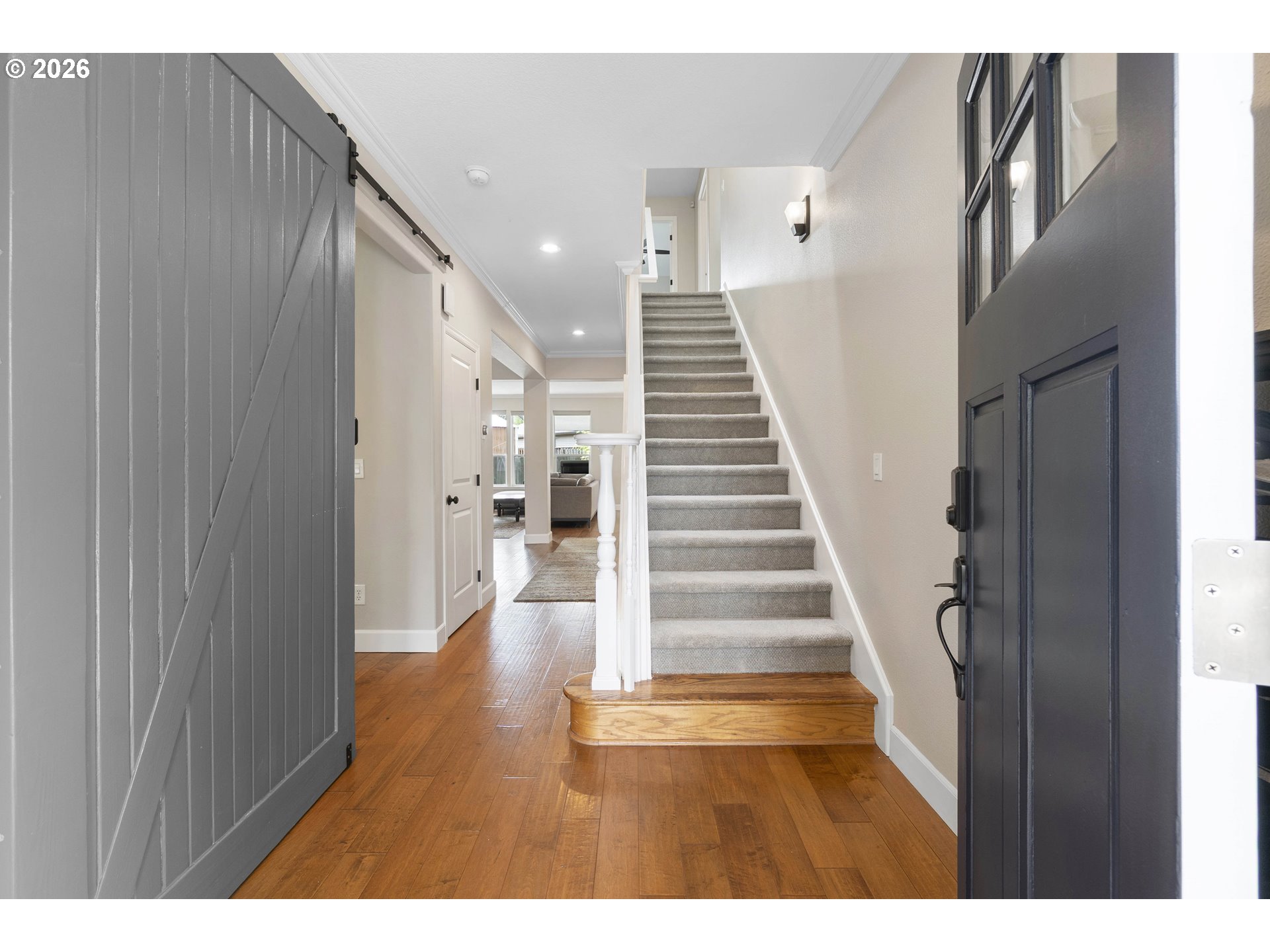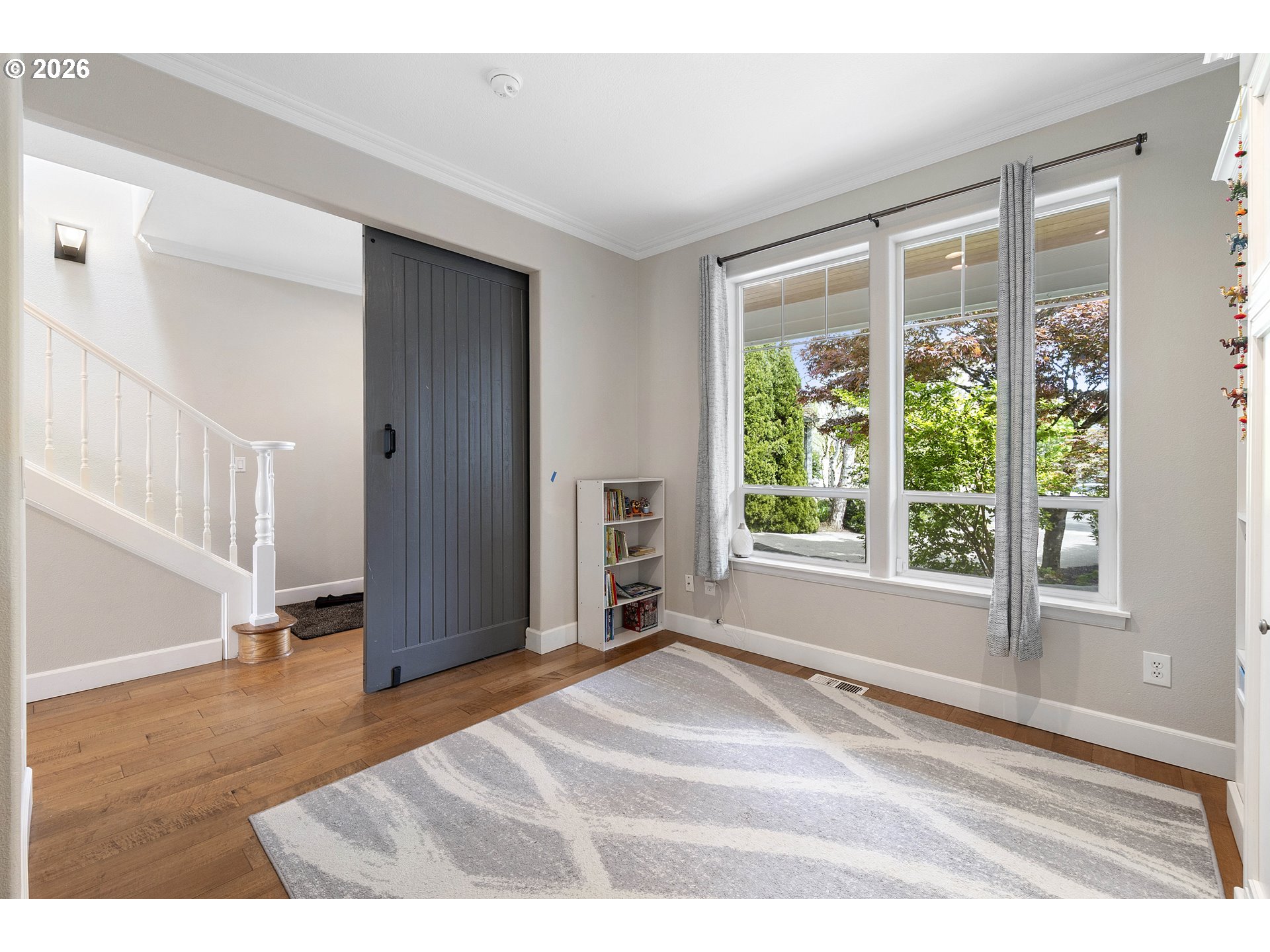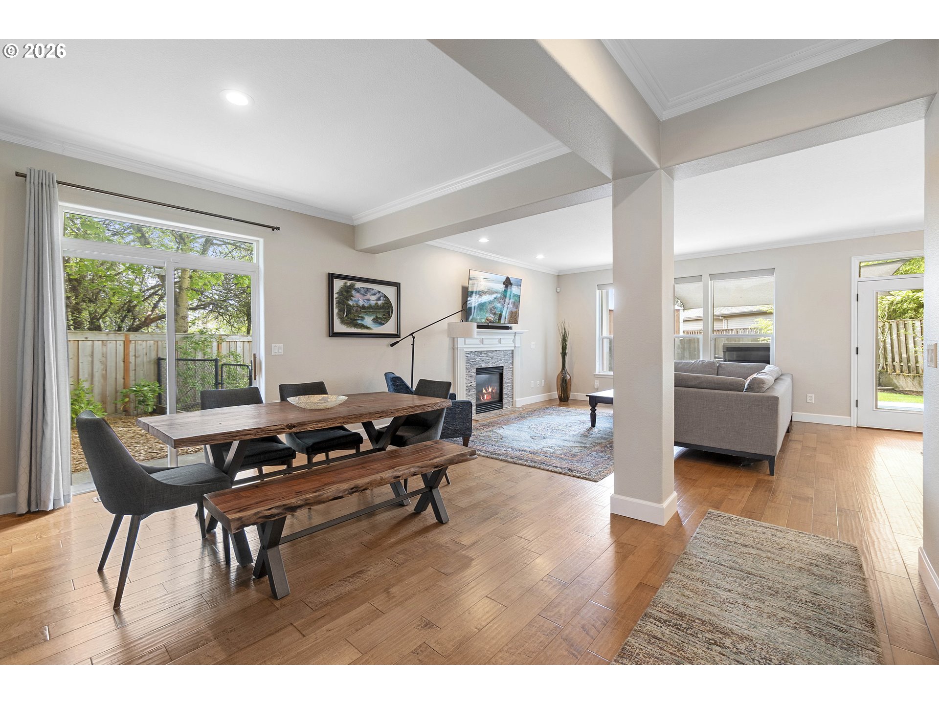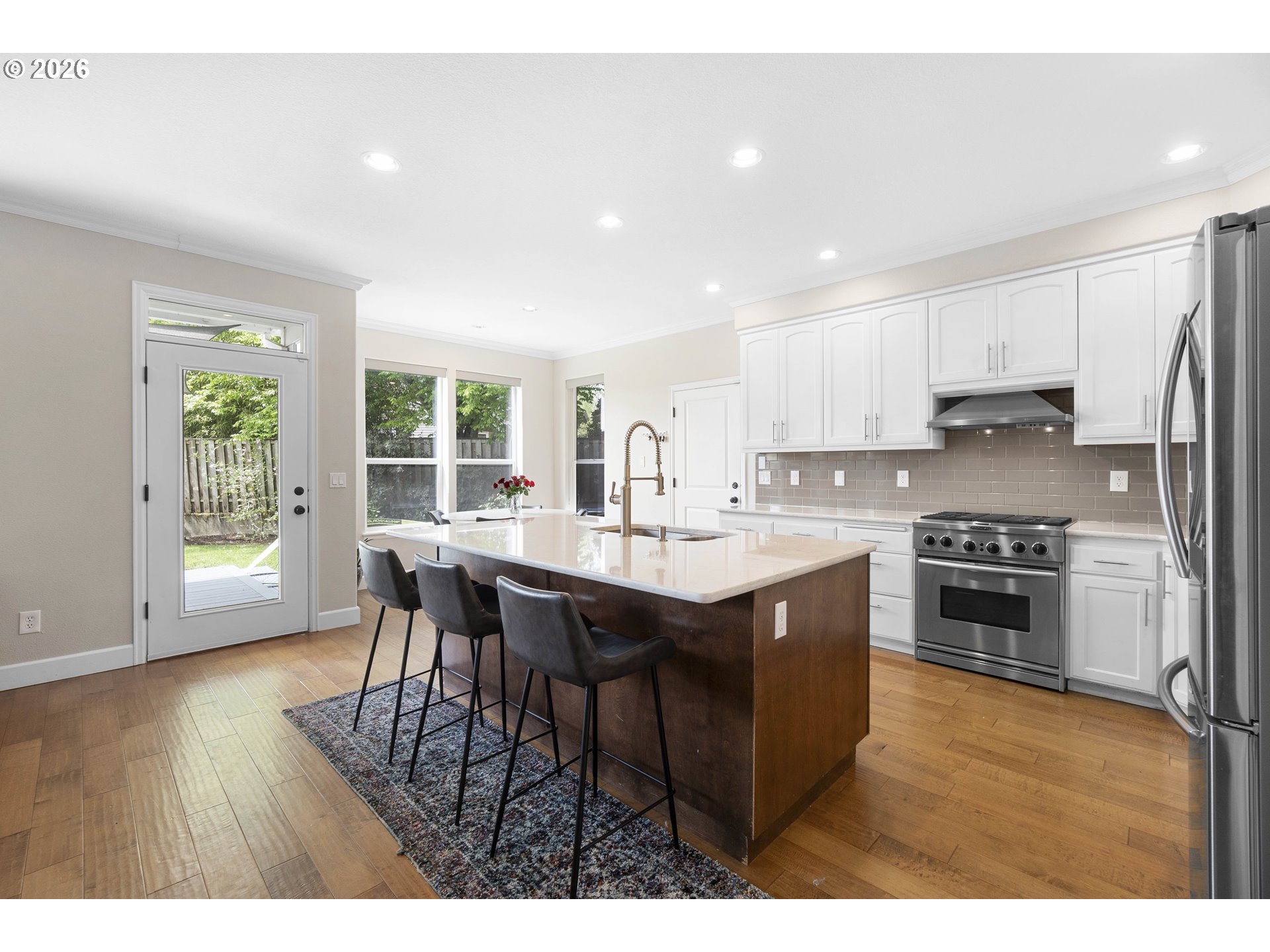 Beautifully maintained home in Orenco Station, set on a spacious and private lot. The gourmet kitchen includes stainless steel appliances, a gas range, quartz countertops, an island, and a breakfast nook. The inviting living room with a gas fireplace flows seamlessly into the dining area with sliding glass doors to the backyard. A versatile office or den on the main level features a Murphy bed and barn doors. Hardwood flooring extends throughout the main floor. Upstairs, the primary suite offers vaulted ceilings, spacious walk-in closet and a private ensuite bath. Three additional bedrooms and a generous bonus room, complete with its own balcony, provide flexible living space. Enjoy the private backyard with a deck, perfect for relaxing or entertaining. Furnace and a/c were updated in 2021, hot water heater in 2024. Paid off solar panels help with the electricity bill! Three car tandem garage. Ideally located near New Seasons, dining, shopping, parks, schools, and public transit, with easy access to all that Orenco Station has to offer.