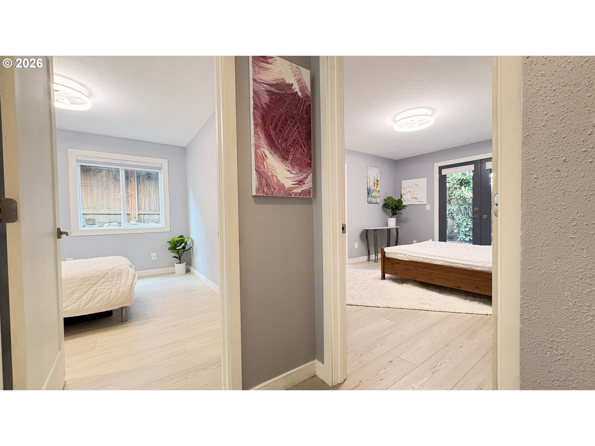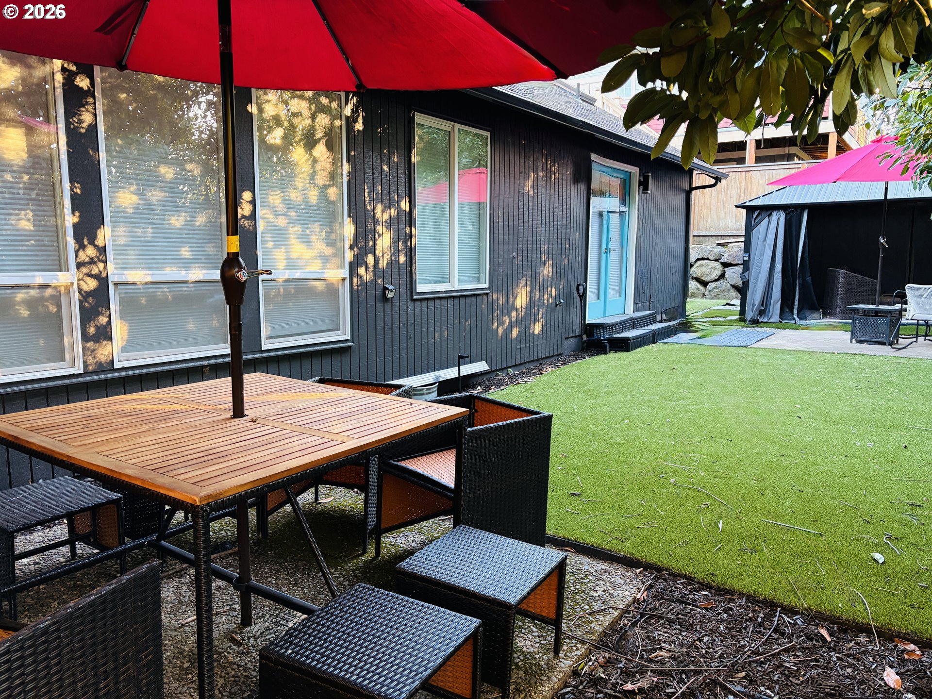 Fully furnished turn-key perfect home with all appliances included! Tucked away at the end of a private driveway of only three homes on an oversized lot with ample parking, this light and bright one-level contemporary home with mid-century modern vibes lives large. Completely renovated in 2025, including: floors throughout, bathrooms, kitchen with stainless steel appliances and quartz counters, doors and trim, HVAC system, gas fireplace, paint, and light fixtures inside and out! The peaceful primary suite with a walk-in closet has French Doors that lead to the fully fenced backyard, which features low-maintenance artificial turf and a huge gazebo for year-round entertaining. Possibilities abound with the large attic space, featuring a pull-down ladder, and an oversized, functional outbuilding! Hurry - this gem is ready to be your dream home with low Washington County taxes and a Portland address in an idyllic setting close to Garden Home Trader Joe's, parks, and wonderful schools!