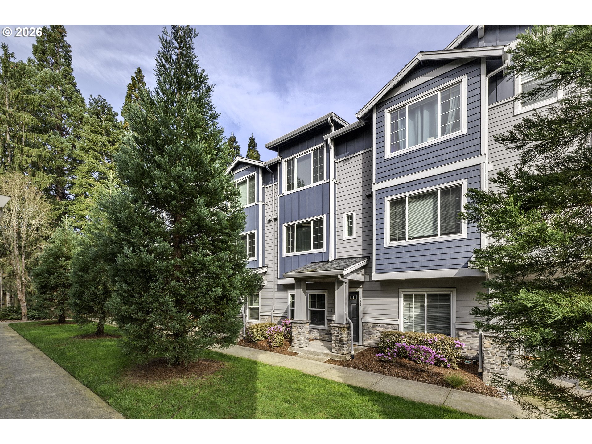 Fresh paint, brand new carpet, make this bright three bedroom condo one of the most competitive opportunities in Hillsboro near Intel, parks, and the Portland Metro tech corridor. Ideally situated within the community away from busy streets, yet conveniently close to the MAX station for easy commuting. The home offers open living spaces, a balcony overlooking greenspace, and access to community amenities including a pool, fitness center, clubhouse, and children’s playground in a park like setting.This well maintained home blends comfort, functionality, and natural light throughout. The fully equipped kitchen features a pantry and opens seamlessly to the dining area, living room, and balcony, creating an inviting and functional layout. HOA covers water, sewer, garbage, high speed internet, pool, fitness room, exterior maintenance, and community amenities, helping simplify monthly living expenses. A newer washer and dryer are conveniently located in the upstairs hallway near the bedrooms. The light and bright layout features high ceilings on the main level and vaulted or high ceilings in the bedrooms. This thoughtfully designed three bedroom, two and a half bathroom home includes a one car garage plus an additional reserved parking space. Explore the comfort, convenience, and value this Hillsboro condo has to offer.