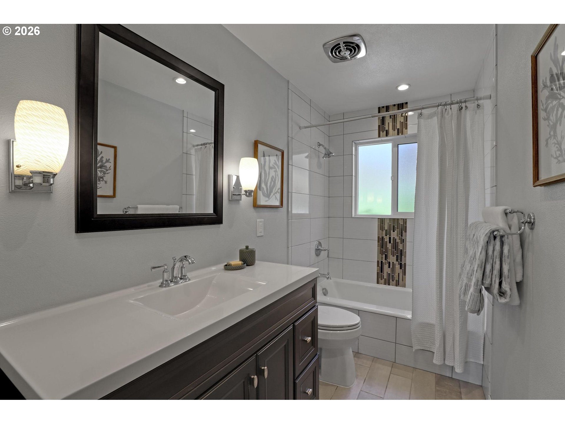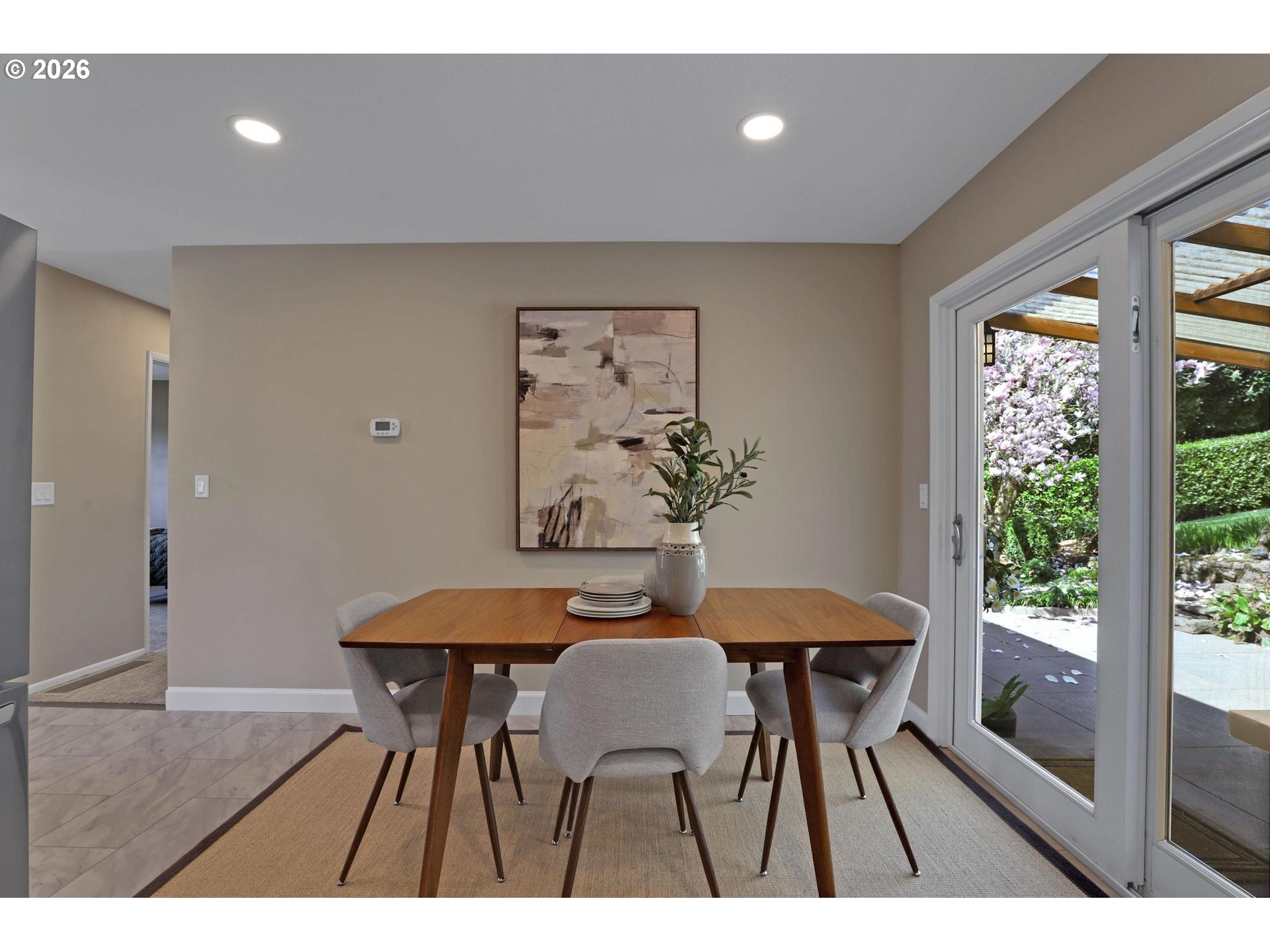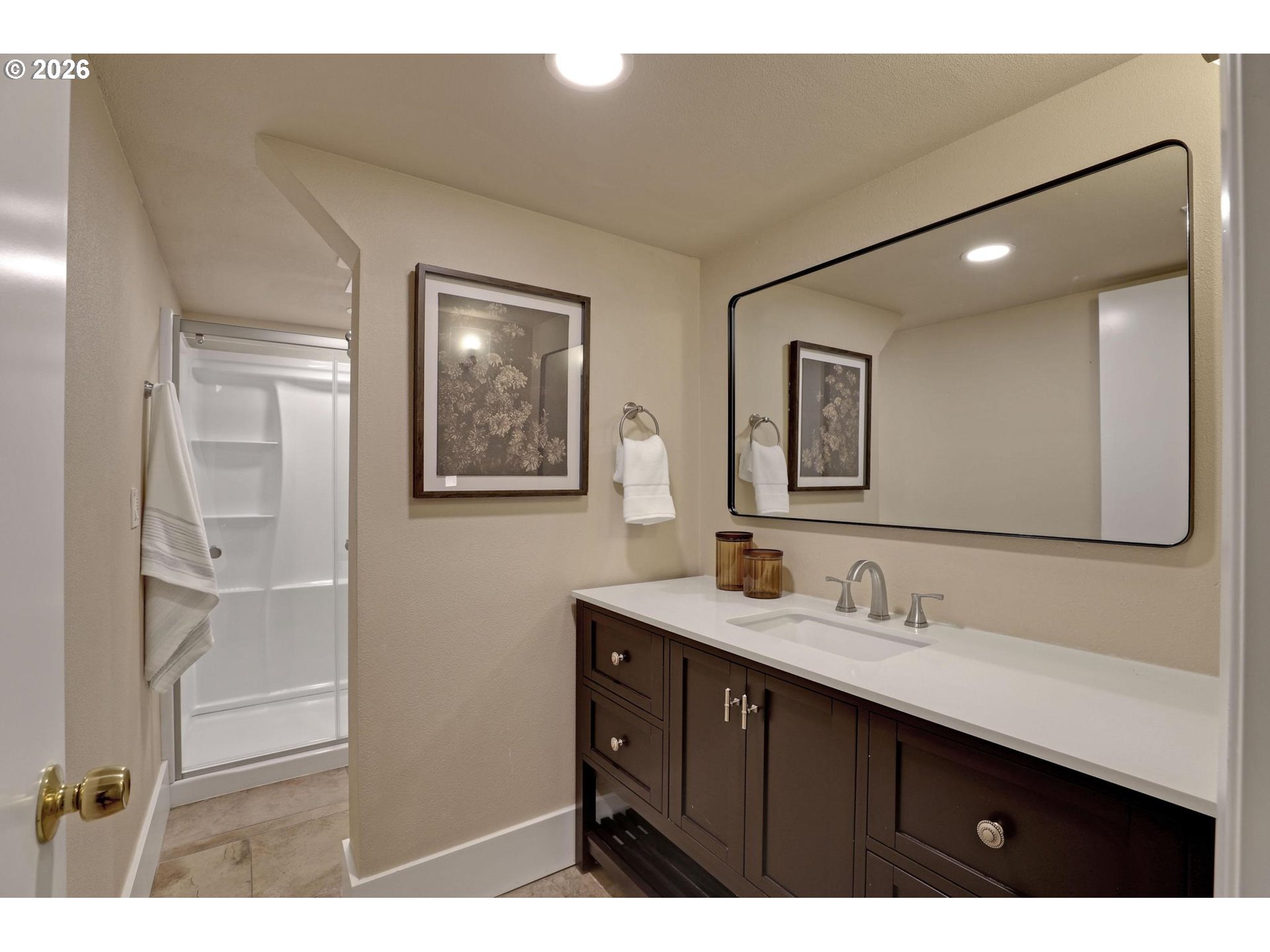 Close-in Washington County fully remodeled home with convenient access to Hwy 26, downtown Portland, and the Zoo, offering a comfortable balance of accessibility and privacy. Set on a 0.28-acre lot, the backyard is a standout—private, quiet, and surrounded by mature landscaping with established plantings and garden space. The interior has been thoughtfully renovated and offers a turnkey 3 bed, 3 bath layout with a functional floor plan, plenty of storage throughout, and an oversized 2-car garage. The main level includes a remodeled kitchen (2024) with slab quartz countertops, LG stainless steel appliances, and an eating area with direct access to the patio and beautiful backyard. The living and dining spaces are open and filled with natural light. The primary suite includes a remodeled bathroom featuring a walk-in tiled shower. Two additional bedrooms are well-sized, and a hall bathroom completes the main level. The lower level adds flexibility with a large family room, full bathroom, and a spacious utility/workshop area with built-in storage. Recent improvements include a new composite roof (2025) & electrical panel (2024), making this a move-in ready home. Schools: Bridlemile, West Sylvan, Lincoln