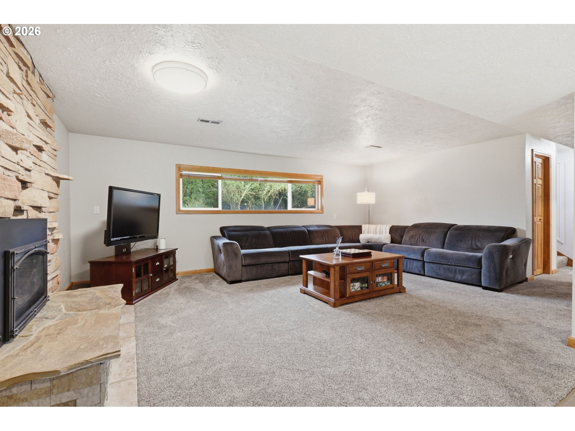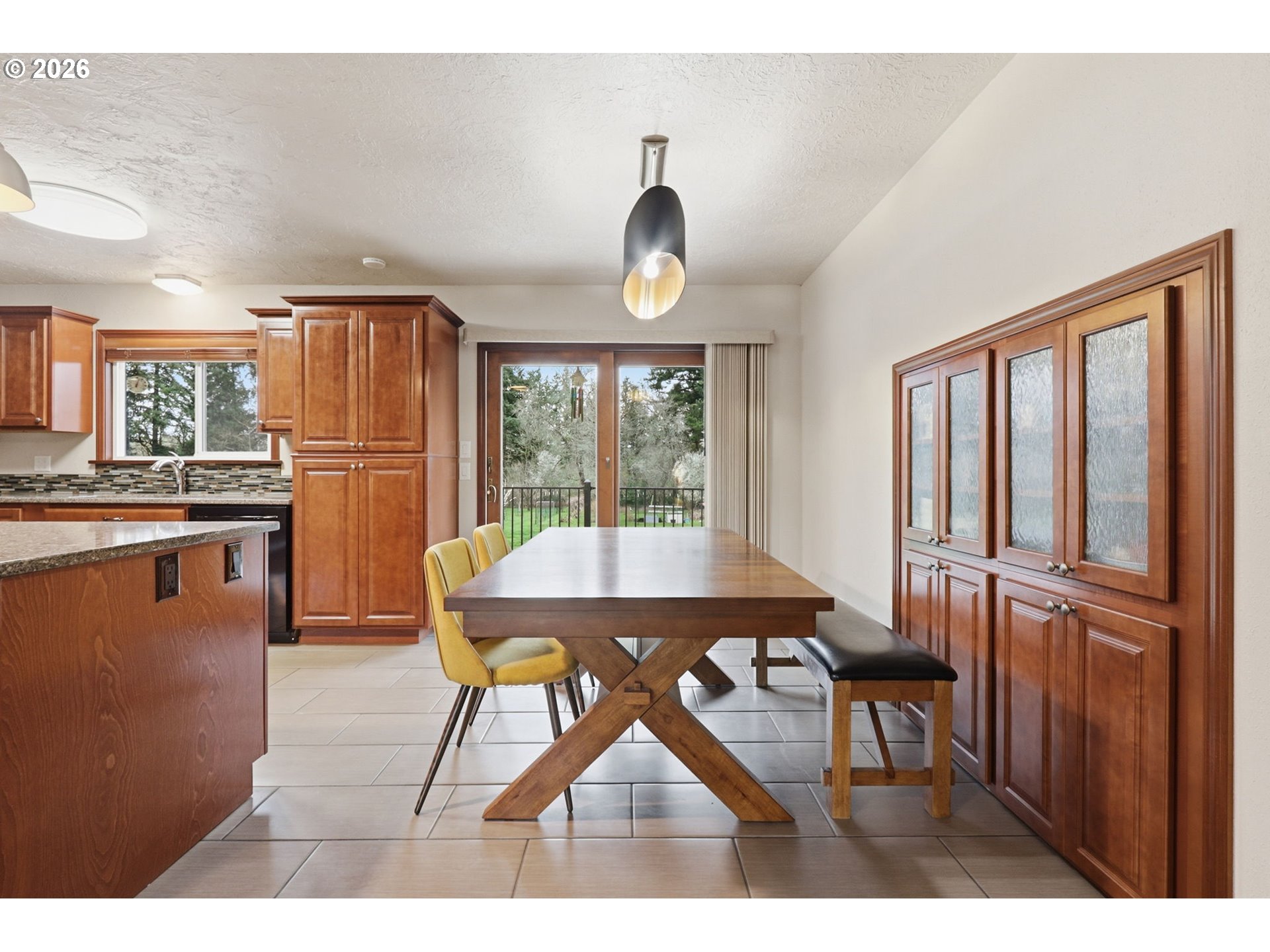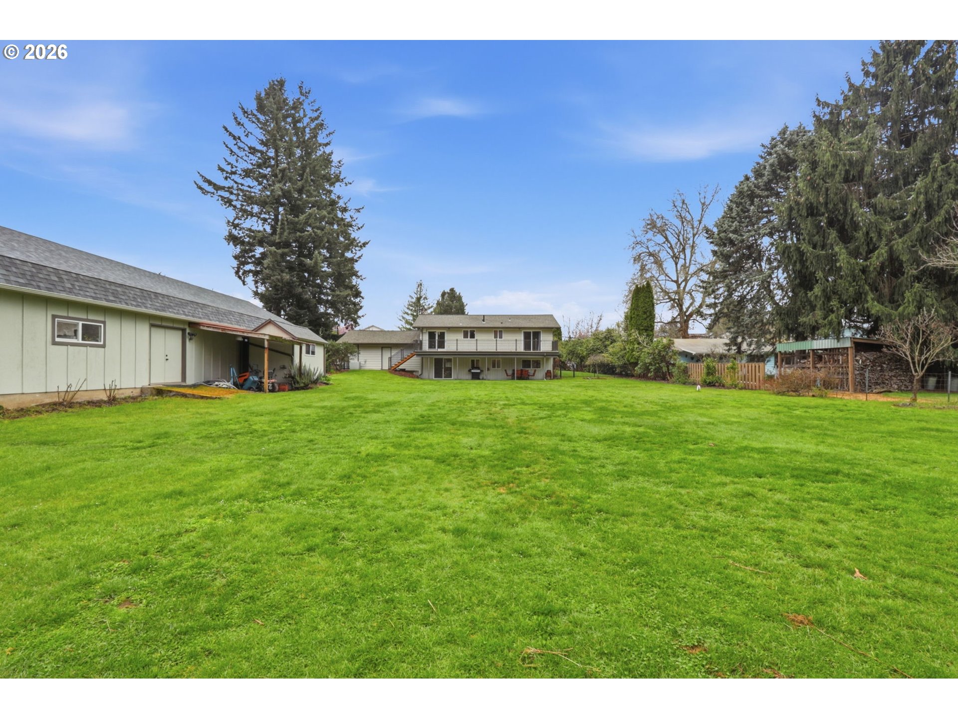 This beautifully updated split-level residence is a true Mid-Century Modern home nestled on a sprawling lot of just under an acre, offering a perfect balance of modern comfort and exceptional utility. The heart of the home is the stunning kitchen, which features a large island, sleek quartz countertops, and abundant storage with built-in cabinetry that flows into a dining area with a slider to the back deck. Notably, the kitchen is equipped for either a gas or electric stove, providing versatile options for any chef. In the main living room, a large bay window fills the space with natural light, highlighting the impressive floor-to-ceiling brick fireplace with a gas insert. The primary suite serves as a true retreat, boasting its own private slider to the deck and a walk-in closet, while the updated main bathroom provides a spa-like experience with dual sinks and a beautiful new walk-in tiled shower. The lower level expands your living options with a spacious family room anchored by a second floor-to-ceiling rock fireplace with a gas insert and an adjoining flex space with a tile floor. Practicality is a priority here, evidenced by the large utility room equipped with a sink and laundry, as well as the attached garage. For the hobbyist or professional, the property features a massive 1,200 sq. ft. shop complete with a cement floor, 220V power, and a gas furnace for year-round comfort. Outdoors, the huge backyard is a gardener’s paradise featuring 20 blueberry bushes, 80' of mature grape vines, 60' of mature raspberries, a huge fig tree, and multiple fruit trees. With these established plantings and additional dedicated garden space, this property is a rare find for those seeking both room to breathe and a place to create. [Home Energy Score = 5. HES Report at https://rpt.greenbuildingregistry.com/hes/OR10245438]