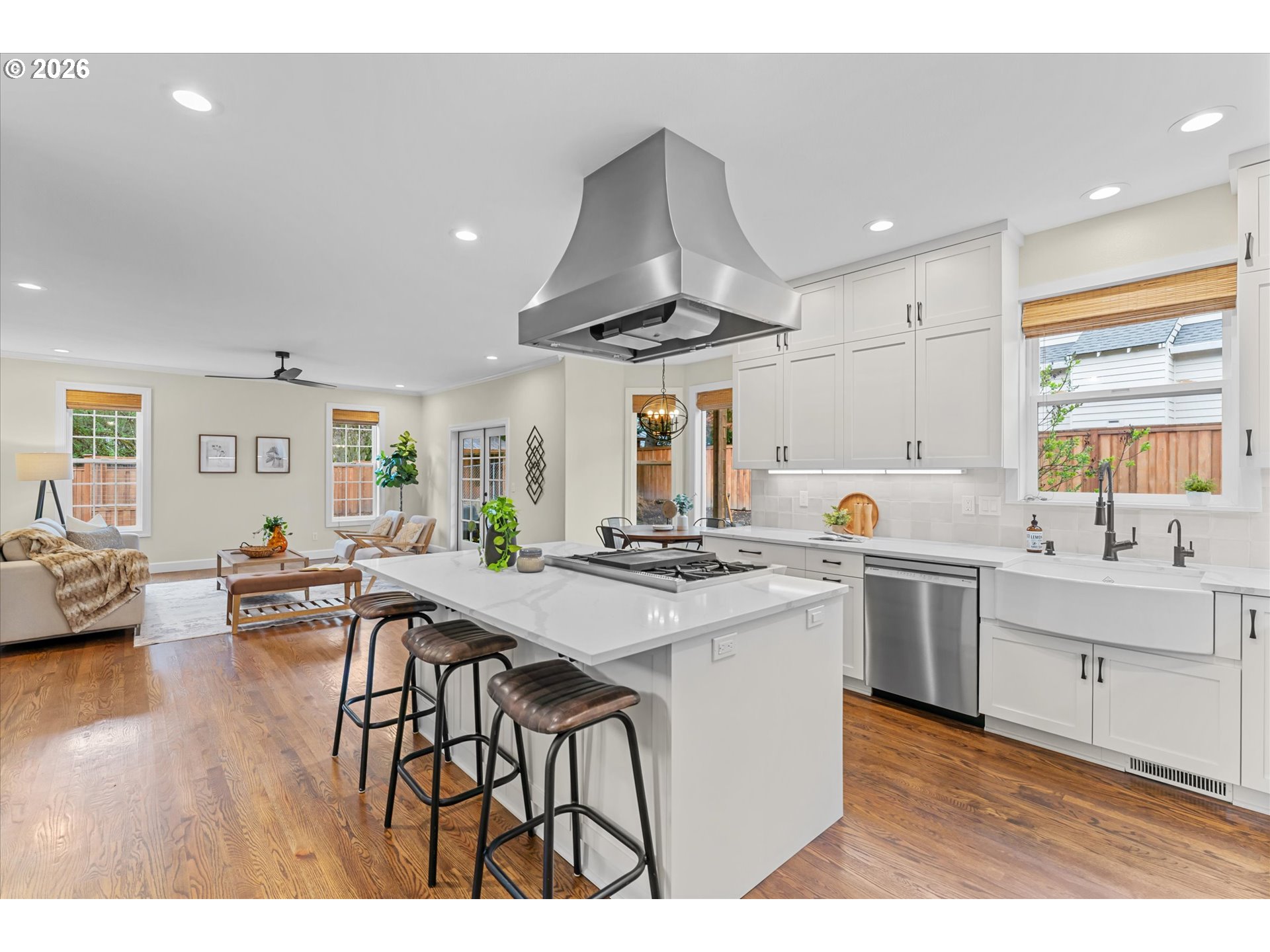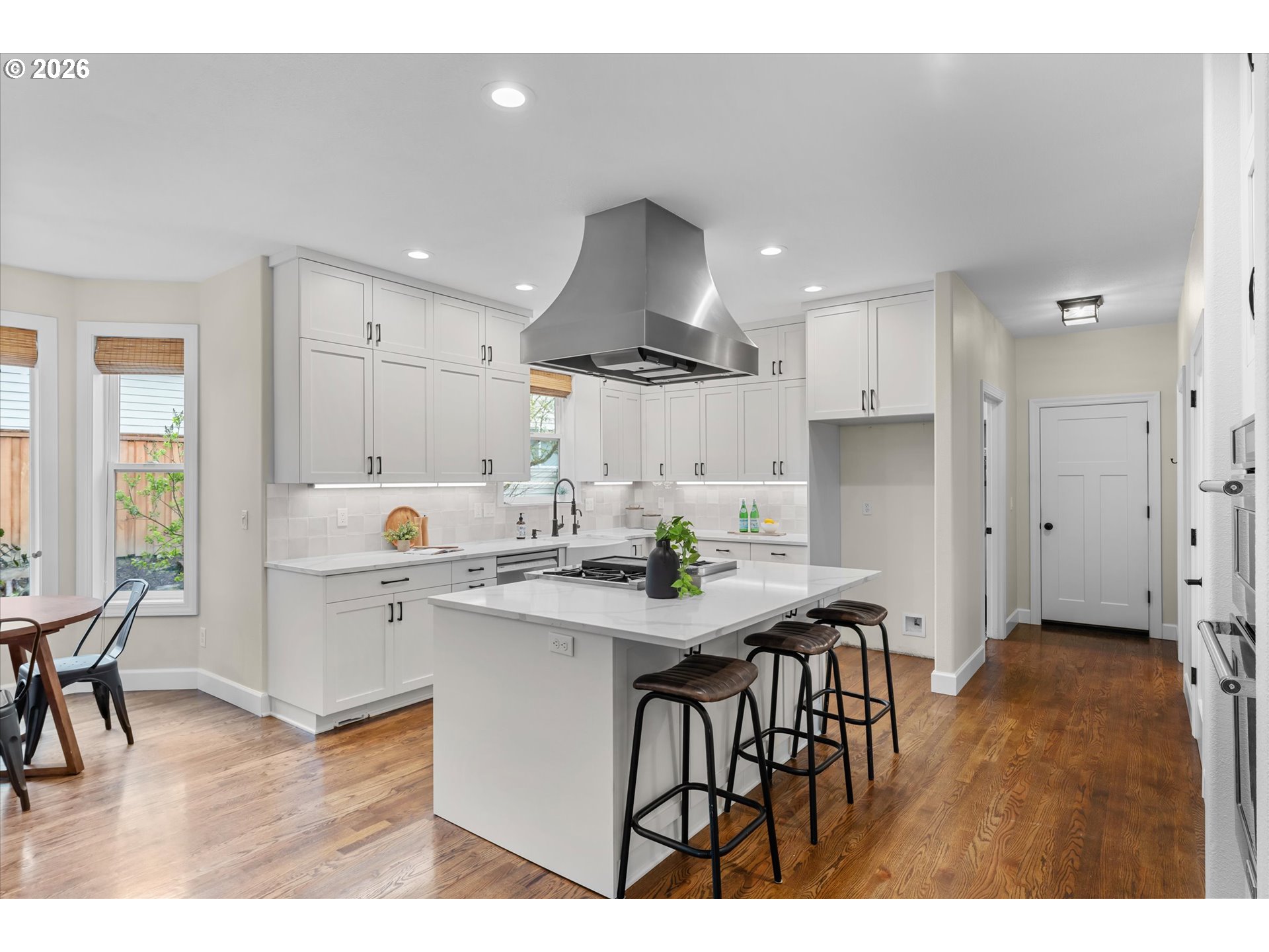 Welcome to this beautifully updated 4 bedroom plus bonus room farmhouse-style home offering timeless character and thoughtful updates throughout and space for RV parking. Set on a spacious corner lot in Hillsboro, this home blends classic charm with modern comfort. Step inside to discover refreshed spaces in every room, highlighted by rich red oak hardwood floors with a warm brown stain, fresh interior paint, and a functional layout designed for everyday living. The fully renovated kitchen serves as the heart of the home, featuring modern finishes and updated fixtures, while both remodeled bathrooms provide stylish and comfortable spaces to start and end your day. Enjoy a touch of daily luxury with heated tile floors in the primary bath. Recent exterior improvements add peace of mind and curb appeal, including a new roof and gutters installed in 2024. Outdoor living shines here, beginning with the inviting west-facing front porch, the perfect place to enjoy evening sunsets from the porch swing. The backyard offers space to garden, relax, and entertain. A raised walk-in garden bed with drip irrigation makes it easy to grow your favorite herbs and vegetables. Located in Hillsboro with convenient access to local parks, shopping, dining, and commuter routes, this home offers the opportunity to enjoy comfortable living with thoughtfully updated spaces inside and out.