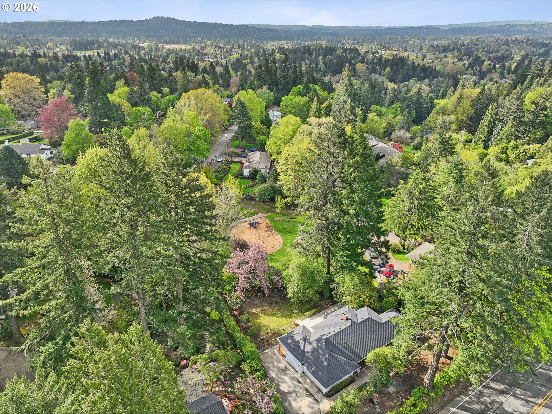 Set on a larger, private lot in the desirable West Slope Raleigh hills, this quintessential 1940s Mid-Century Modern home showcases the timeless quality and character that define the era. Known for their solid construction, homes of this period offer enduring craftsmanship paired with thoughtful design elements. Inside, you’ll find handsome wood paneling, beautifully maintained hardwood floors, expansive windows that bring in natural light, and generously sized rooms complemented by higher ceilings. The formal living and dining rooms provide an elegant setting while overlooking the lush garden and spacious grounds. The newly remodeled kitchen is exceptionally large and designed with both everyday living and entertaining in mind. It features top-of-the-line appliances, new roof, ample workspace, and a layout that invites gathering. The primary suite offers a peaceful retreat with direct access to the garden, along with a newly updated bathroom that includes a spacious walk-in shower and dual-sink vanity. Additional bedrooms are well-sized and supported by a fully remodeled bathroom featuring an oversized soaking tub.The lower level reflects classic 1940s architecture and offers incredible versatility. A standout feature is the expansive game or party room, complete with a vintage bar—perfect for entertaining. This level also provides direct access to the patio, lawn, and garden. A fourth bedroom or flexible hobby space is available here, along with abundant storage and a potential wine cellar. Conveniently located near dining, shopping, schools, and medical facilities, the home also offers easy access to Highway 26—providing a quick commute east into the city or west toward the Sunset Corridor.
