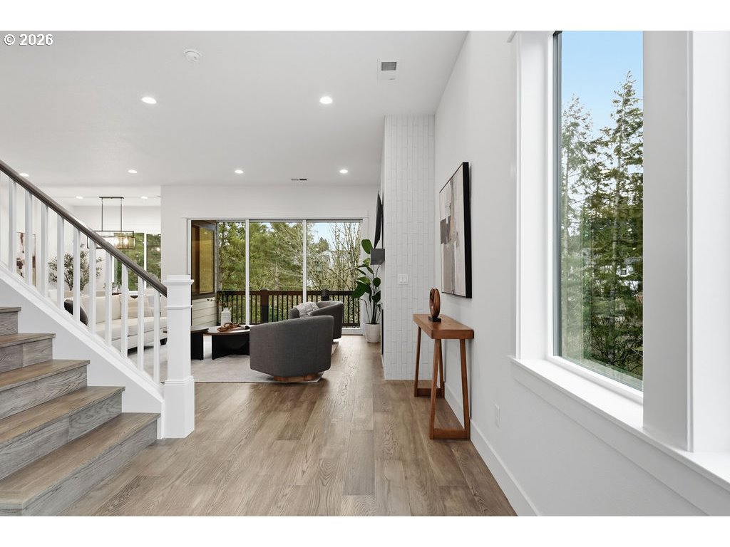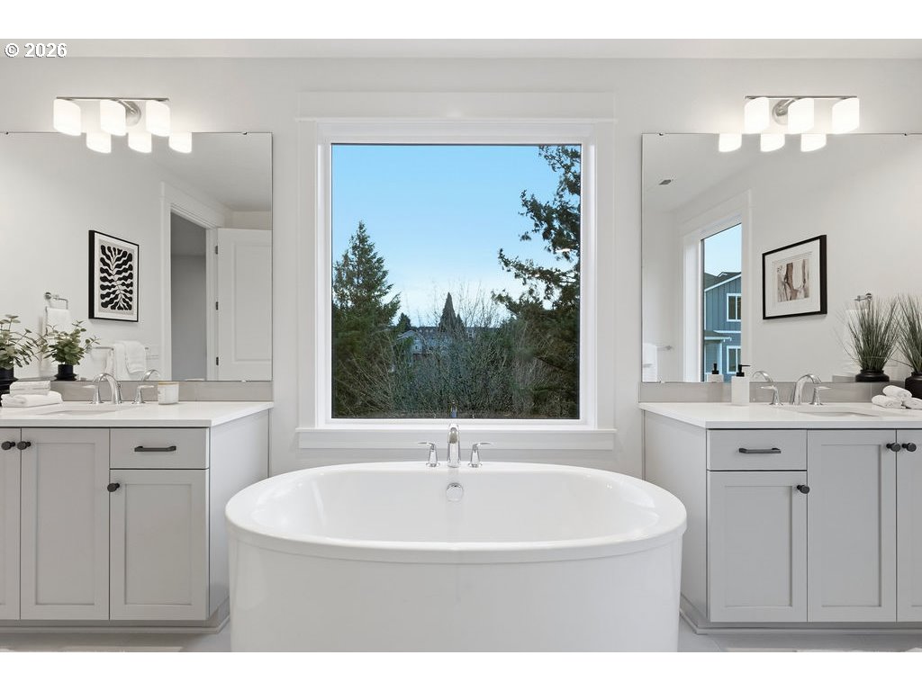 Open house 03/01 1-3pm. BEST LOCATION IN BETHANY!! Bethany Retreat is a stunning 2024 Toll Brothers home tucked on a quiet private road, backing to lush green space and scenic hiking trails. Situated on a premium corner lot, this stunning residence offers 6 bedrooms and 4 full bathrooms, including a desirable main-level and lower-level bedroom with full bathroom on both level, perfect for multi-generational living or extended stays. Over $180,000 in upgrades elevate the home with hardwood flooring, stacked designer kitchen cabinetry, dual-zoned HVAC system, fully wrapped window trim on the main and upper levels, dramatic floor-to-ceiling tile fireplace, and upgraded 8-foot doors across all three levels.Expansive 10’–16’ bypass sliding glass doors open to a spacious deck featuring an exterior gas-burning fireplace, creating seamless indoor-outdoor living. The fully fenced backyard backs directly to protected green space and trail access, offering privacy and a serene natural setting. An additional private front yard provides even more space for outdoor entertaining and gatherings. Comfort meets efficiency with zoned, damper-controlled heating (Forced Air), Central Air cooling, and a tankless water heater.Located just one block from top-rated Sato Elementary School and within the highly sought-after Beaverton School District, schools include Stoller Middle School and Westview High School. Additional features include an attached garage and low HOA dues of just $84/month. This exceptional home blends luxury, functionality, and location — truly a rare gem in Bethany. CHECK OUT THE 3D TOUR!