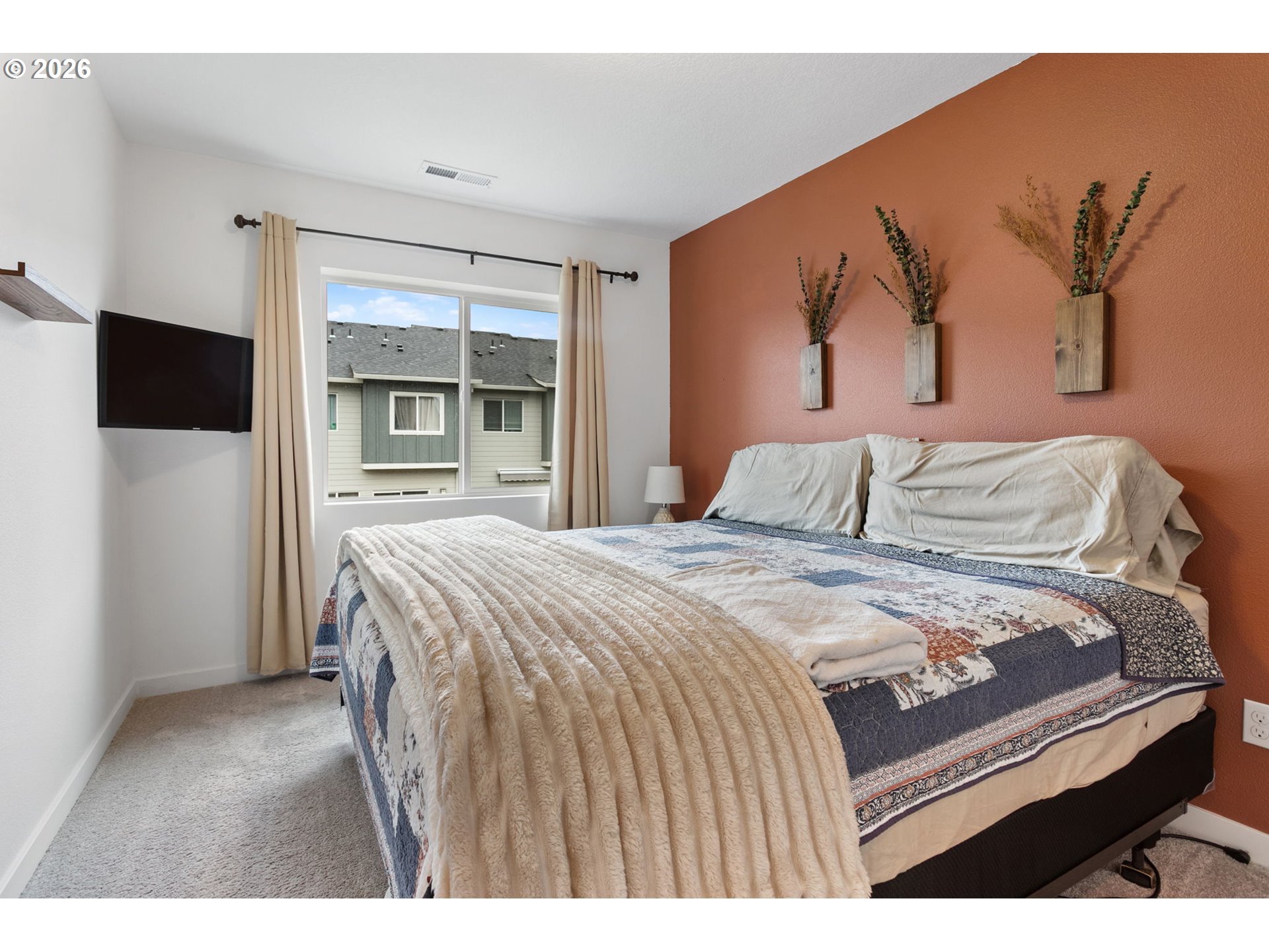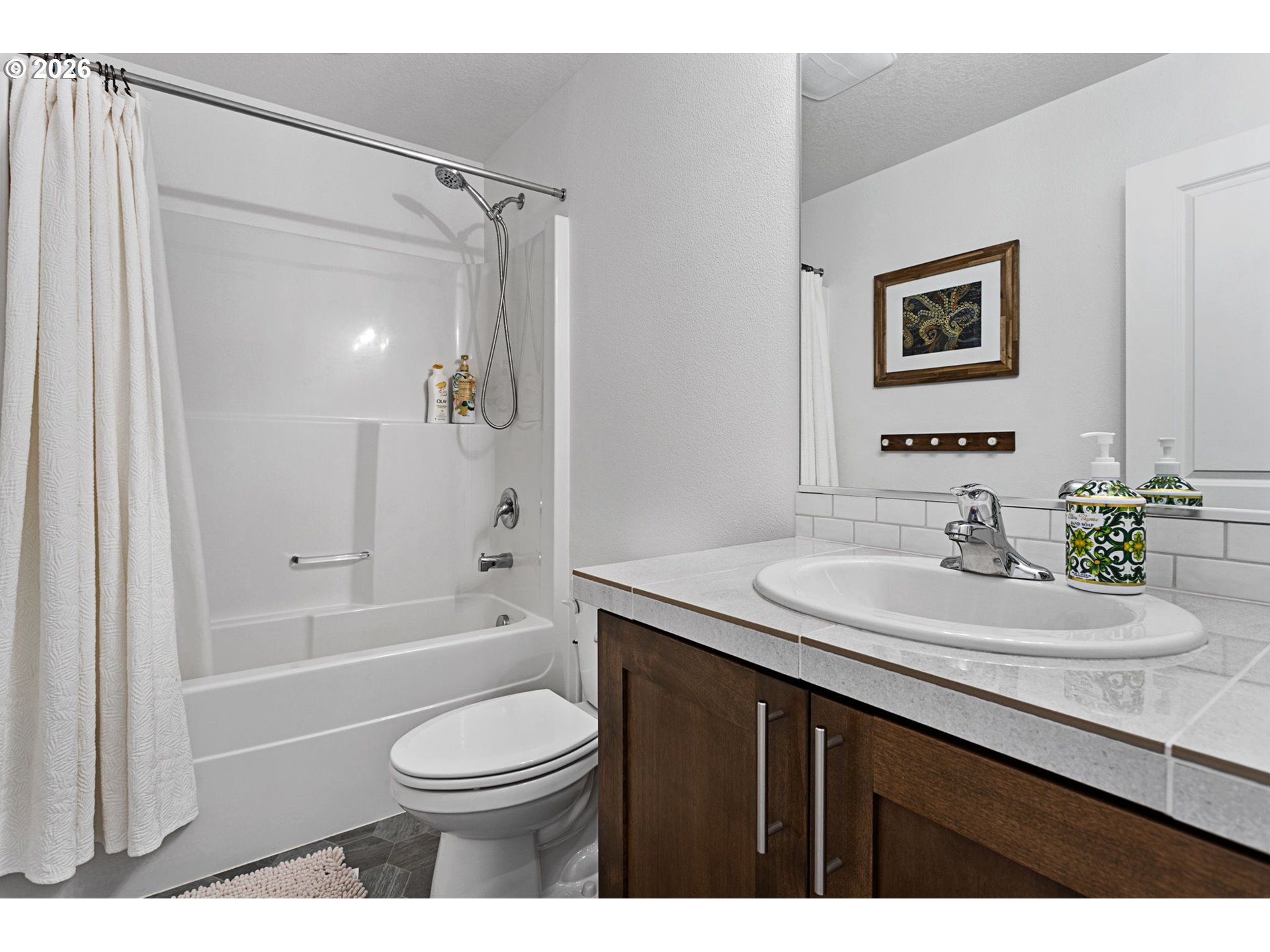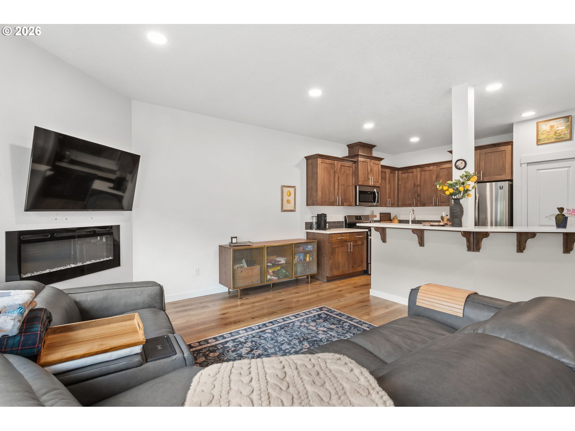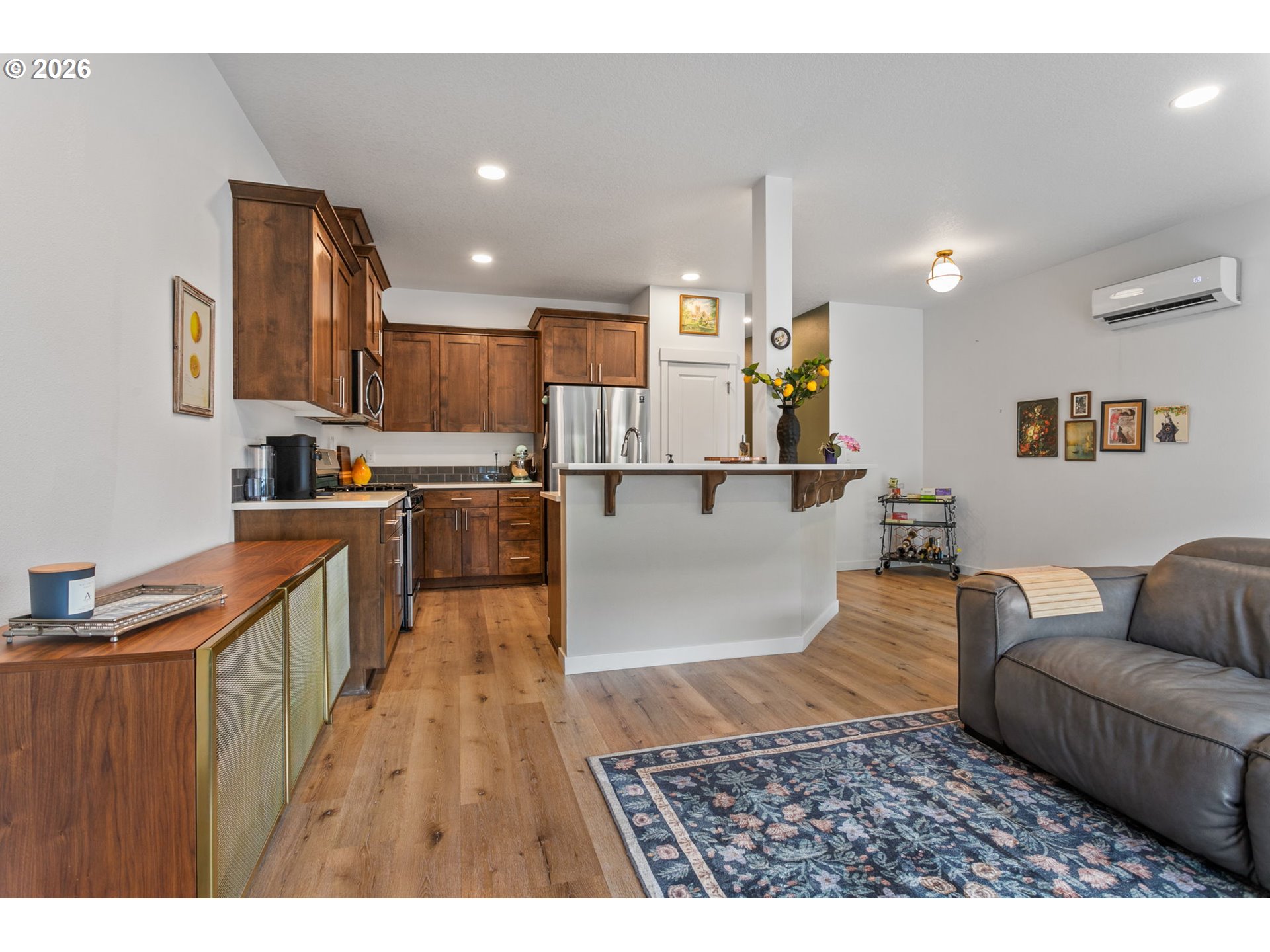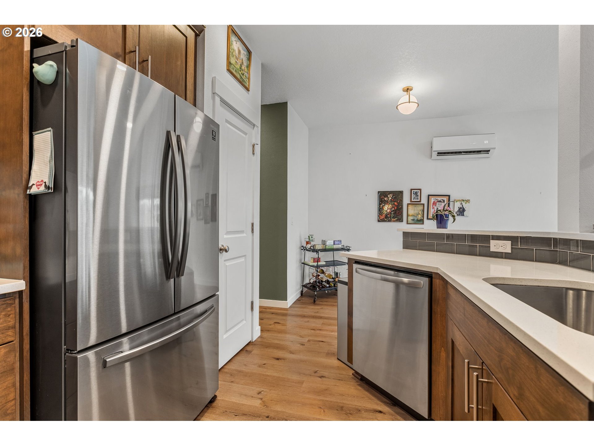 Welcome to this beautifully upgraded end-unit townhome offering comfort, style, and low-maintenance living in a peaceful setting near scenic Parks, shopping and walking trails. This 3-bedroom, 2.5-bath home features a thoughtfully designed layout with modern finishes throughout. The kitchen is equipped with sleek slab quartz countertops, stainless steel appliances, and both gas and electric stove options—perfect for any home chef. A full appliance package is included, with refrigerator, stove, washer, and dryer all staying. Enjoy upgraded luxury vinyl plank flooring, a tankless water heater, and a recently serviced mini-split system providing efficient heating and cooling year-round. Upstairs, the spacious primary suite impresses with vaulted ceilings, a custom walk-in closet by Portland Closet Company, and dual sinks. Additional highlights include a dedicated, updated laundry room and convenient attic storage. Step outside to a fully customized backyard designed for relaxation and ease, complete with turf, an integrated drainage system, landscaping, and a concrete patio—ideal for entertaining or unwinding with minimal upkeep. A storage shed is also included. This end unit townhome offers added privacy, complemented by a quiet neighboring setting. Located near beautiful Mariposa Park with large turf playground, soccer field and basketball court, this property combines natural surroundings with modern living.