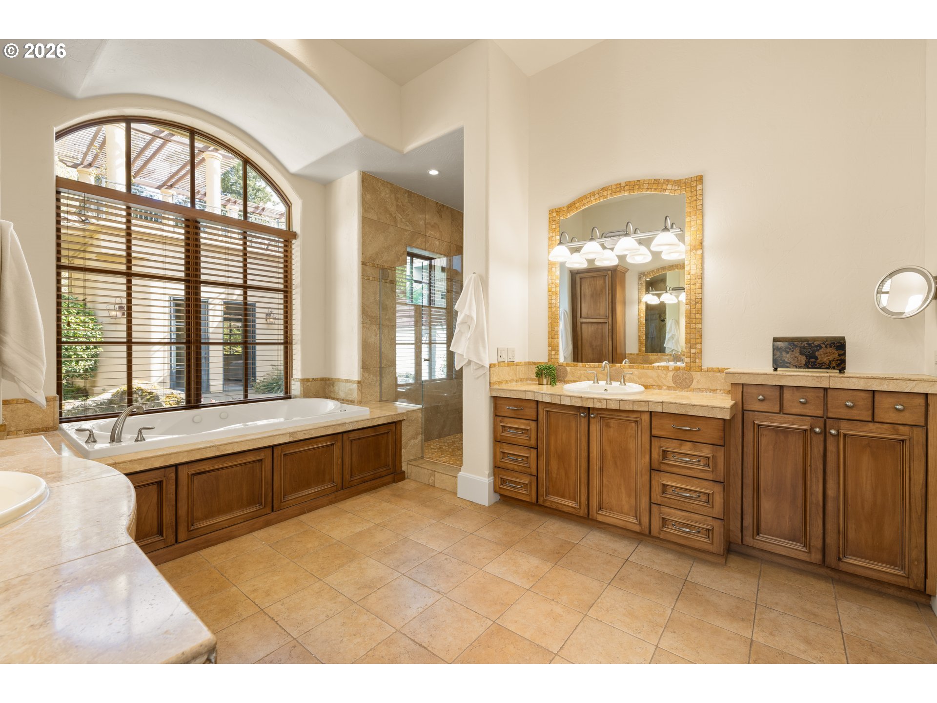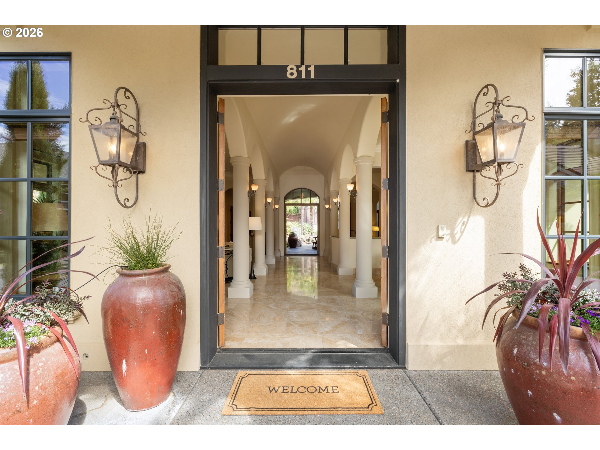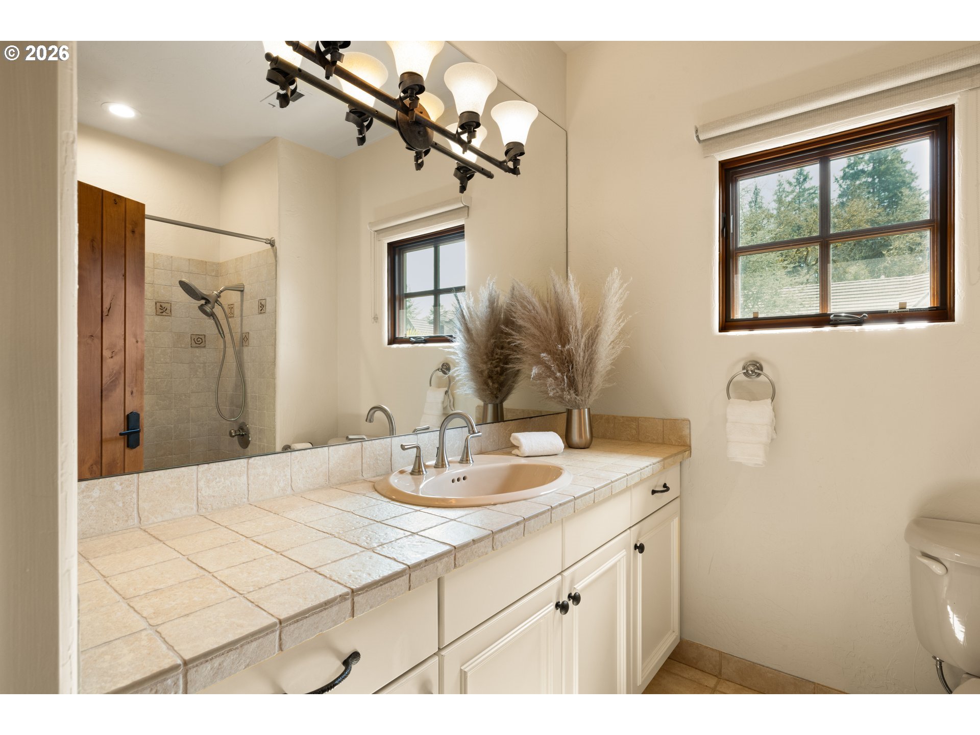 This former Street of Dreams home, known as Casa Dolce, blends casual elegance with a Mediterranean flair. The open concept first floor features tall ceilings (approx 12’),arches, travertine tile floors, solid 8’ alder wood doors, and a large primary suite withfireplace. Four sets of French doors lead to a courtyard with a pond and water feature. Upstairs are three sets of French doors leading to a roof terrace connected to the courtyard by a spiral staircase. Unique architectural design is combined with thefunctionality of solar panels, Sub-Zero and Wolf appliances, radiant floor heat throughout the first floor, Flo-by-Moen water monitoring system, dual HVAC systems, an advanced Honeywell air purification system for each floor, and a Level 2 EV charger inthe three-car garage. A separate en-suite casita is accessible either through the courtyard or through a gate from the large fenced-in side yard. The fully landscaped yard, including palm trees, yuccas, roses, and lavender is irrigated throughout. [Home Energy Score = 10. HES Report at https://rpt.greenbuildingregistry.com/hes/OR10177745]
