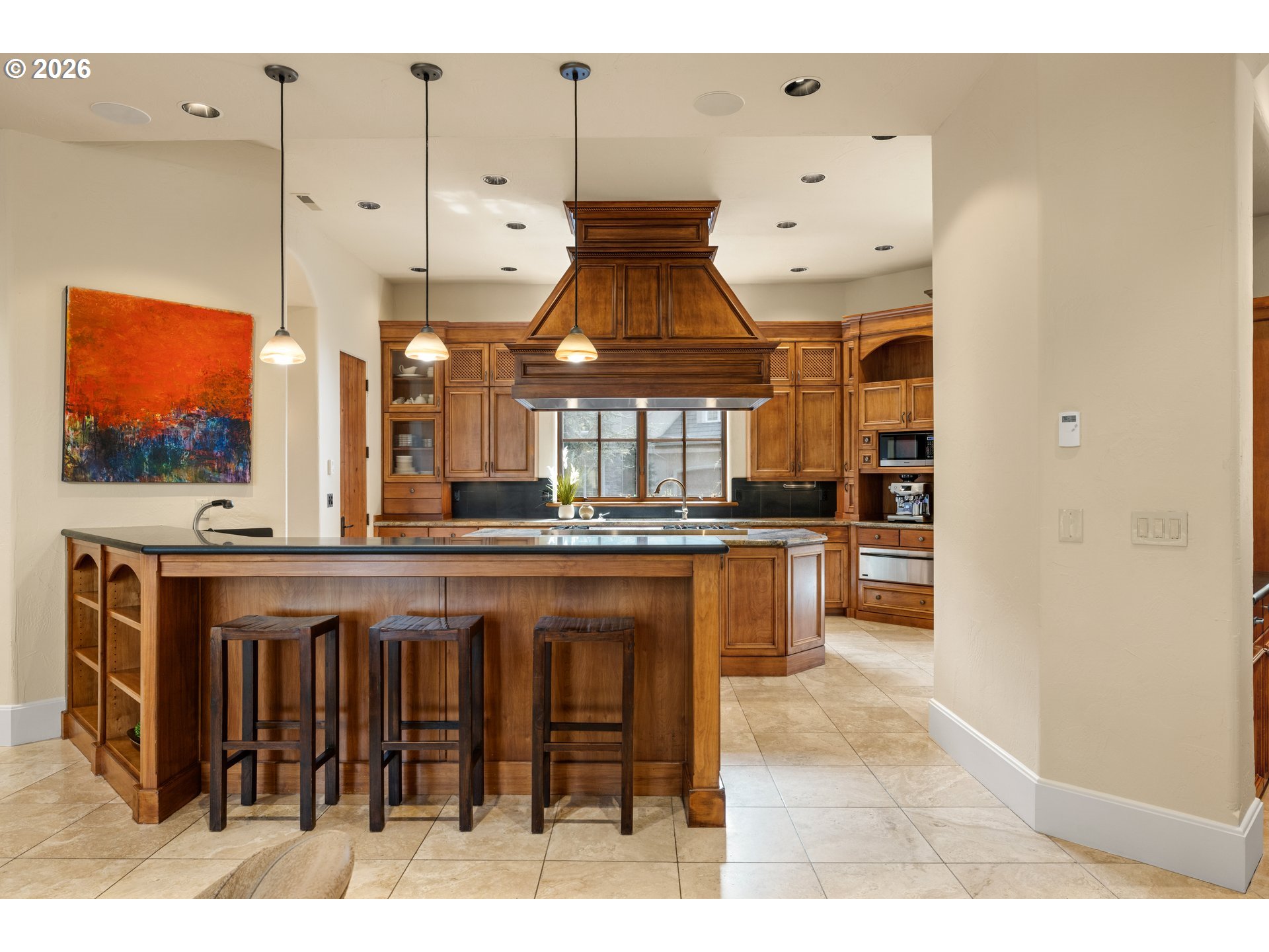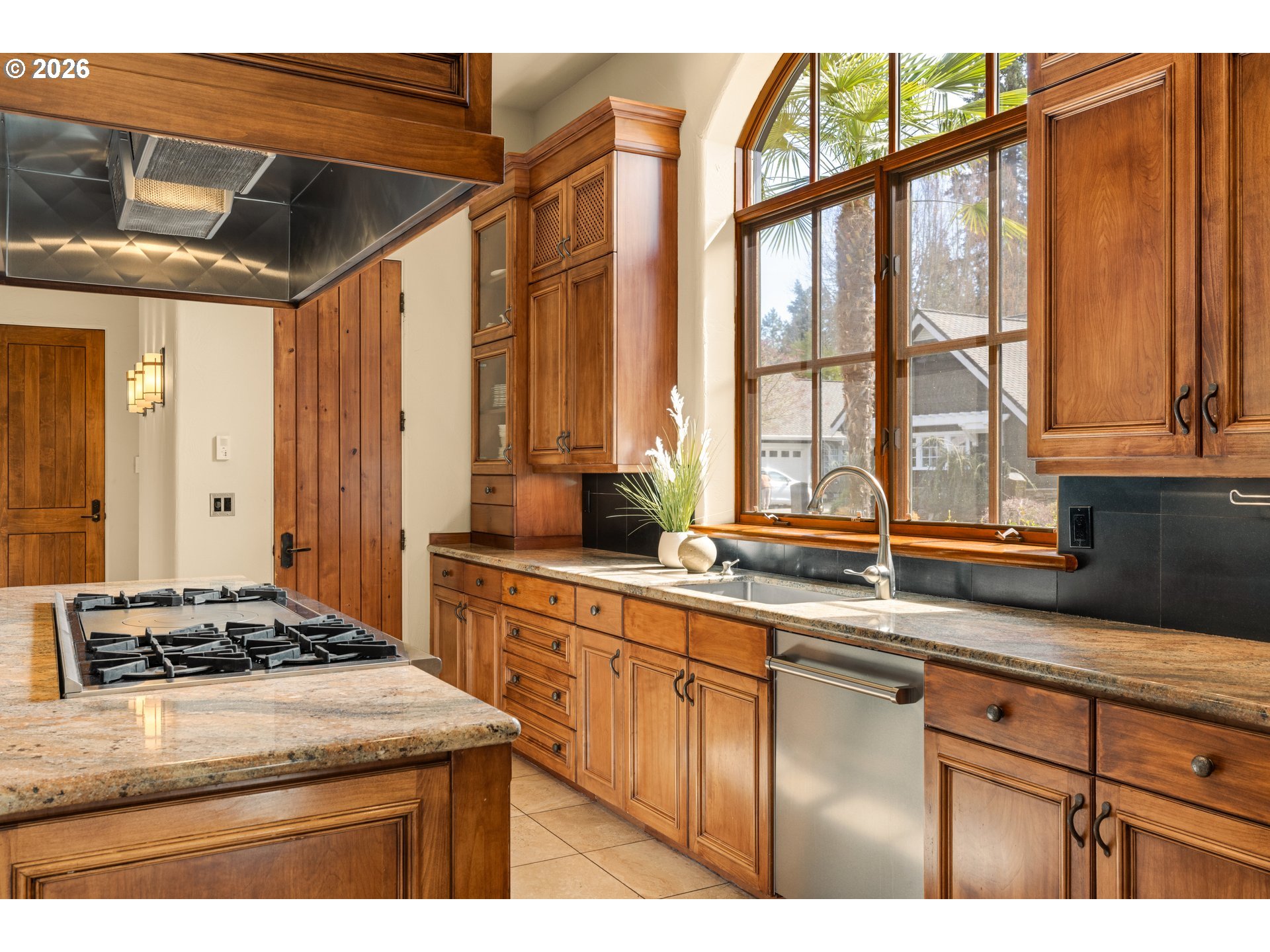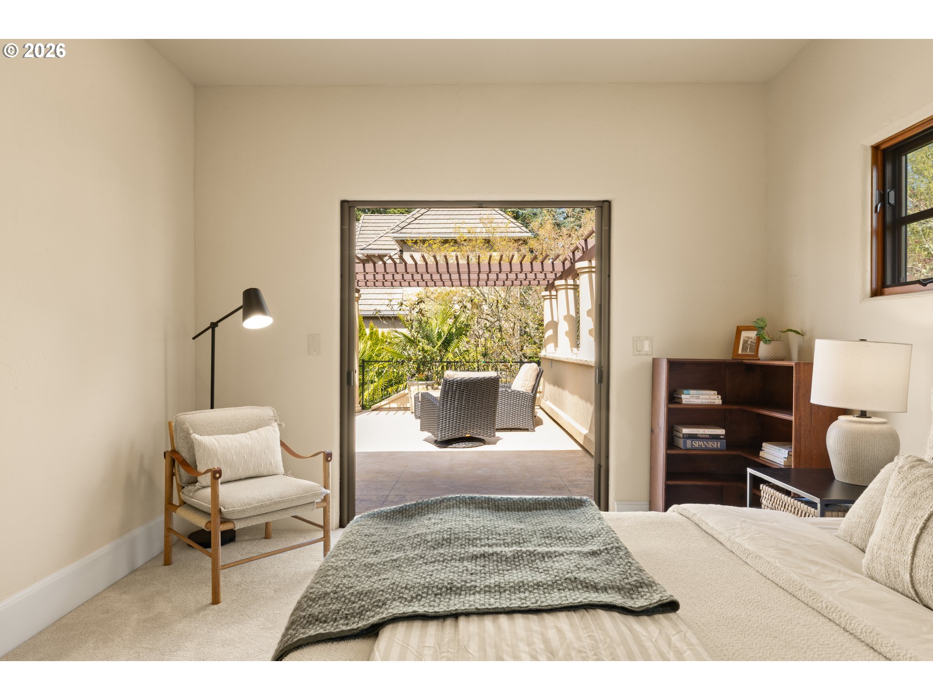 This former Street of Dreams home, known as Casa Dolce, blends casual elegance with a Mediterranean flair. The open concept first floor features tall ceilings (approx 12’),arches, travertine tile floors, solid 8’ alder wood doors, and a large primary suite withfireplace. Four sets of French doors lead to a courtyard with a pond and water feature. Upstairs are three sets of French doors leading to a roof terrace connected to the courtyard by a spiral staircase. Unique architectural design is combined with thefunctionality of solar panels, Sub-Zero and Wolf appliances, radiant floor heat throughout the first floor, Flo-by-Moen water monitoring system, dual HVAC systems, an advanced Honeywell air purification system for each floor, and a Level 2 EV charger inthe three-car garage. A separate en-suite casita is accessible either through the courtyard or through a gate from the large fenced-in side yard. The fully landscaped yard, including palm trees, yuccas, roses, and lavender is irrigated throughout. [Home Energy Score = 10. HES Report at https://rpt.greenbuildingregistry.com/hes/OR10177745]