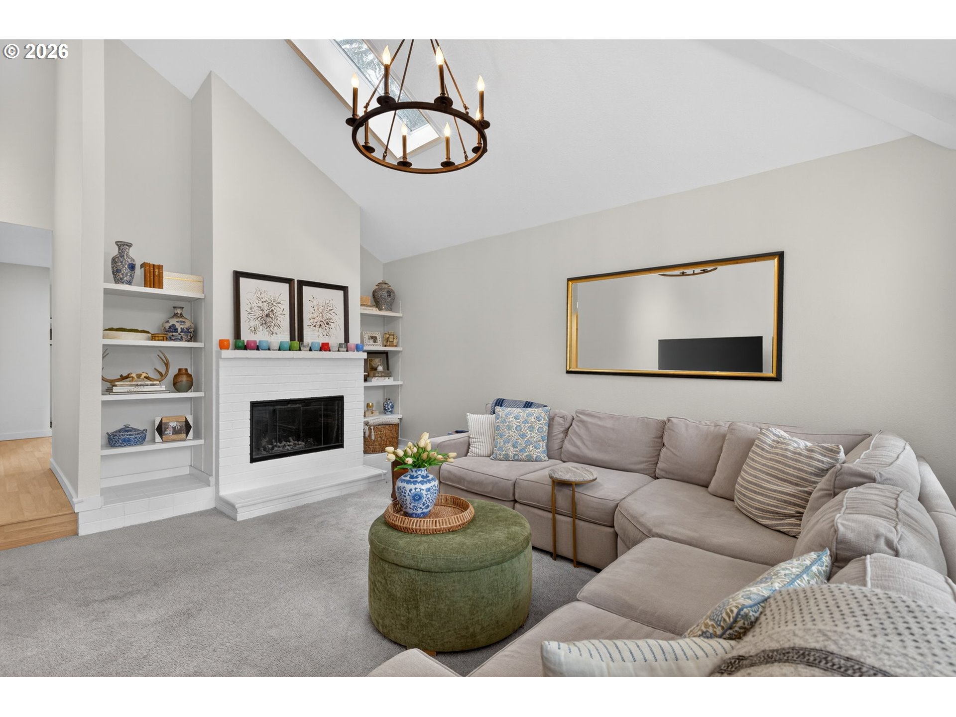 GarageDoorOpener, HardwoodFloors, HighCeilings, Laundry, Skylight, WalltoWallCarpet, WasherDryer, WoodFloor