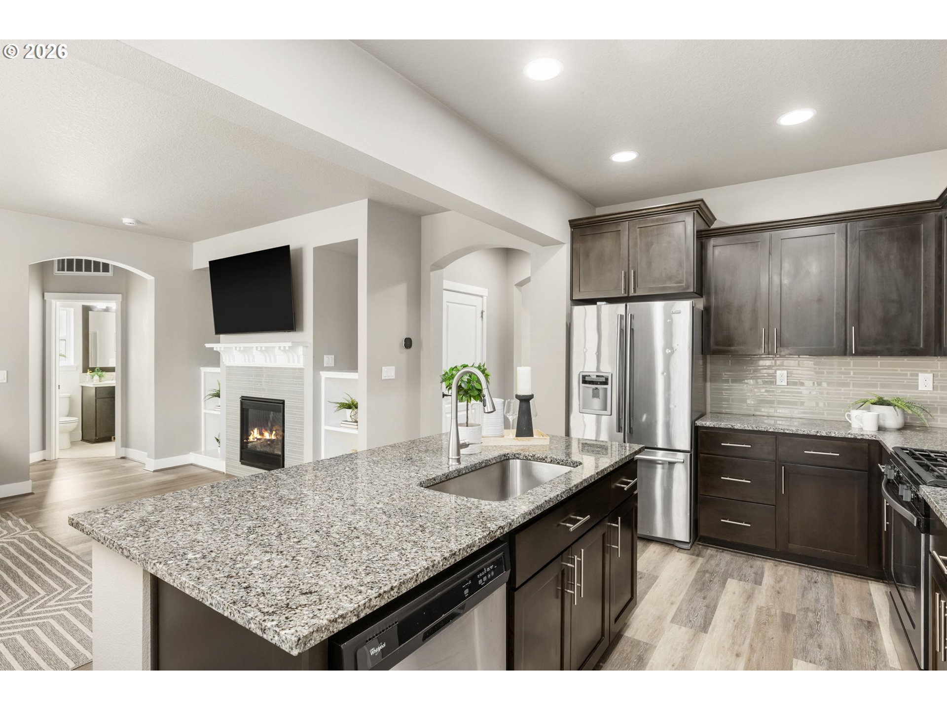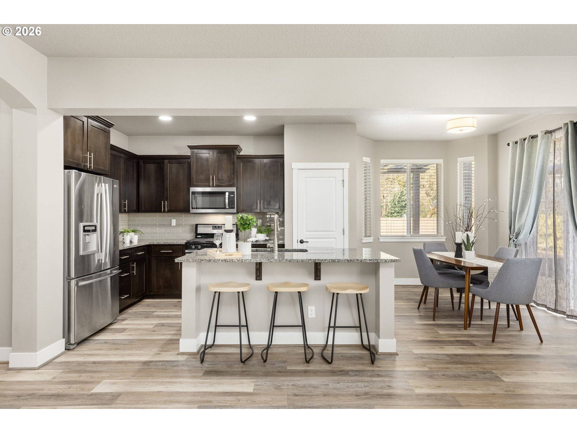 OPEN HOUSE SUNDAY APRIL 5TH, 1PM - 3PM!! Beautifully updated Craftsman style home in excellent downtown Hillsboro location! Spacious foyer with high ceilings. Formal living room/flex space that has great bonus space that could be an office or work out area. New LVP throughout majority of home with new carpet in the office. Great room features a gas fireplace, wall of windows & classic built-ins! Main level bedroom could be second office too. Lovely kitchen with gas stove, granite counters, island with bar seating and generous pantry. Spacious dining nook surrounded by bay windows. Upstairs features 4 bedrooms plus hall bath and dedicated laundry room. Luxurious primary bedroom with large walk-in closet and ensuite bathroom with soaking tub, double sinks and tiled shower. Summer pool parties will be a blast! Amazingly large backyard with deck, patio, pergola, grassy area, & convenient storage sheds. RV Parking with hook-ups! Excellent proximity to dining, shopping and commuter routes. [Home Energy Score = 5. HES Report at https://rpt.greenbuildingregistry.com/hes/OR10245955]