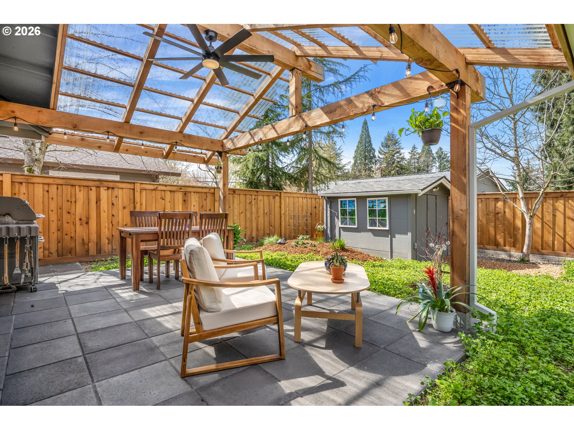 CoveredPatio, Deck, Fenced, FirePit, RaisedBeds, Sprinkler, ToolShed, WaterFeature