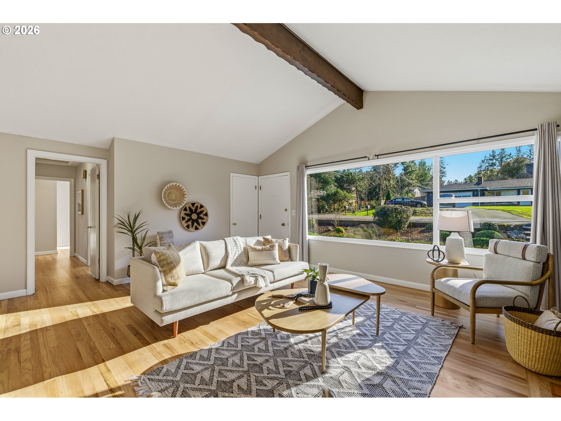 First time on the market in 50 years! Historic Garden Home neighborhood mid-century ranch, set on a private, flat 1/3 acre lot and filled with natural light. Designed for true one-level living, the home features a comfortable, well-proportioned floorplan with original character throughout, including beautifully refinished original hardwood floors and warm period details that reflect its era. The expansive family room is the heart of the home, showcasing a vaulted wood ceiling, custom built-ins, and a sliding door that opens to the backyard deck—an inviting space for everyday living, gatherings, and relaxed indoor–outdoor flow. Outside, the sun-filled fenced backyard offers mature landscaping and room to garden, entertain, or simply enjoy the privacy that’s increasingly hard to find. Lovingly maintained and thoughtfully refreshed with remodeled bathrooms, newer furnace, new roof, new driveway and drainage system, new garage door, new gutters, newer water heater, new carpet, along with fresh interior and exterior paint, the home strikes a rare balance between preserved mid-century charm and everyday comfort. Quiet and private, yet minutes from Jesuit, OES, shopping, dining, golf, and recreation—this is a special opportunity to own a timeless home in a highly convenient location.