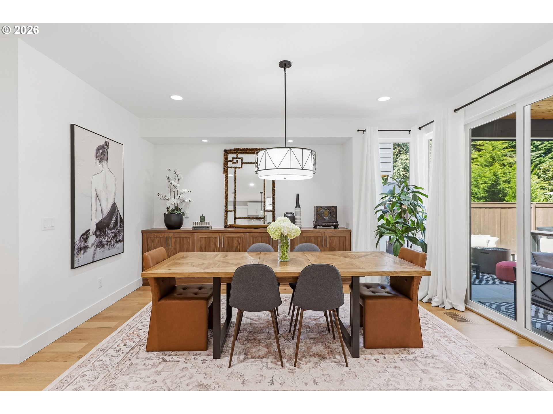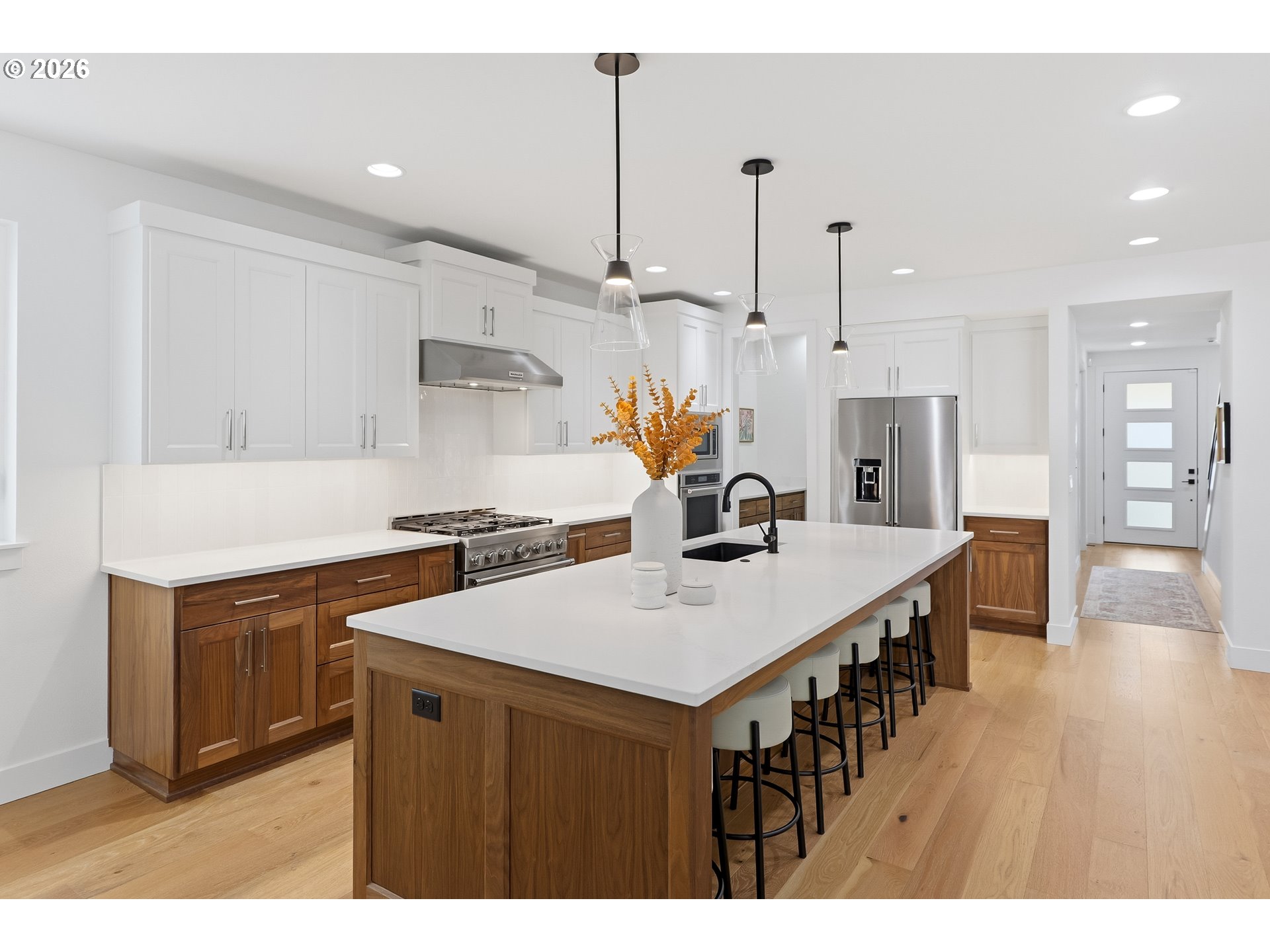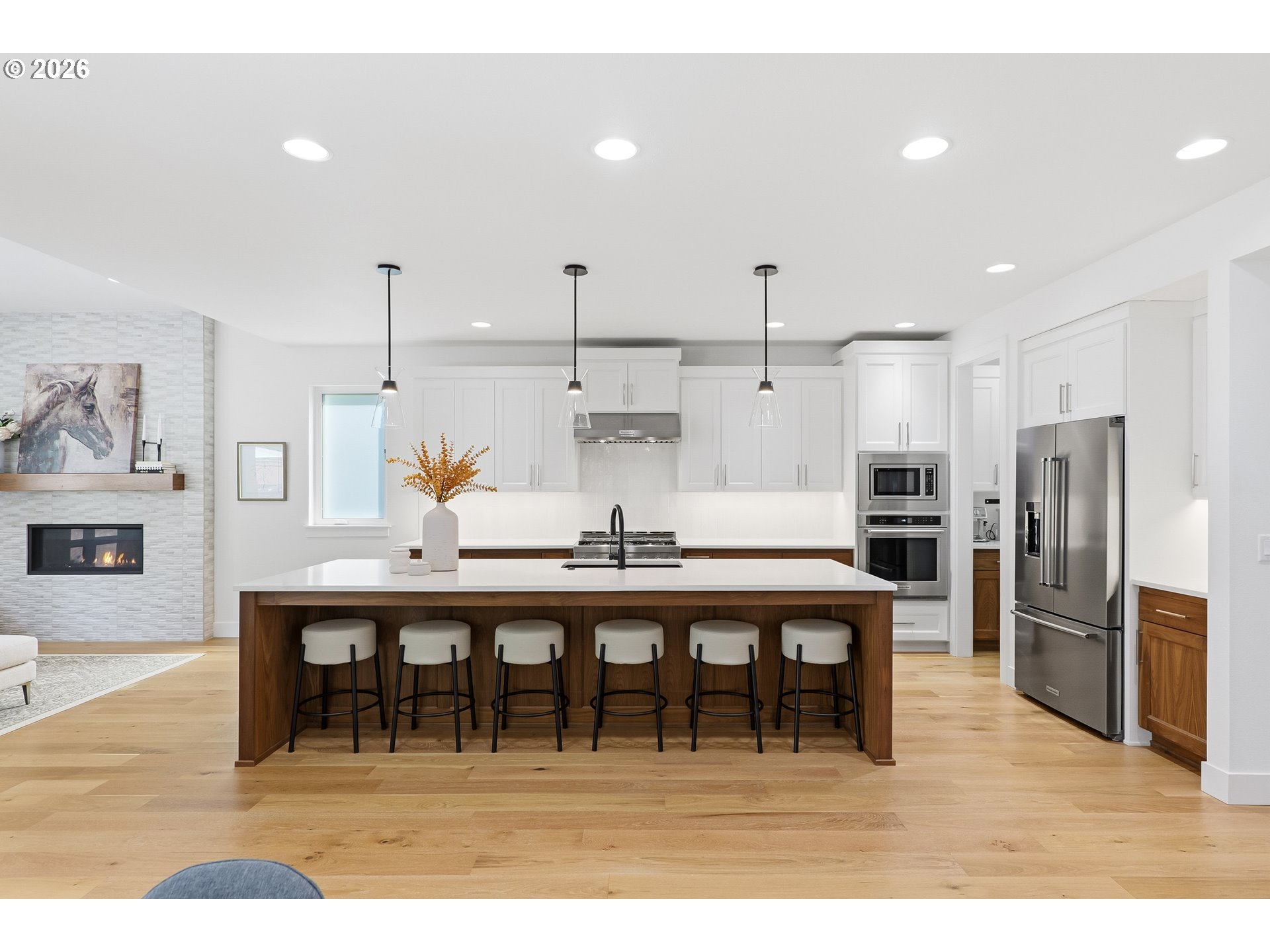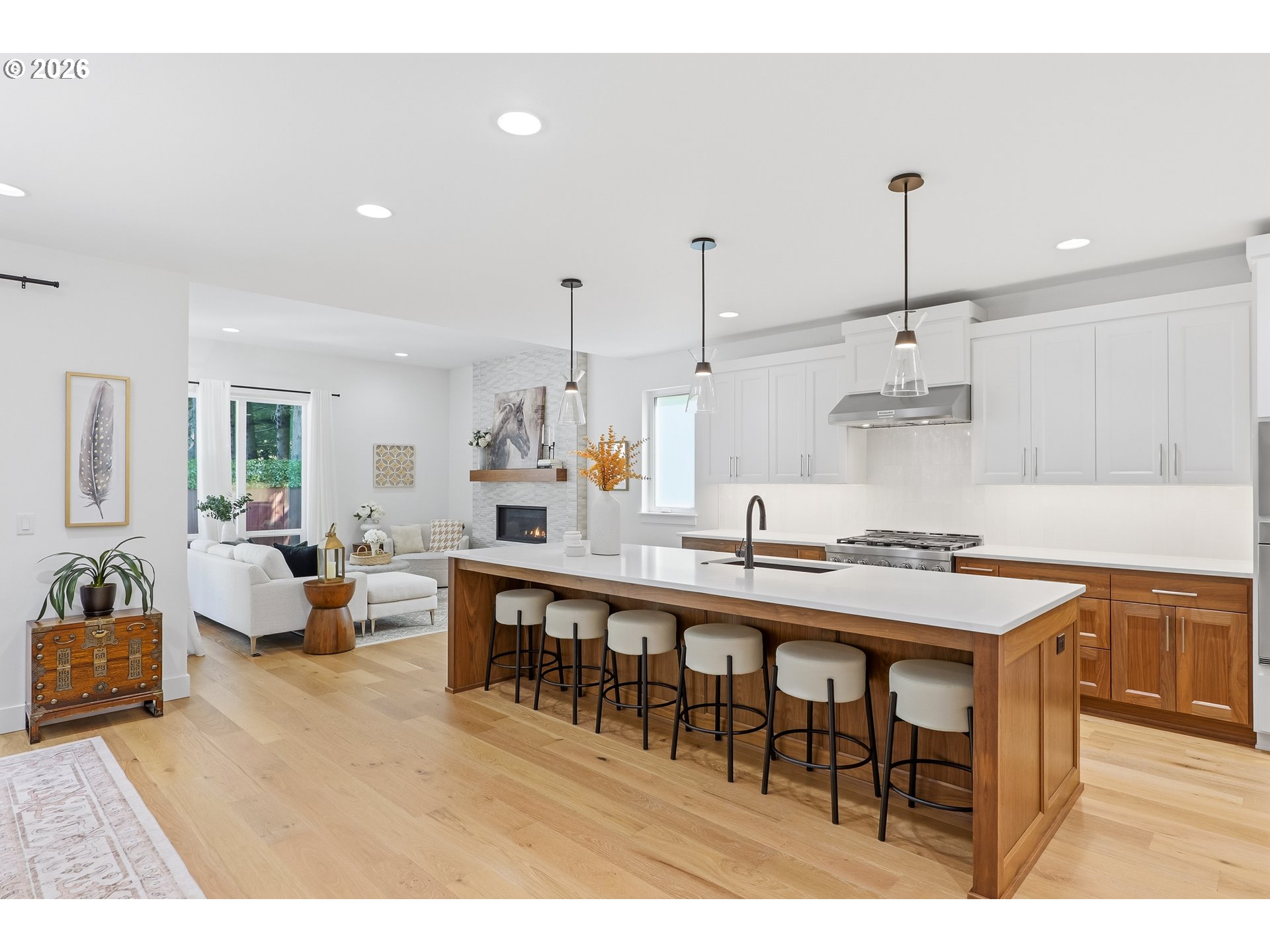 Luxury and Comfort in the West Hills Presenting an exceptional residence located on a cul-de-sac, this impressive 4-bedroom, 3-bathroom home showcases the best of NW Contemporary Style with high ceilings and engineered hardwood flooring throughout. The expansive great room is equipped with a six-person eating bar featuring quartz countertops, an under-mounted stainless steel sink, two-tone cabinetry accented by counter lighting, a commercial-grade six-burner gas range/oven, stainless steel exhaust hood, built-in microwave, separate wall oven, French door refrigerator, and a large butler’s pantry.The dining area includes built-in cabinetry, while the spacious living room offers a gas fireplace and soaring ceilings. A main-level den or fifth bedroom, complete with French doors and closet, provides versatile living options.On the upper level, the primary suite serves as a retreat, featuring a generous bathroom with a soaking tub, step-in tile shower with dual showerheads, heated tile floors, skylight, dual quartz vanities, and a large walk-in closet with organizer. Three additional bedrooms and a sizeable bonus room complete the upstairs layout. The laundry room is conveniently located on the second level. The low-maintenance backyard is designed for relaxation and entertainment, offering a covered patio with cedar plank ceiling, fire pit, and hot tub. An oversized garage accommodates two to three vehicles, and the home is equipped with a tankless water heater, Dual zone high-efficiency furnace, and central air conditioning, plumbed for central vacuum system. Easy access to Highway 26/217, shopping, and downtown enhances the appeal of this distinguished property.OPEN HOUSE MAY 2/3 SAT/SUN 12PM TO 2PM