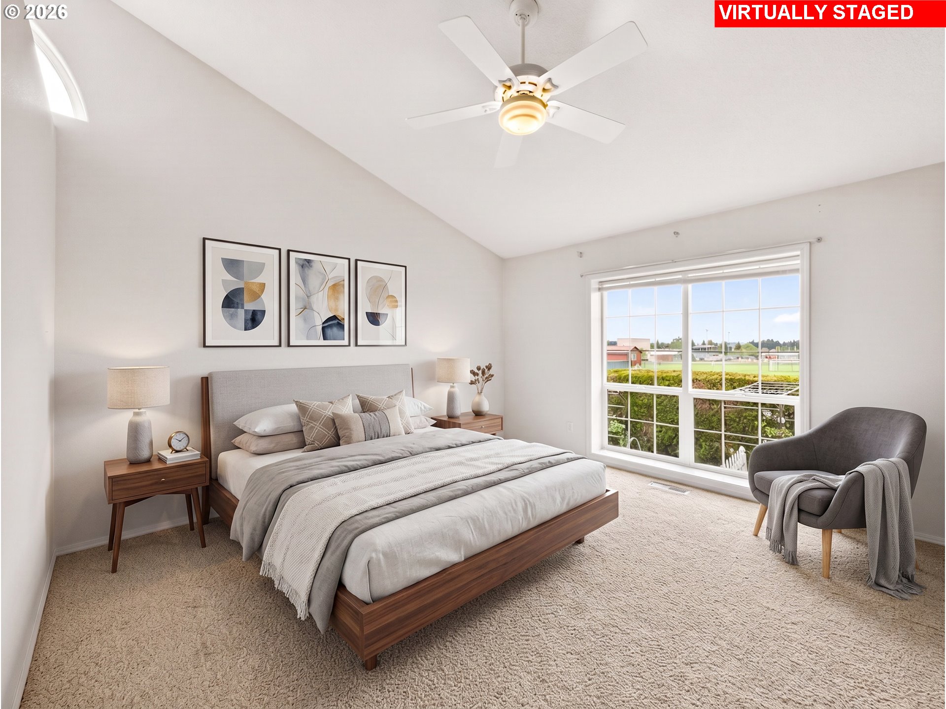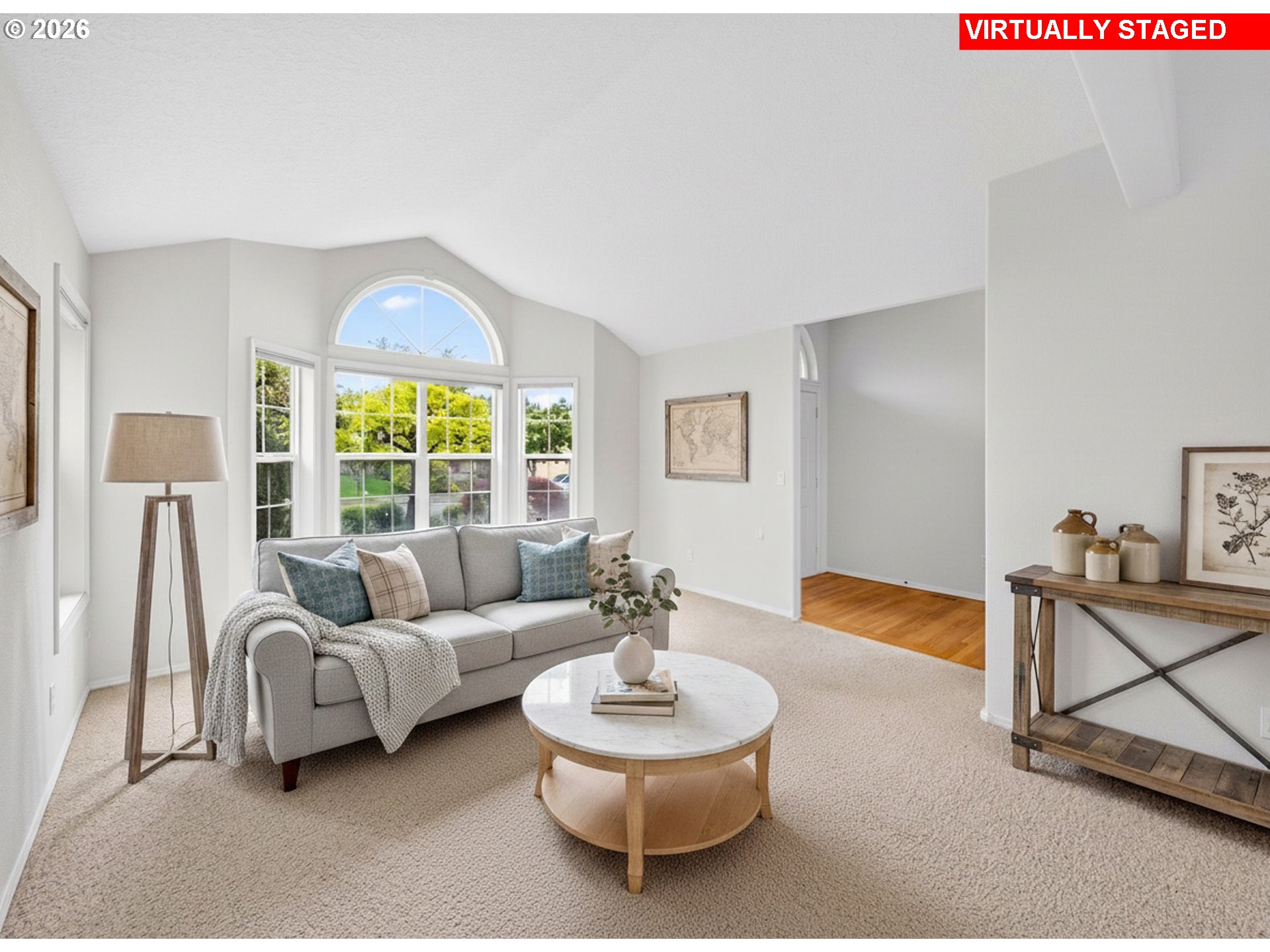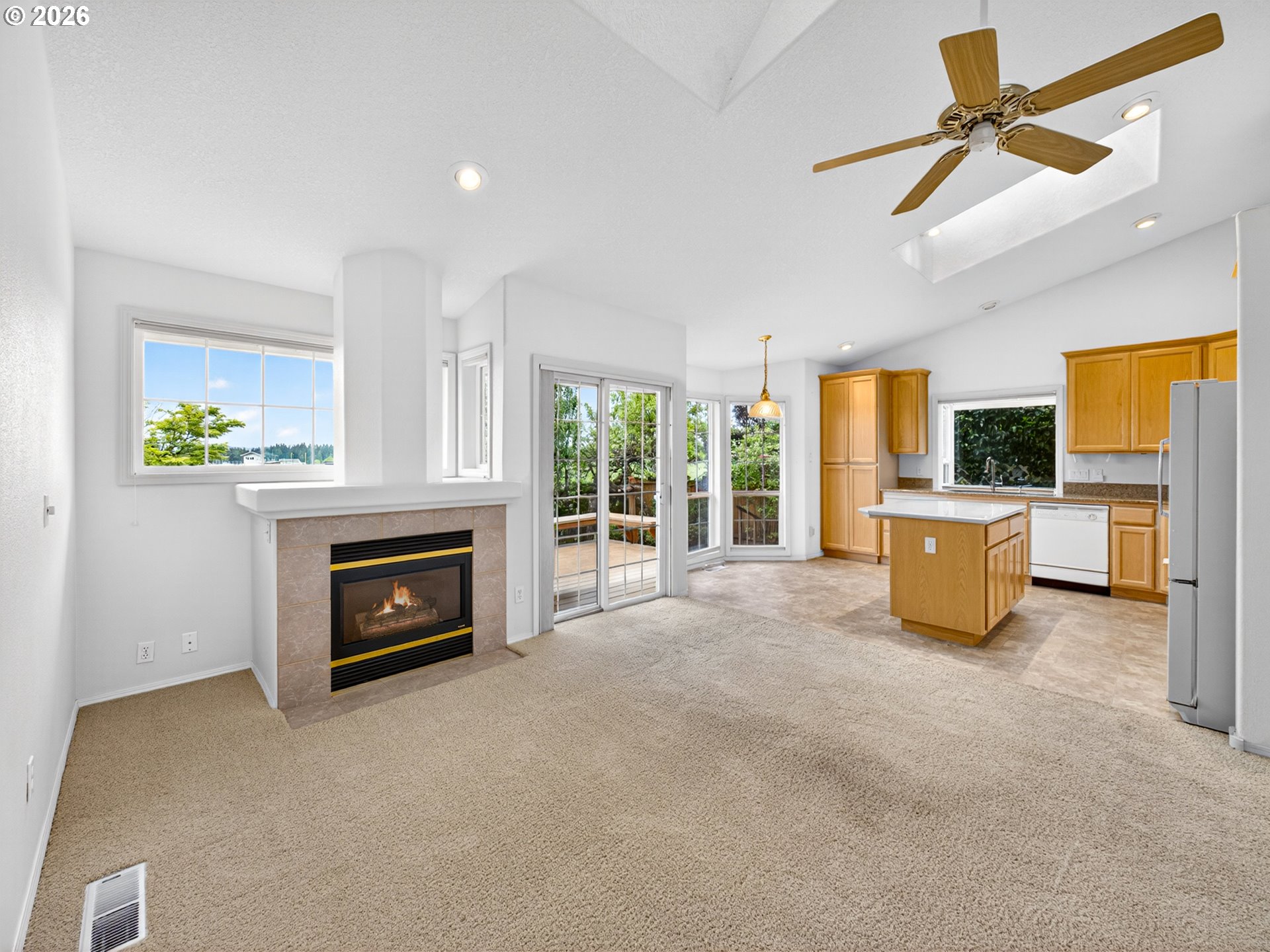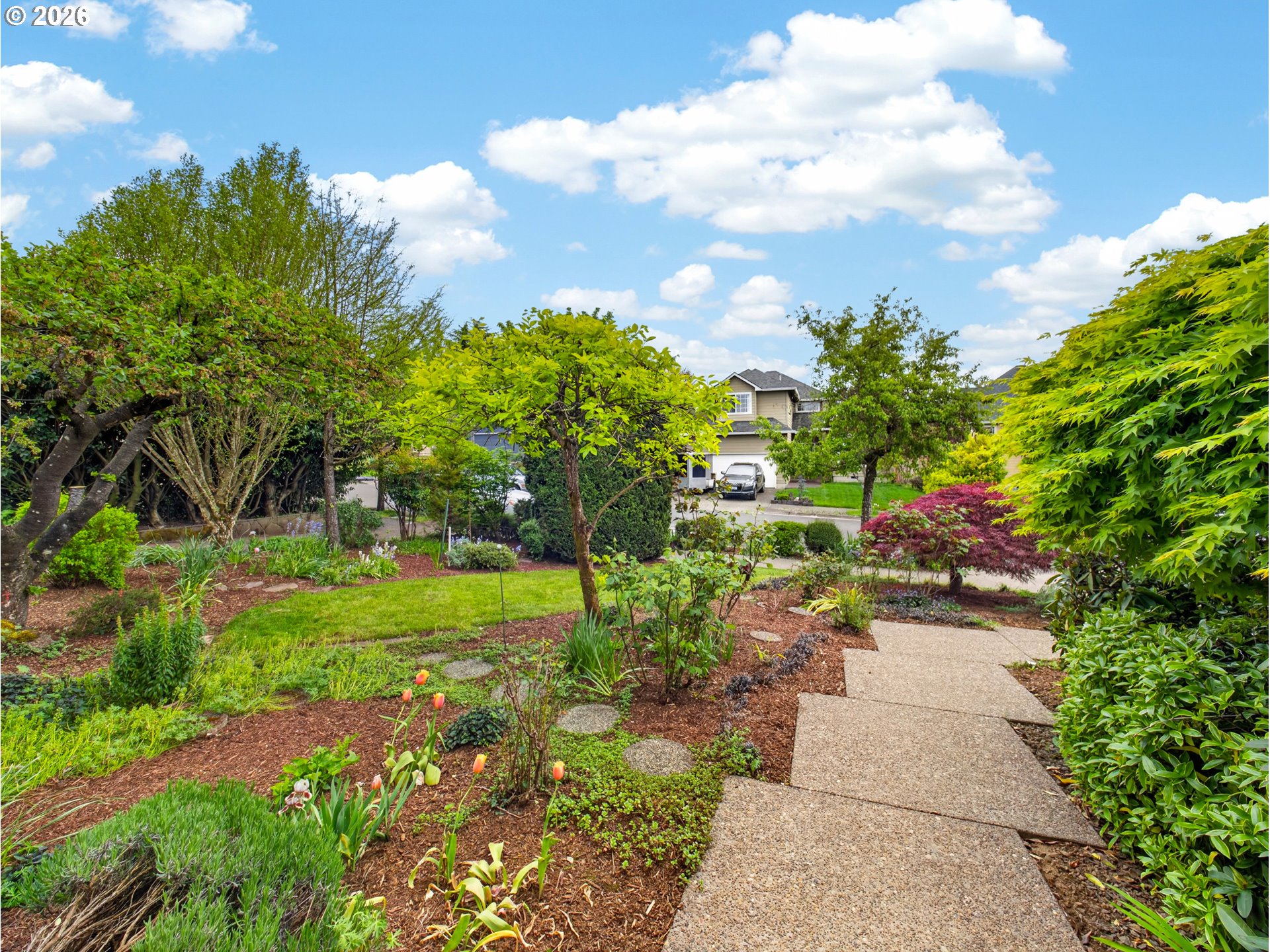 ** OPEN HOUSE SATURDAY, 4/25 from 11-1:00 ** One-level & move-in ready in desired Tualatin neighborhood. Vaulted living spaces, skylights & beautiful paned windows provide natural light throughout. Living room has bay window & opens to the dining room w/oversized windows. Kitchen has slab granite countertops, eating island, garden window & dining nook. Spacious family room w/fireplace & slider to deck. Primary suite has walk-in closet & vaulted bathroom with dual sinks & soaking tub. 3rd bedroom w/French doors & closet functions well as an office or flex space. Fenced backyard features large composition deck, mature landscaping, water feature & raised garden beds. 2-car garage includes opener, storage cabinets, shelving & sink. Central vac system. Gas furnace & AC (2021). Sports fans - this home looks out over one of the high school ball fields. Rain or shine, you can watch the game!
