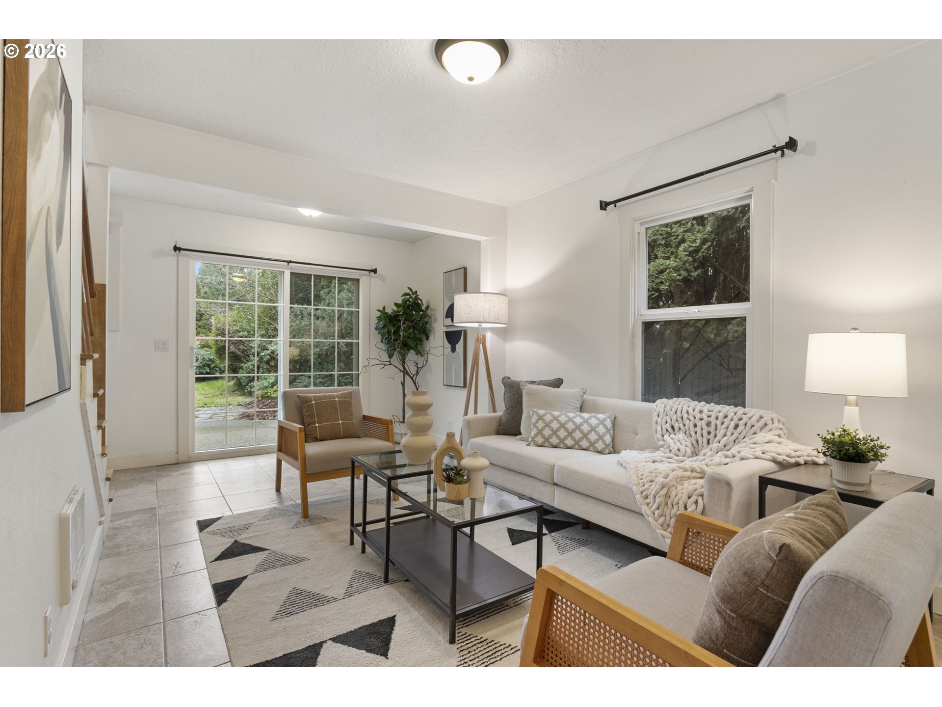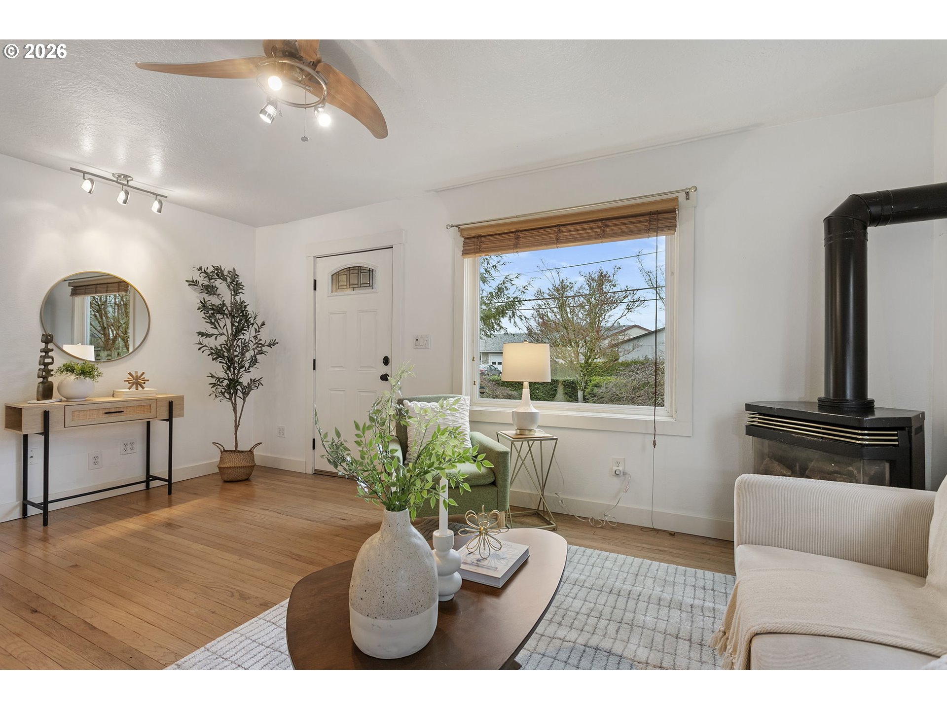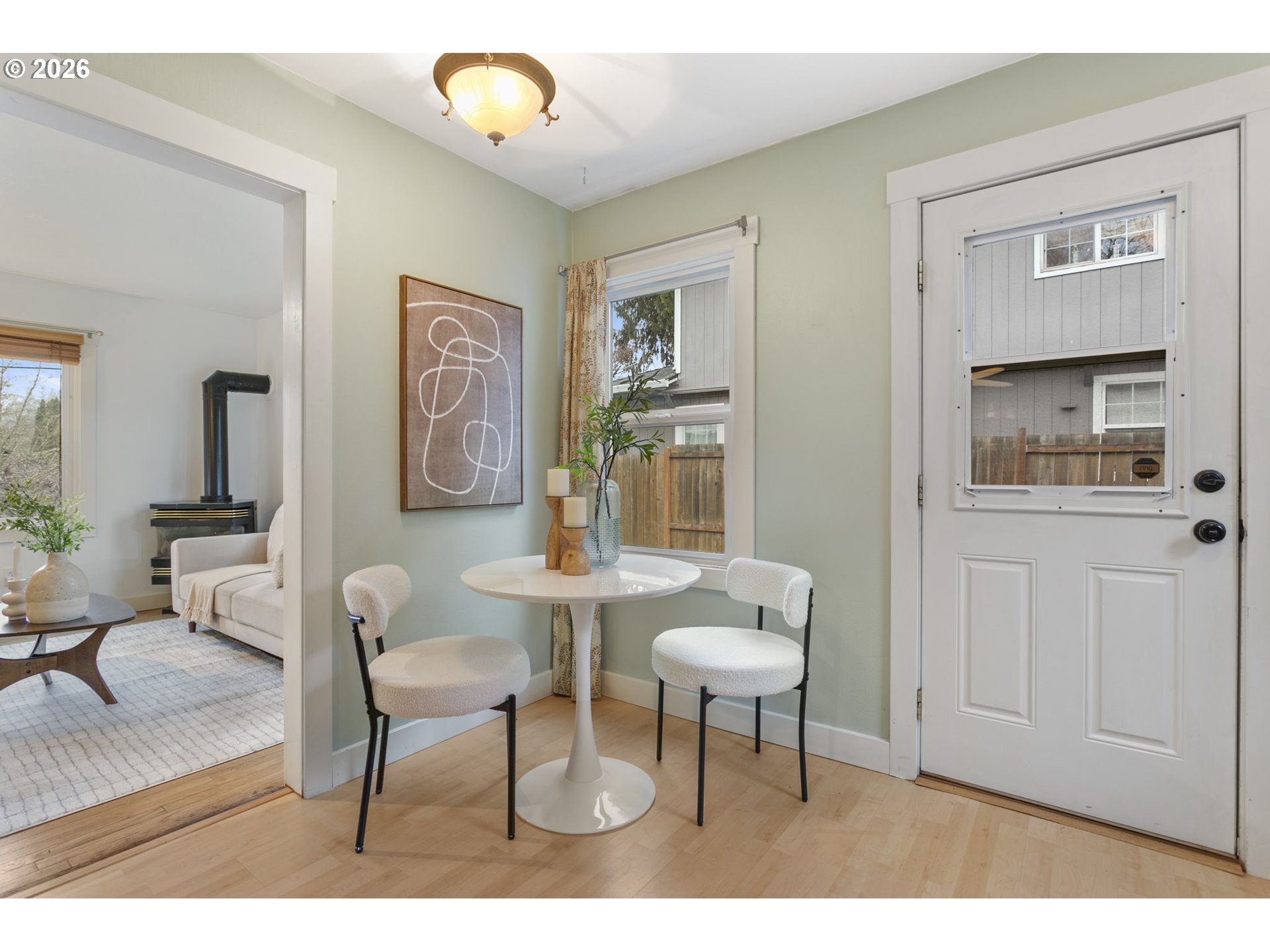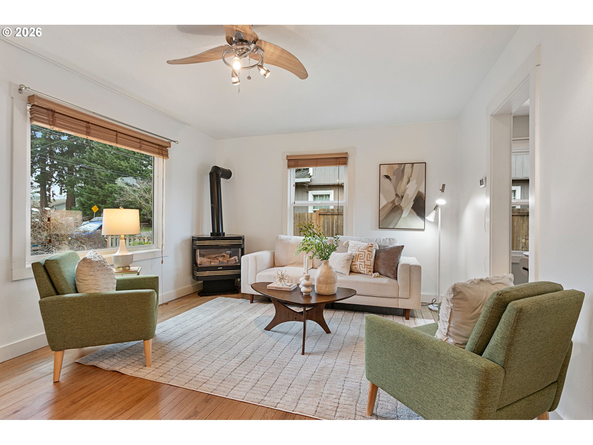 Move-in ready Hillsboro bungalow blending classic charm with modern style. Set on a beautifully landscaped lot, the private and expansive backyard offers an ideal setting for summer gatherings, featuring concrete hardscaping and mature plantings. Inside, enjoy a practical and flexible floor plan with warmly toned flooring, fresh interior paint, and abundant natural light throughout. The main level features an inviting eat-in kitchen with space for everyday meals and casual entertaining, along with two distinct living areas that provide versatility for relaxing, hosting, or working from home. A main-level bedroom and full bath add everyday convenience and flexibility. Upstairs, two additional bedrooms offer comfortable retreats with separation from the main living spaces. Located close to historic downtown Hillsboro, enjoy easy access to shopping, restaurants, the Walters Cultural Arts Center, parks, trails, and recreational facilities. Convenient to major commuter routes and nearby tech employers, this home offers an exceptional blend of lifestyle and location.
