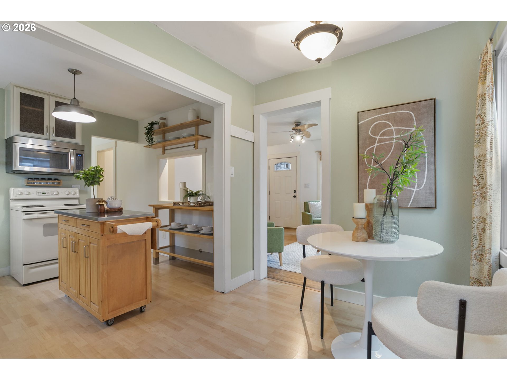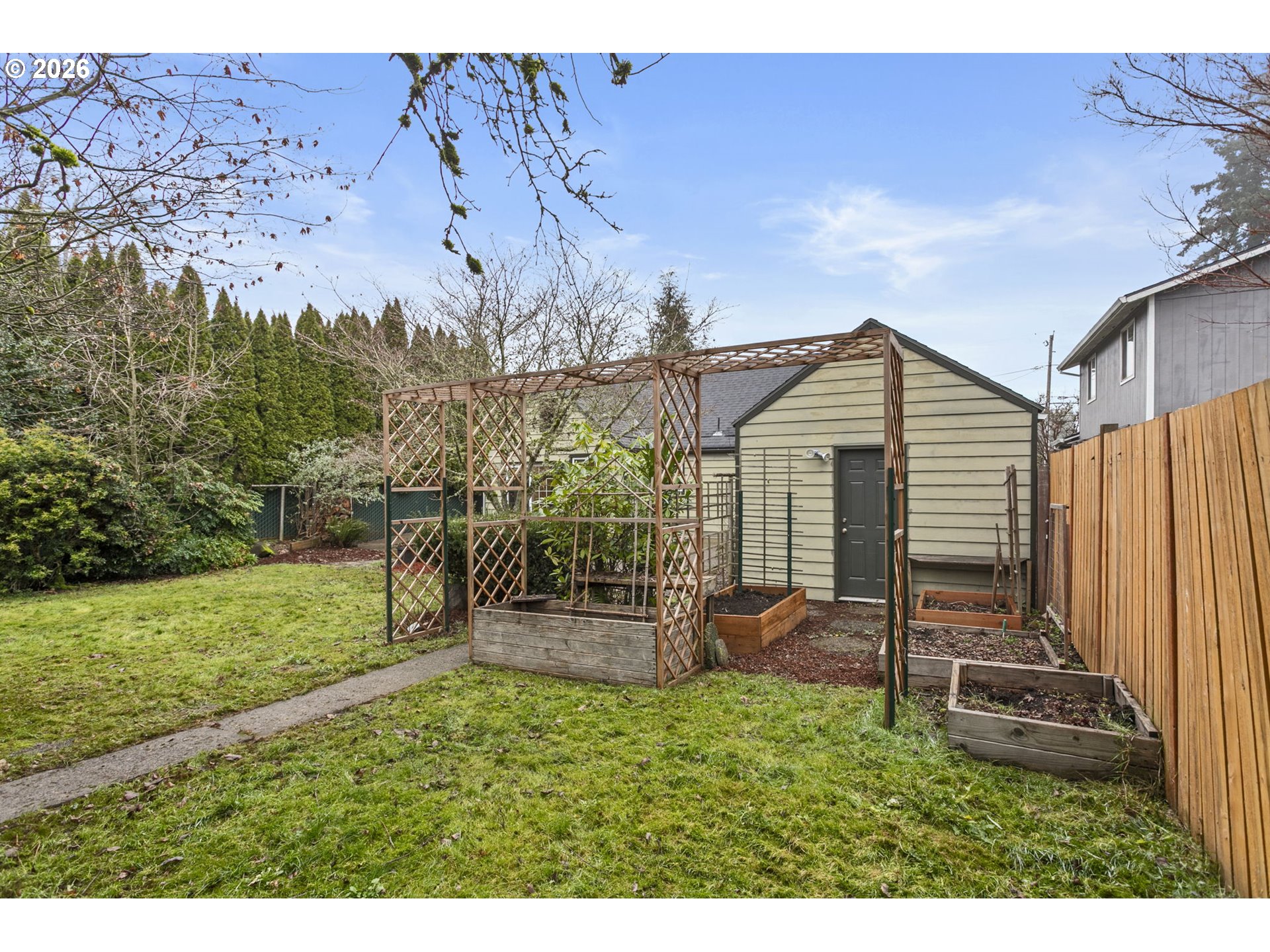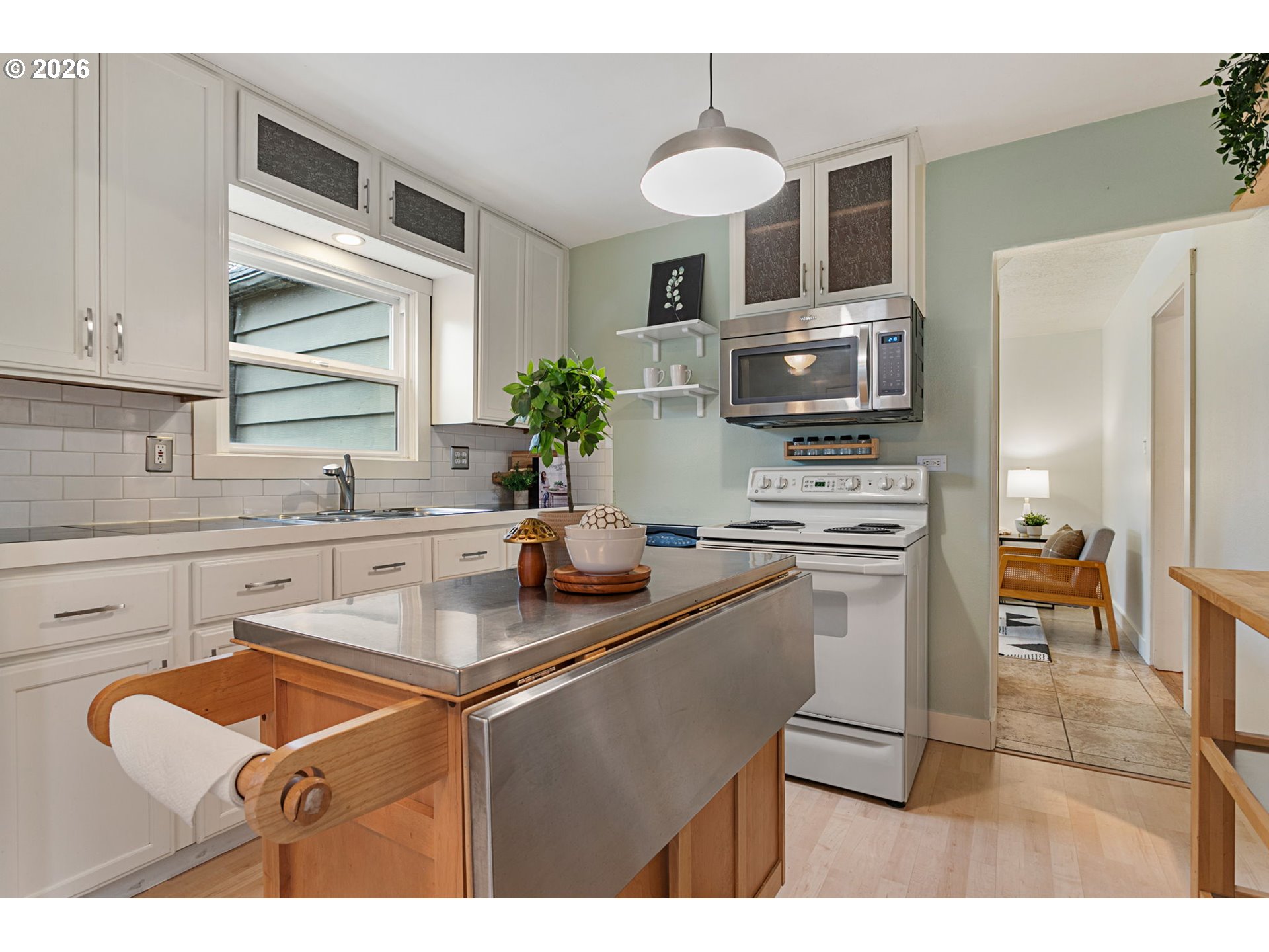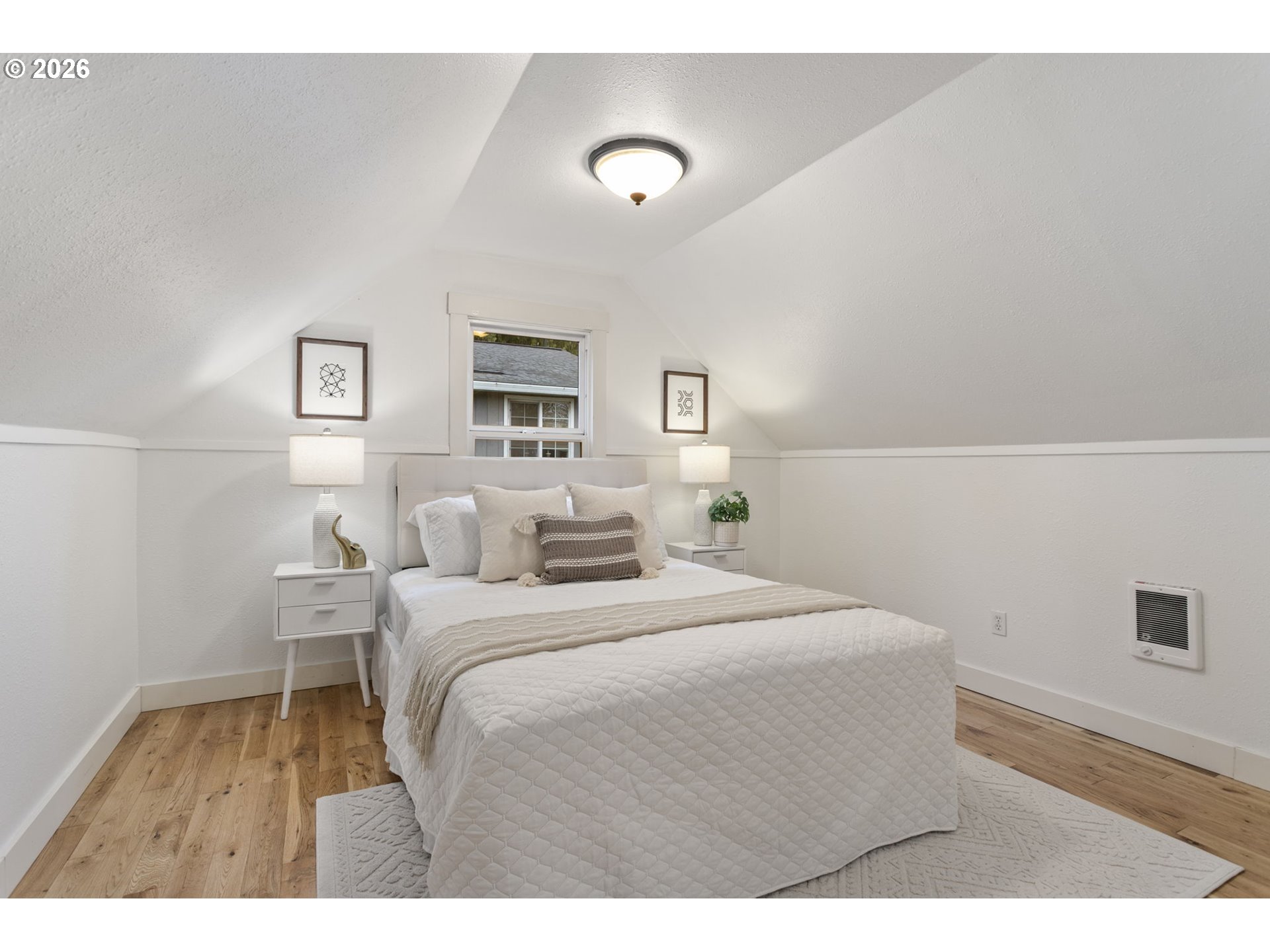 Move-in ready Hillsboro bungalow blending classic charm with modern style. Set on a beautifully landscaped lot, the private and expansive backyard offers an ideal setting for summer gatherings, featuring concrete hardscaping and mature plantings. Inside, enjoy a practical and flexible floor plan with warmly toned flooring, fresh interior paint, and abundant natural light throughout. The main level features an inviting eat-in kitchen with space for everyday meals and casual entertaining, along with two distinct living areas that provide versatility for relaxing, hosting, or working from home. A main-level bedroom and full bath add everyday convenience and flexibility. Upstairs, two additional bedrooms offer comfortable retreats with separation from the main living spaces. Located close to historic downtown Hillsboro, enjoy easy access to shopping, restaurants, the Walters Cultural Arts Center, parks, trails, and recreational facilities. Convenient to major commuter routes and nearby tech employers, this home offers an exceptional blend of lifestyle and location.
