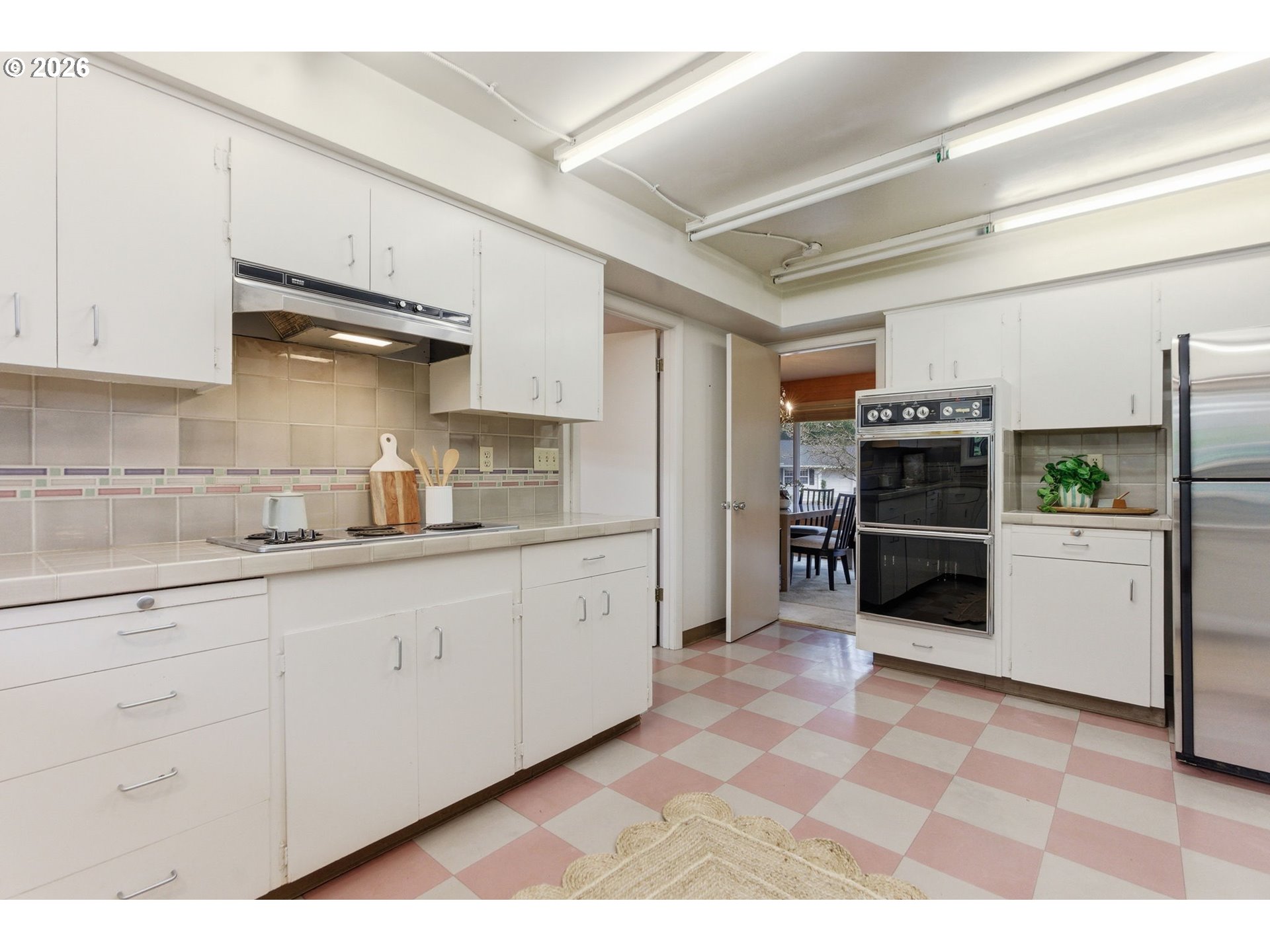 This original 1964 West Slope home sits on a corner lot. It's a solid home that has been well cared for, and is ready for its next chapter. With many original features, there's an opportunity here for improvements that suit a new owner. The home features a spacious one-level floor plan. The large living/dining room face the front of the home, where natural light pours in through large windows. A family room adjoins the large kitchen, and a big laundry room provides space for storage and utility between the kitchen and garage. Down the hallway, three large bedrooms and a large jack and jill bathroom that adjoins from the hallway and primary bedroom. Original charm like hardwood floors, grasscloth wallpaper, slate tile entry and pink tub and sinks remain, while mechanicals have been updated to modern standards: a Rainbird irrigation system, 2016 gas furnace & central AC, 2018 water heater and Liftmaster garage door. Make this home your own in this incredible neighborhood!