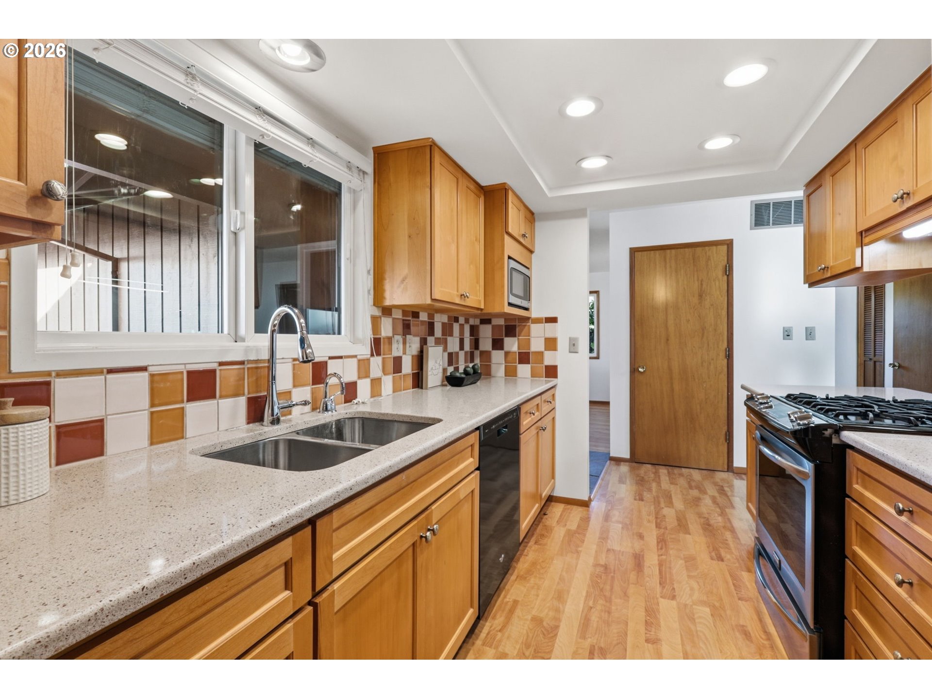 Welcome to this beautifully maintained, single-level gem in a prime Hillsboro location! Upon entry you’re welcomed by mid-century modern details, including a wood room divider and tile entry flooring, setting the stage for the properties enduring charm. The home offers two separate living areas—perfect for gatherings or relaxing by the stone-surround fireplace while natural light pours in through abundant windows. Just off the family room, a cozy nook with a built-in desk and shelving creates the ideal space for a home office, study area, or hobby room. The kitchen features well-maintained cabinetry, quartz countertops, a gas range, and a window overlooking the spacious front yard. A generously sized utility room adds convenience with a sink, folding table, and plentiful pantry storage. Among the four bedrooms is the primary suite, complete with a beautifully remodeled bathroom showcasing a sliding barn door, walk-in tile shower, and expansive new vanity. Set on over a third of an acre—a rare find—this property offers mature landscaping and endless potential for gardening, entertaining, or simply enjoying the outdoors. Just off the patio, a multi-purpose bonus room provides an ideal setting for a studio, workshop, or extra space for storing outdoor gear and hobby supplies. Additional highlights include hardwood floors, a tile roof, NEW furnace w/10 year transferable warranty, NEW interior paint, and loads of original 1960’s charm. Located in an established neighborhood with quick access to downtown Hillsboro’s growing selection of shops, restaurants, breweries, food carts, Hare Field, and local farmers markets. Exceptional location offering easy access to city amenities, all situated on a generous lot! Adjacent lot also available for purchase [Home Energy Score = 4. HES Report at https://rpt.greenbuildingregistry.com/hes/OR10244833]